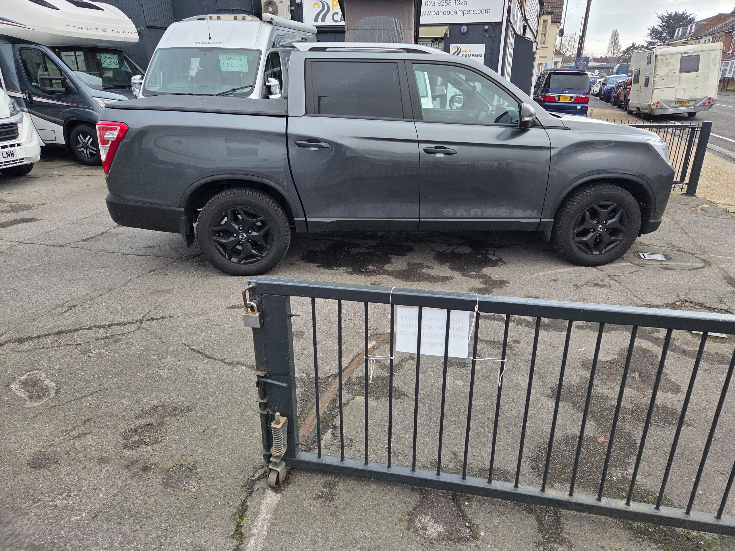 This 2022 Ssangyong Musso 2.2D Saracen Pickup Double Cab 4dr Diesel Auto 4WD Euro 6 (181PS) is a reliable and efficient vehicle with only 31083 miles on the clock. It is equipped with a powerful diesel engine, ensuring great performance for any pickup needs. With 5 seats and 4 doors, this car provides plenty of space for passengers and cargo. The MOT is valid until 29/09/2026, and it is ULEZ compliant, making it environmentally friendly. The sleek exterior features 18in Alloy Wheels in Black, Black Finish Door Mirrors, Belt Line, and Tailgate Finisher, along with Black and Silver Roof Rails as well as a Chrome Ladder Style Front Grille. This pickup is perfect for anyone in need of a versatile and capable vehicle. 4 new Pirelli tyres , Full main dealer history and 3 serice sheets from the dealer . Remainder of 5 year warranty left . we have owned this vehicle since Jan 2022 -