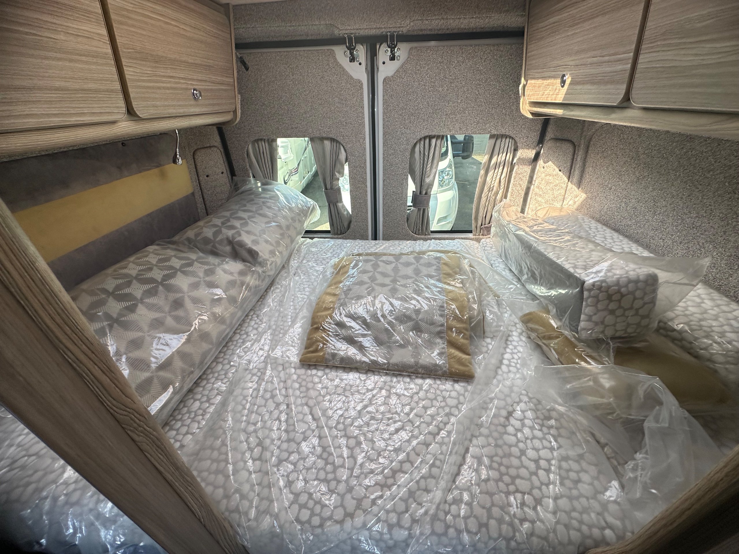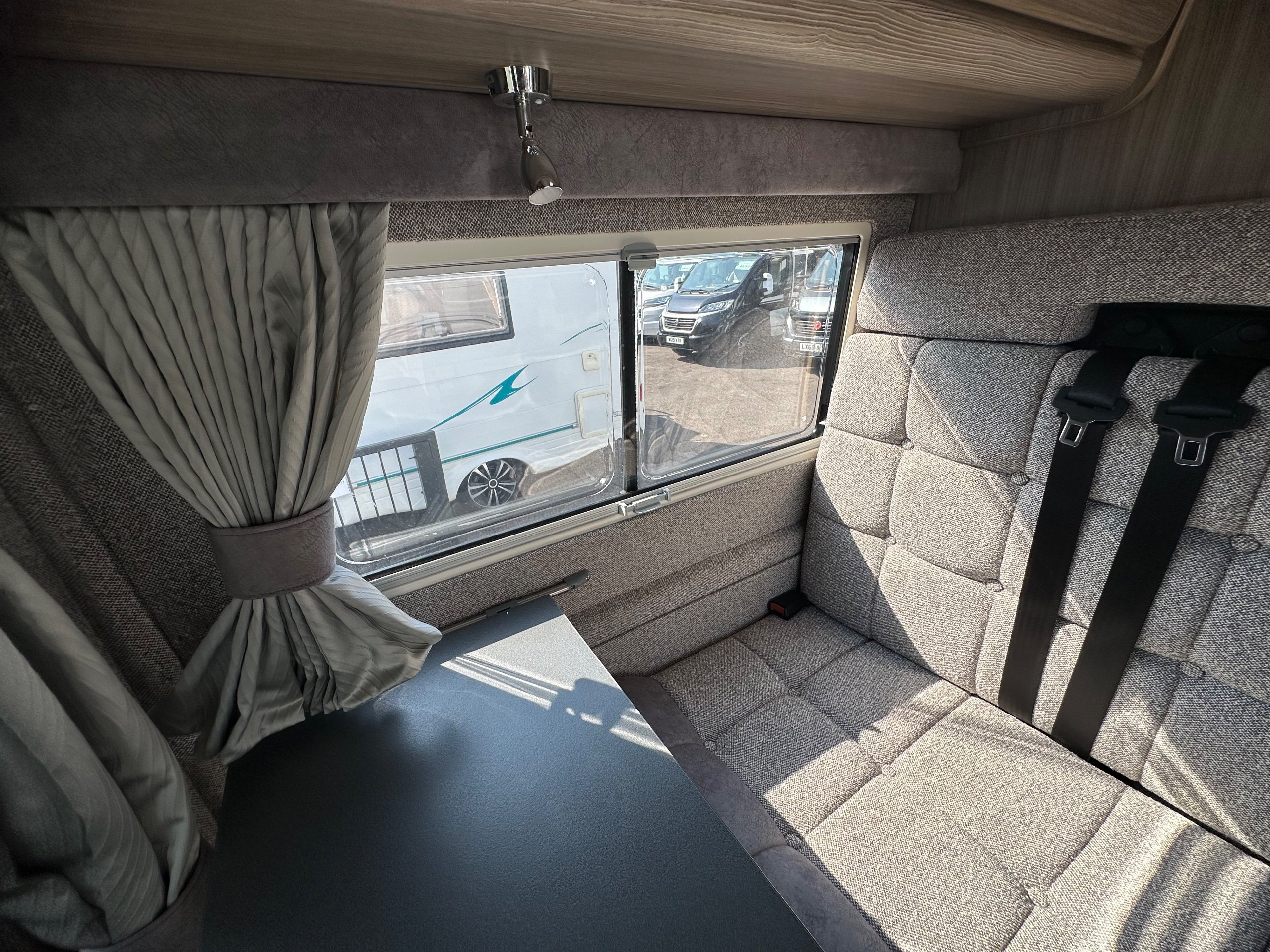 The RB (Rear bed) features an exceptionally comfy transverse bed across the rear thanks to it’s tailor made mattress & bedding set specifically for this fixed bed model.