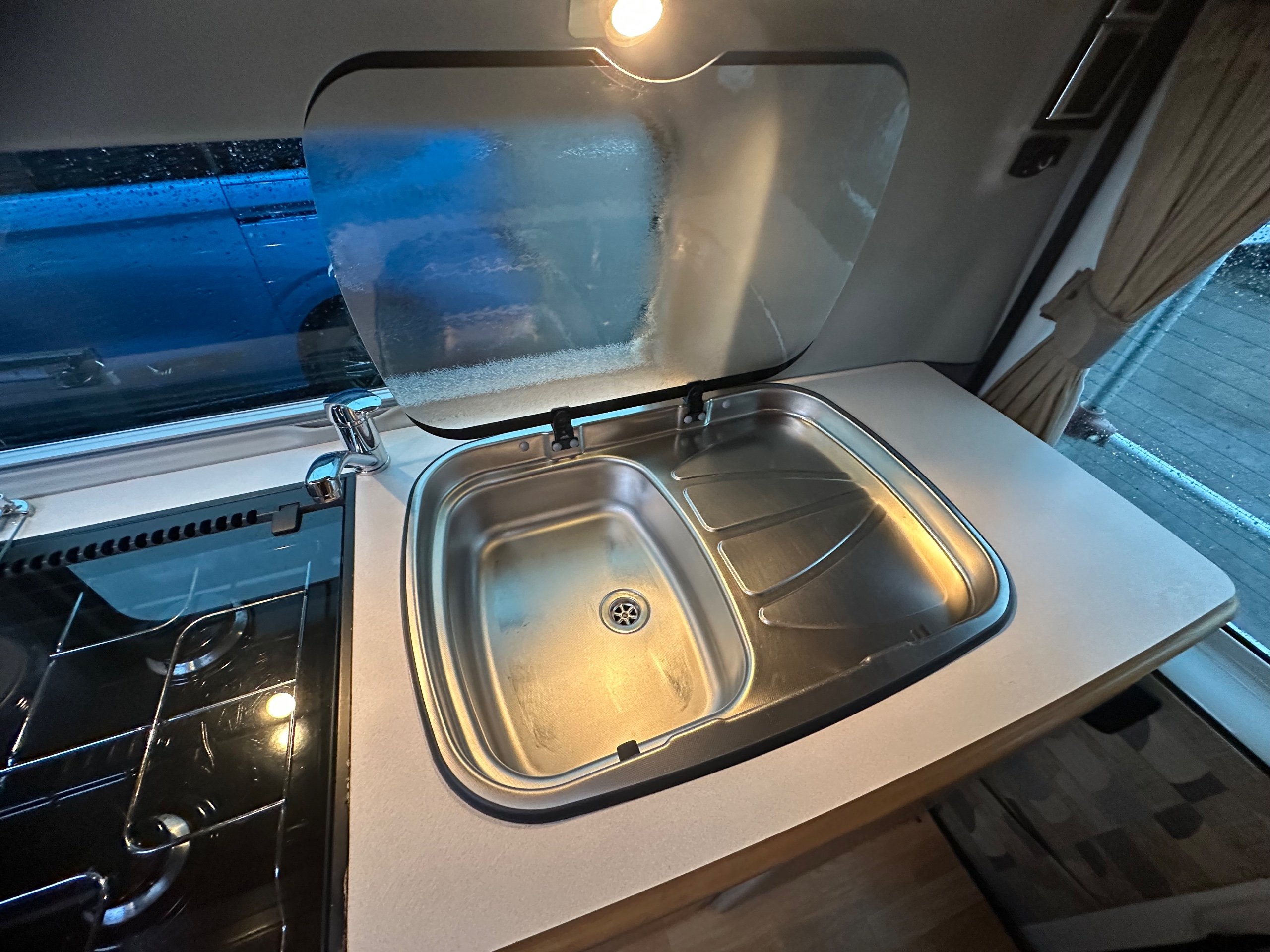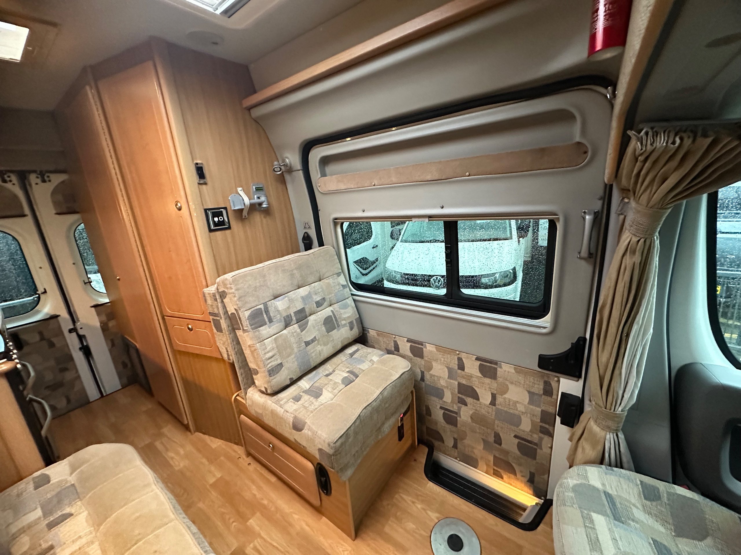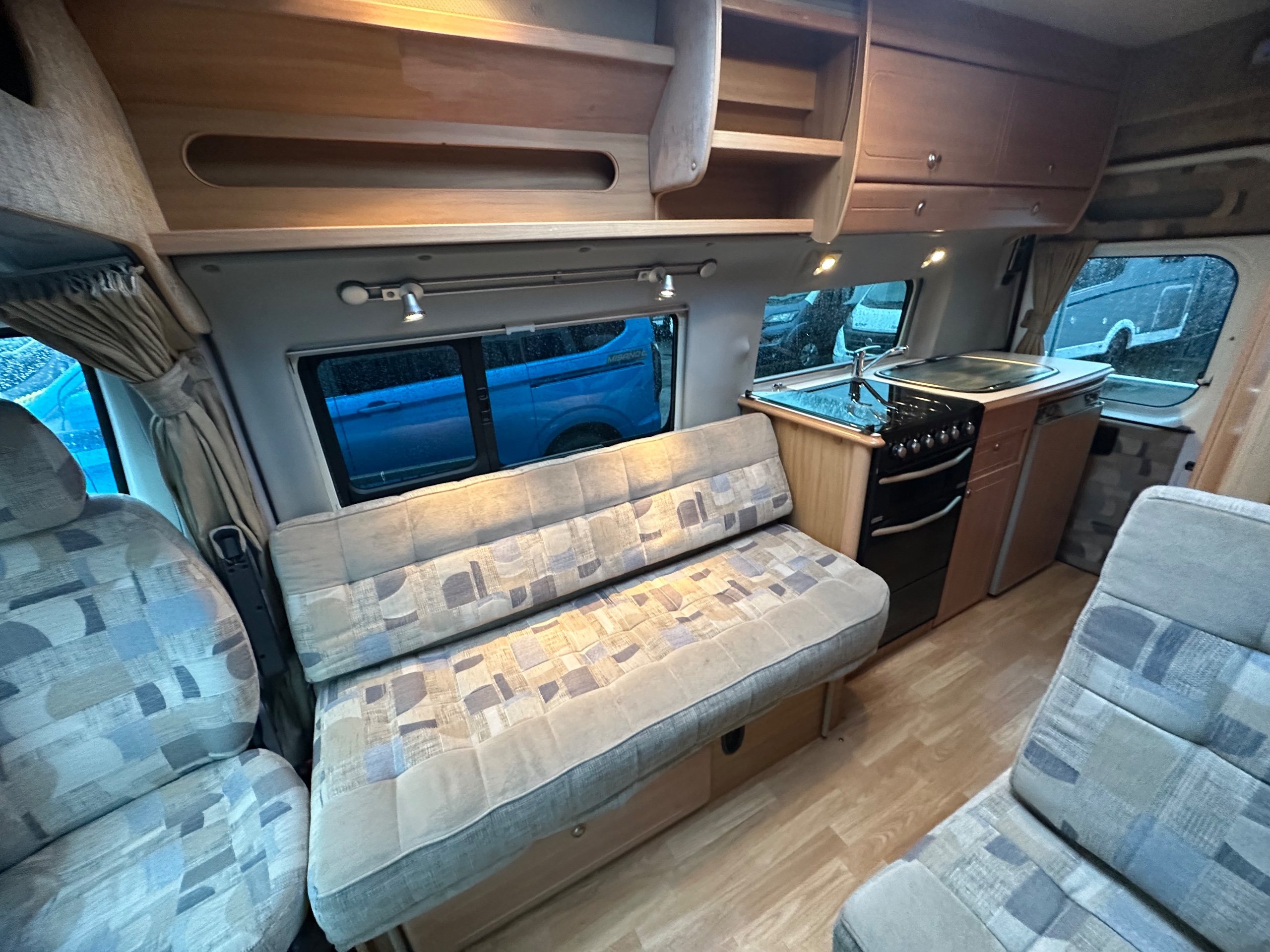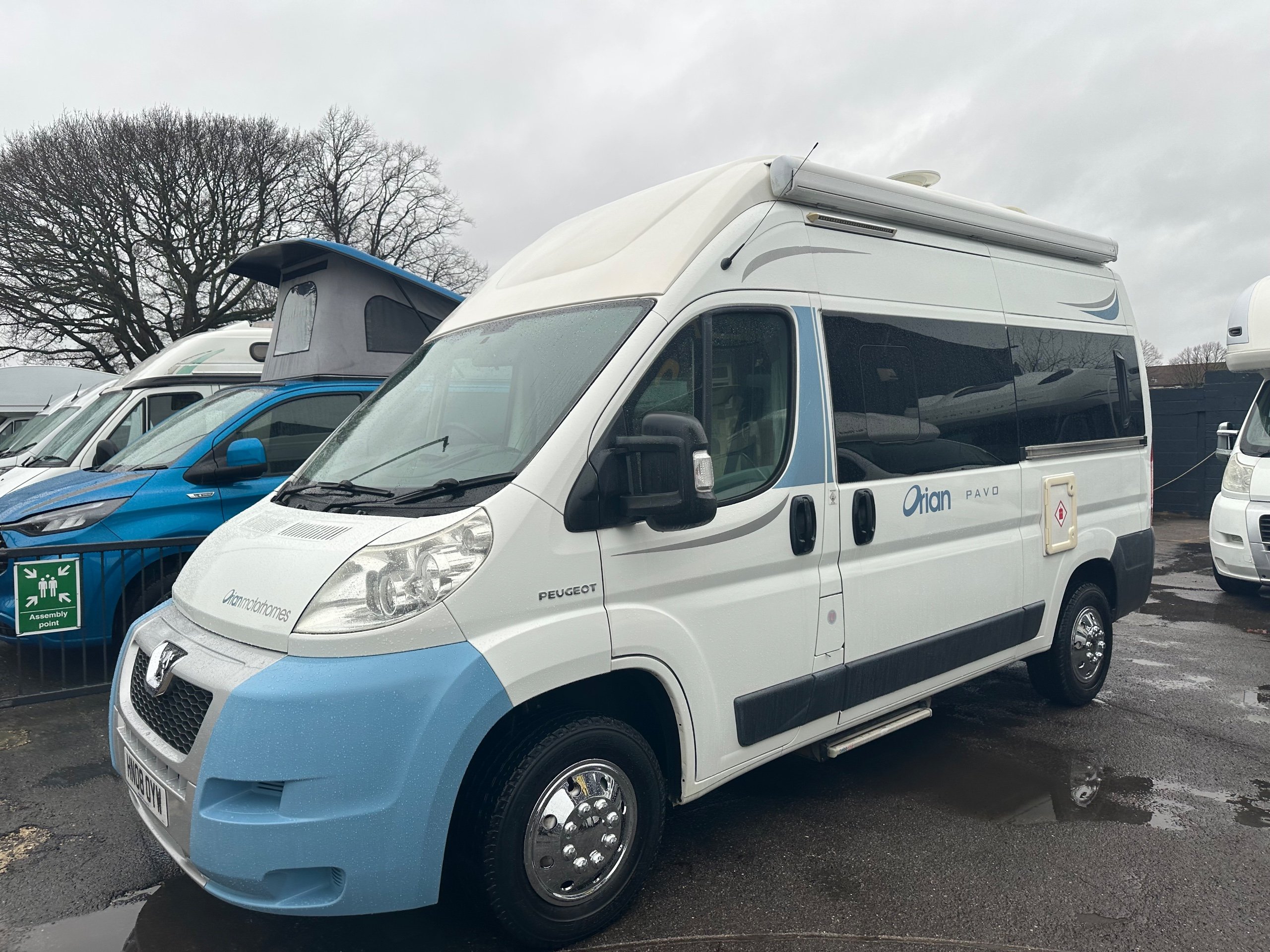 2008 autocruise Orian Pavo 2 berth motorhome covering just 61975 miles from new Based on the Peugeot boxer 2.2 Chain driven diesel chassis. Easy to drive and park with manual transmission. This motorhome can be driven on a standard car licence. The layout of this compact motorhome is rear washroom/kitchen. The washroom has all you would expect with a shower, drop down hand basin, washroom cabinet, electric flushing toilet, vanity mirror and space the toilerties. The kicthen sits opposite to the offside of the motorhome and has a full cooker consisting of 3 burner gas hob, 1 electric ring, separate oven and separate grill. sink with built in drainer and covering for extra worktop space when not in use . 3 way fridge with built in freezer compartment, plenty of storage for the groceries with cupboards high and low. To the front is all lounge, which is made up from both front seats swivelling around, a side single seat with an extra seat belt and a long bench seat . The beds make up from the lounge and can be make into 2 single bed or a large double. This motorhome will come fully prepared for adventures and has a rear step and a bike rack ready fitted. -