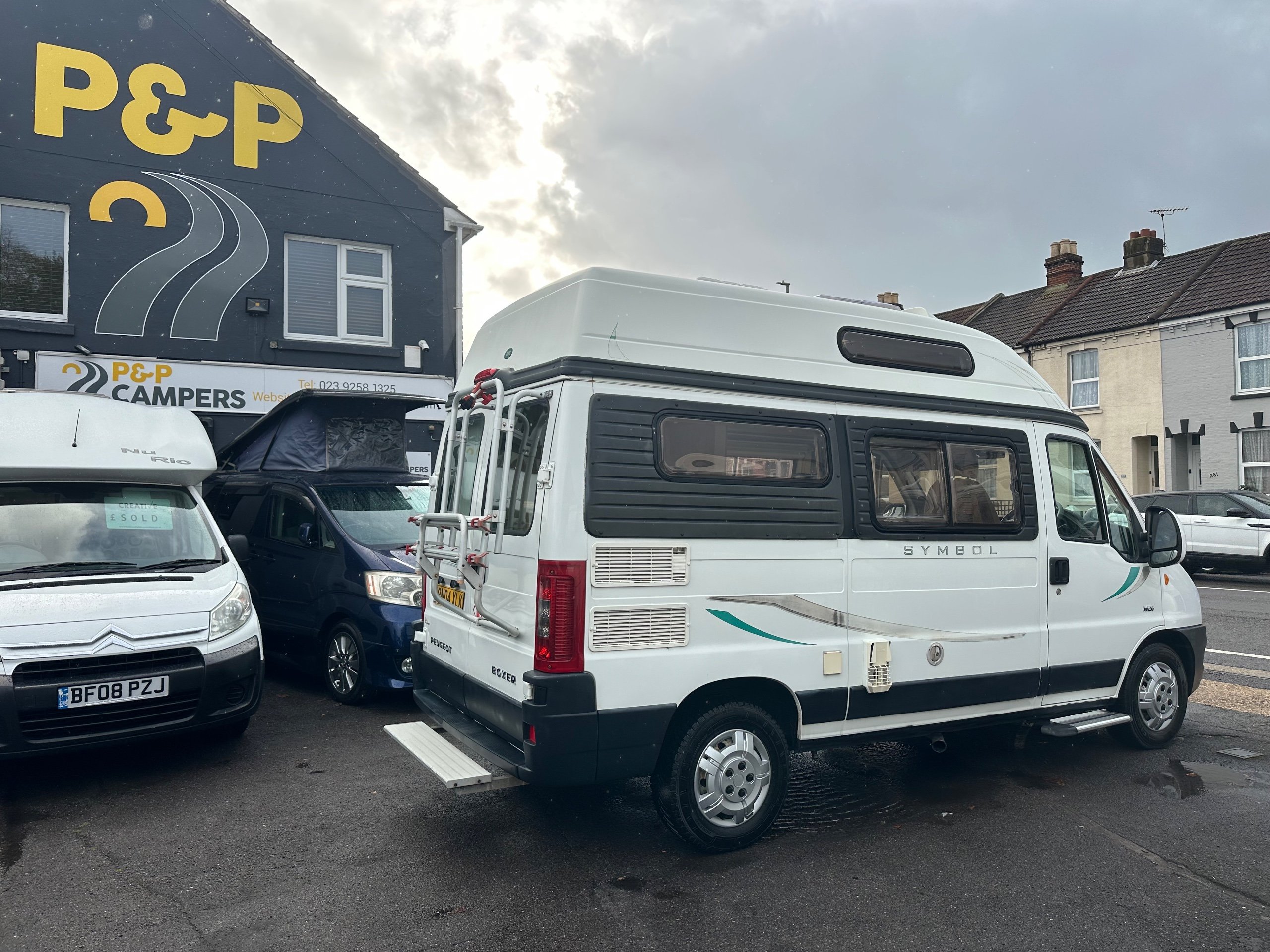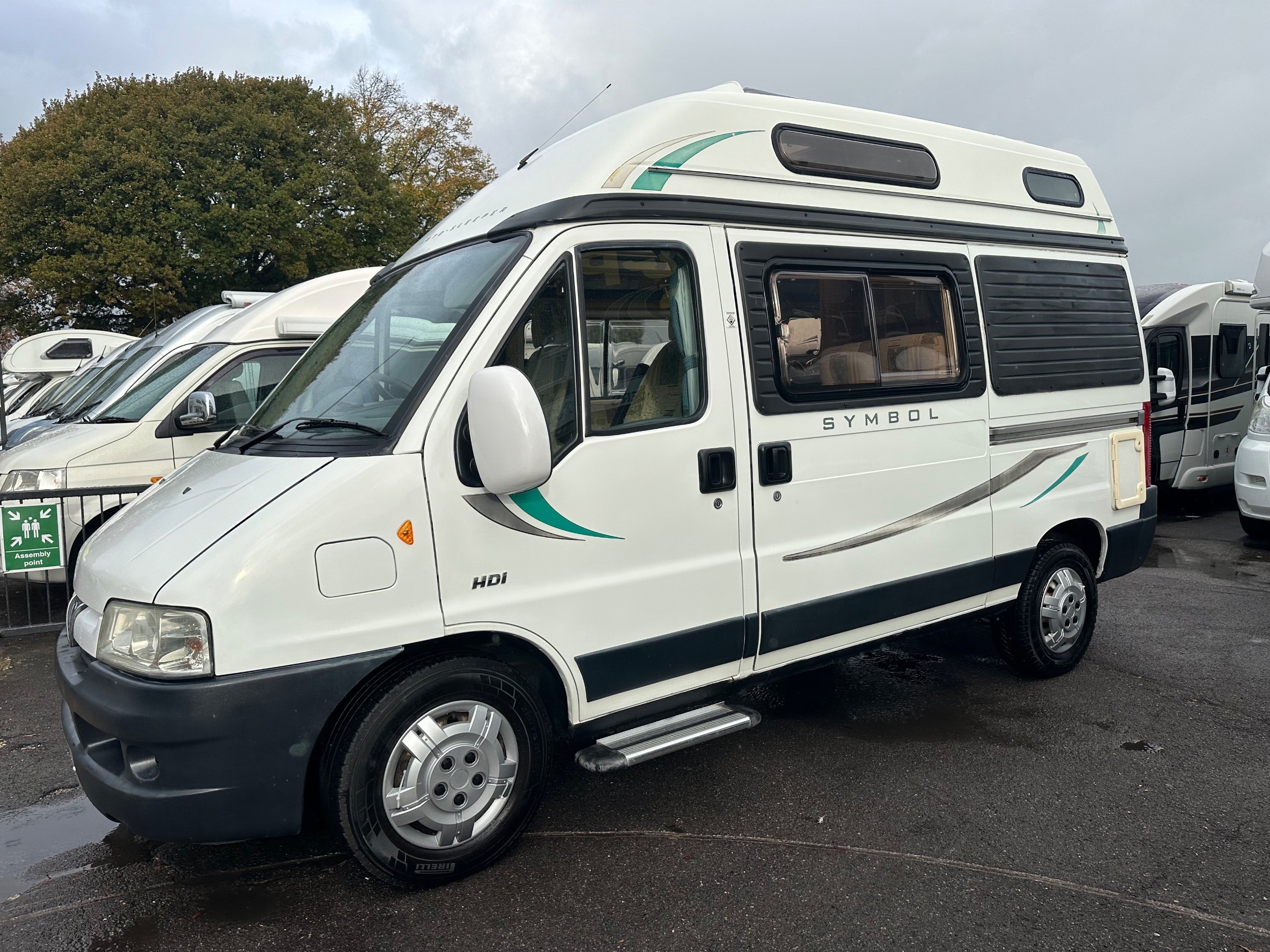 2004 Autosleeper Symbol 2 berth motorhome based on the Peugeot Boxer 2.2 diesel chassis covering just 46523 miles from new. This motorhome can be driven on a standard car license. These are popular motorhomes that don't hang around long!