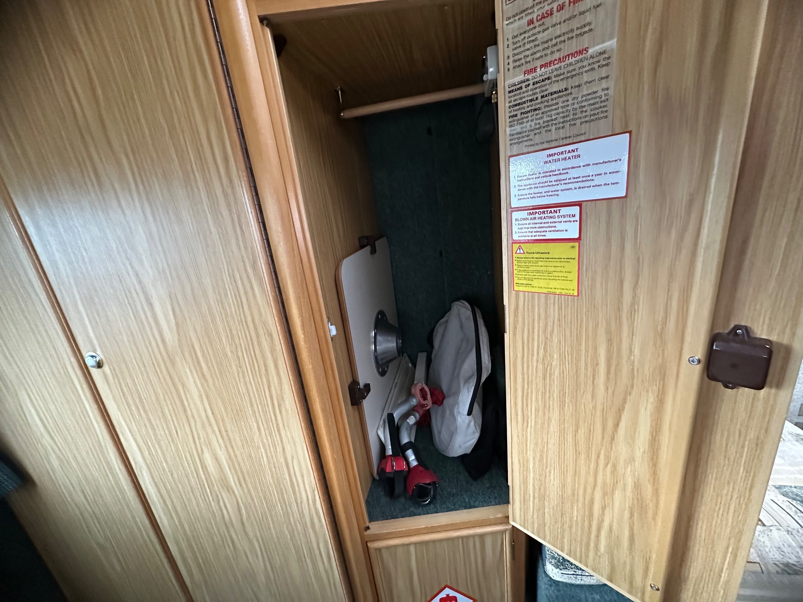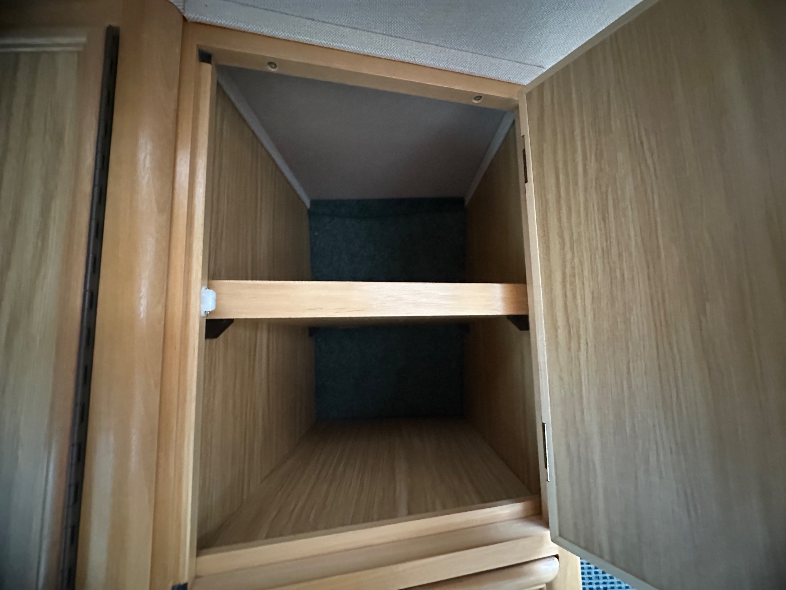 To the front of this is the gas locker at the bottom then above is the wardrobe as well as drop down for you to place your TV onto should wish to use one.