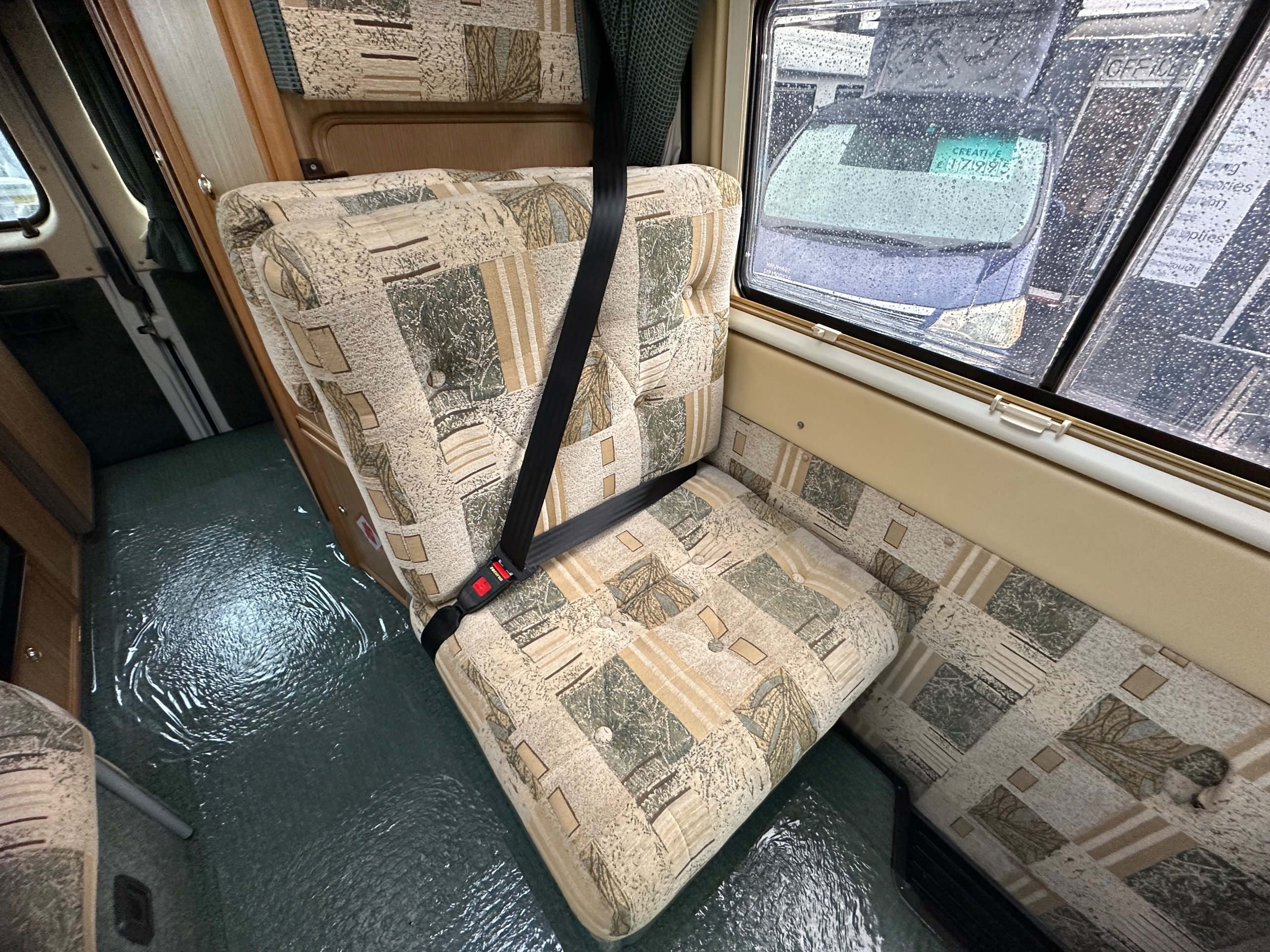 The lounge to the front and with the passenger swiveled really is a sociable place to be. There is a shelf either side for storage as well a good sized locker over the cab. The beds make into 2 singles or a big double.