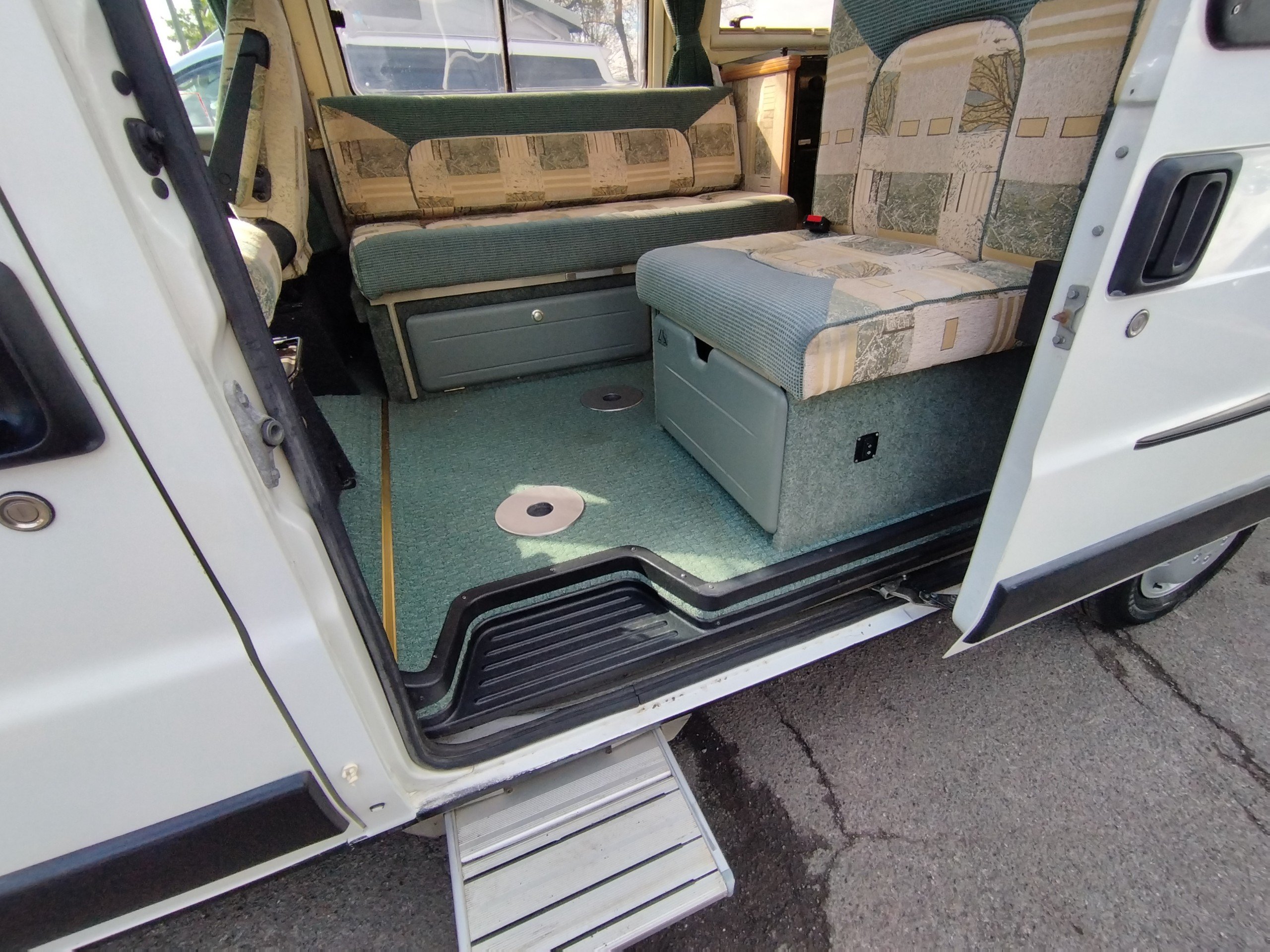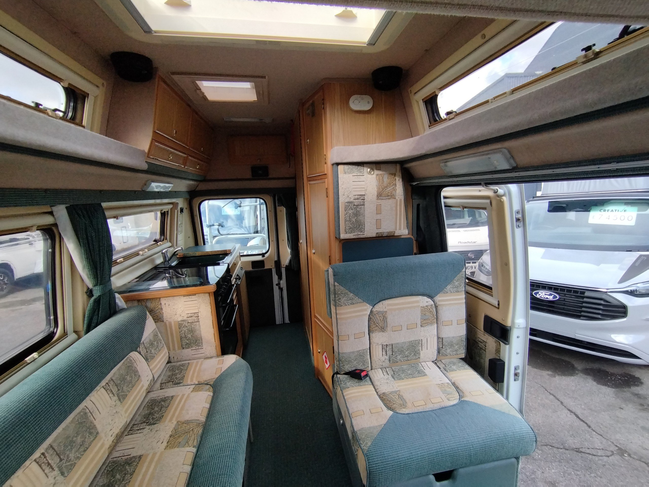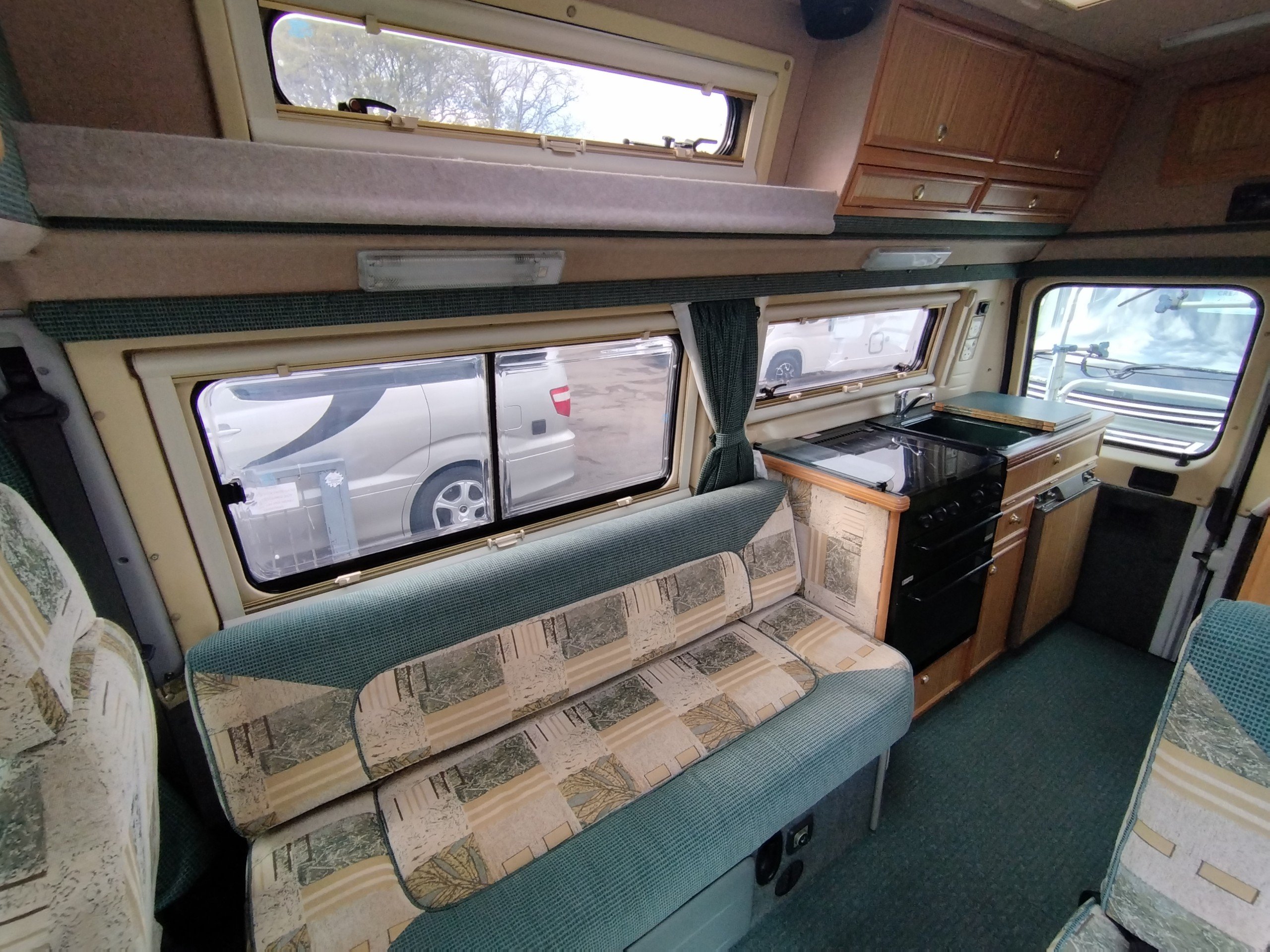 The lounge to the front and with the passenger swiveled really is a sociable place to be. There is a shelf either side for storage as well a good sized locker over the cab. The beds make into 2 singles or a big double.The build quality of these van really do stand the test of time another reason they are popular is because they comfortably fit into a standard car parking space at a supermarket.