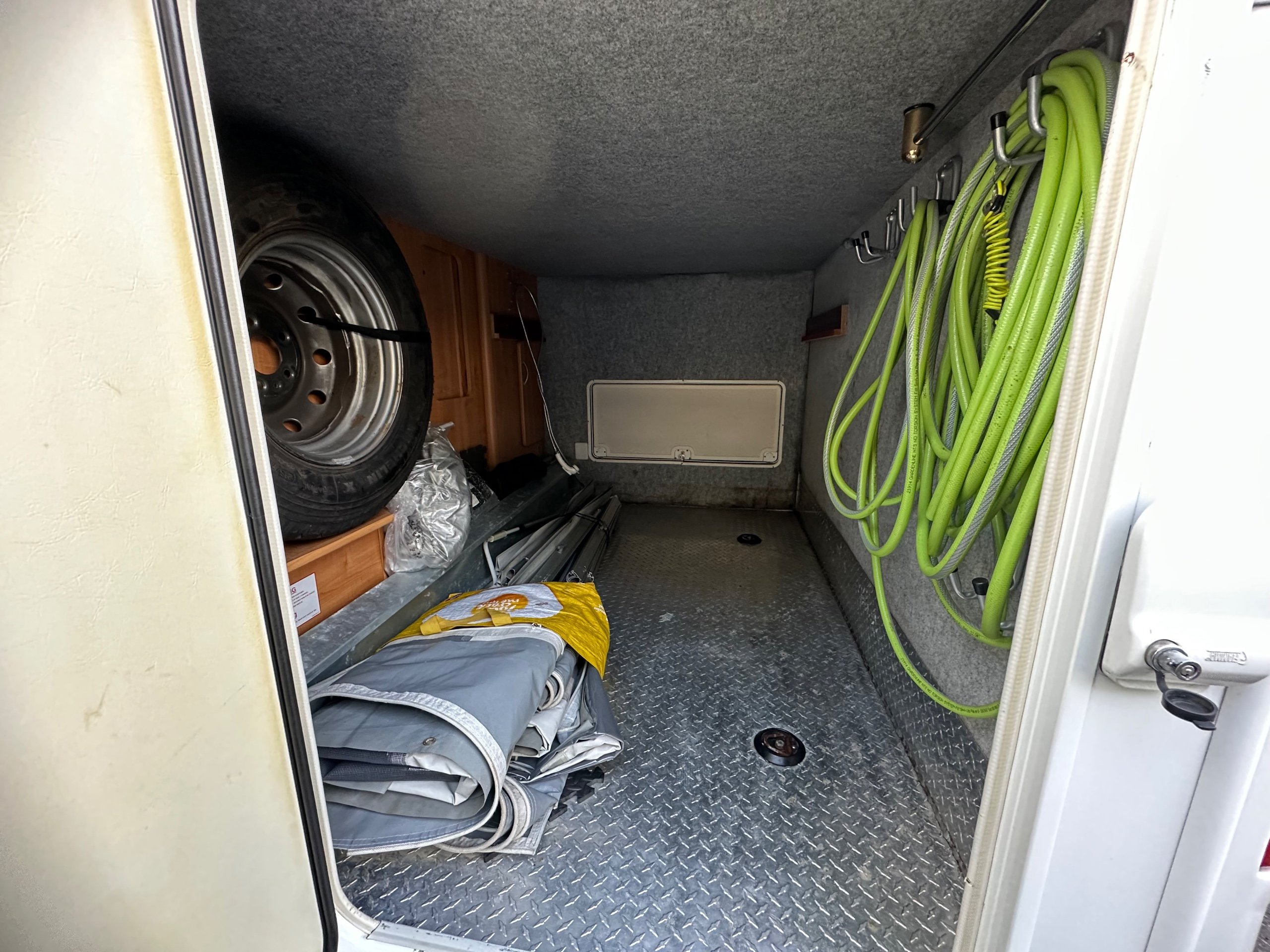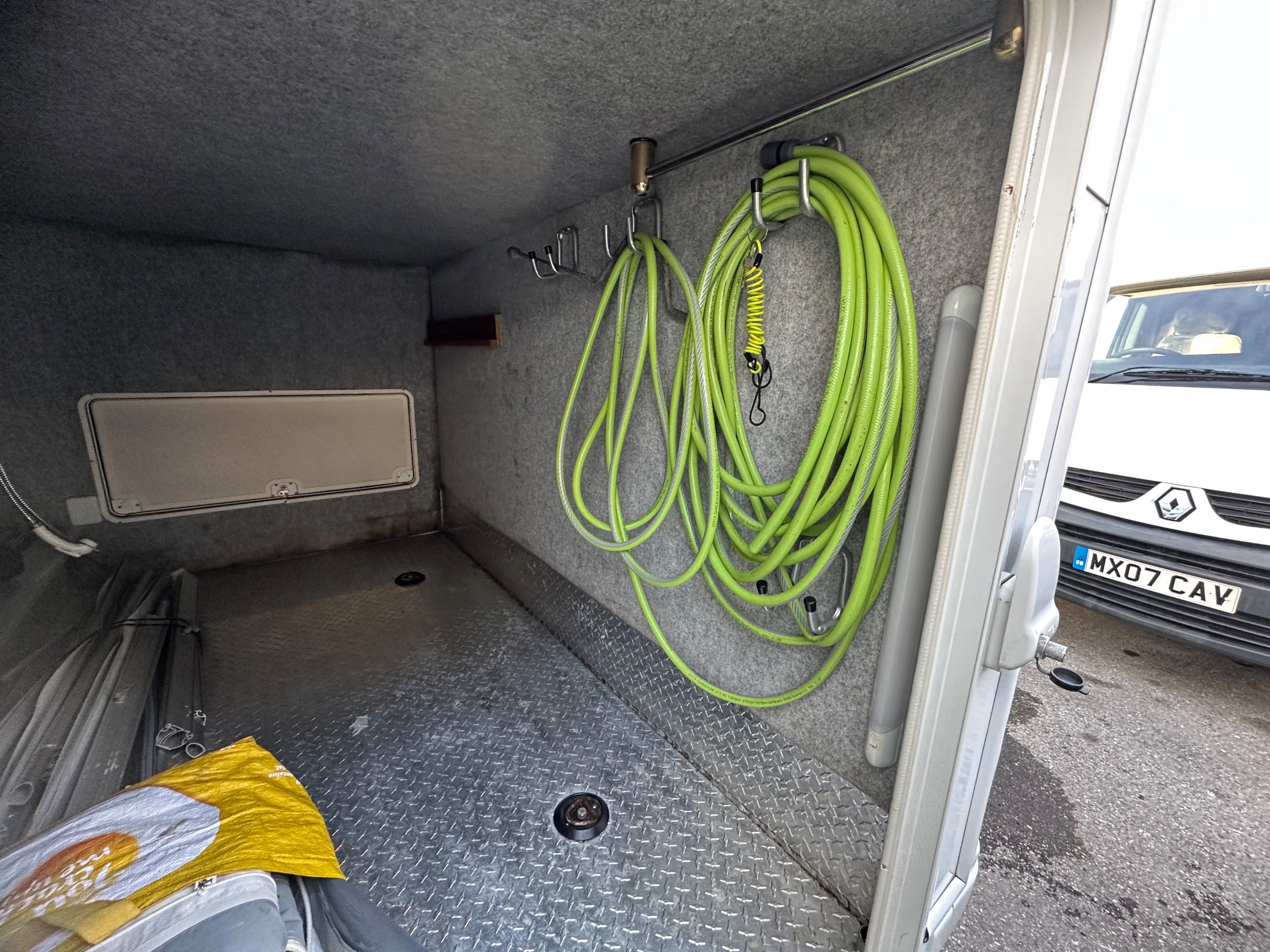 This motorhome comes with an awning ready fitted as well as outside BBQ and shower point.