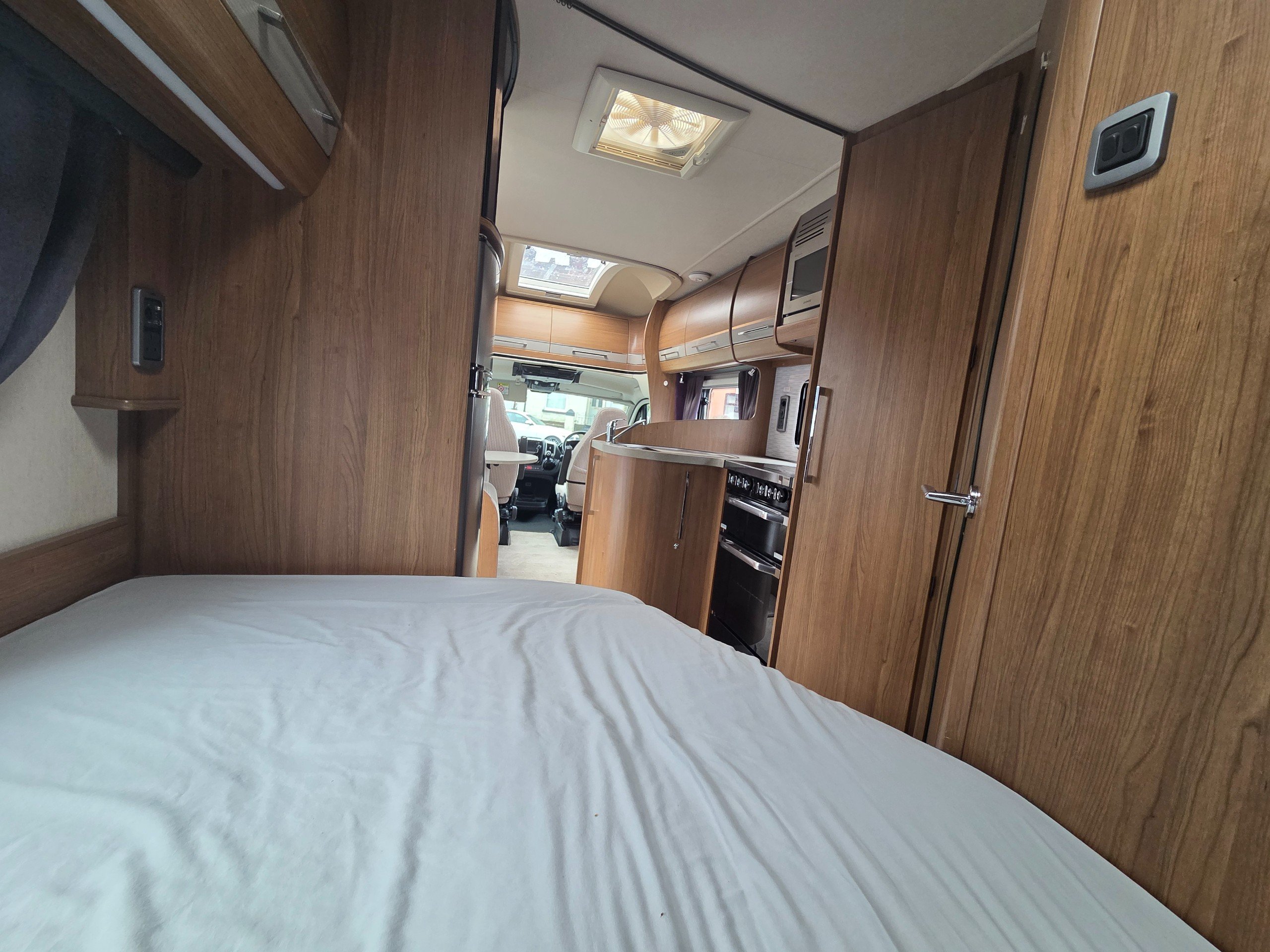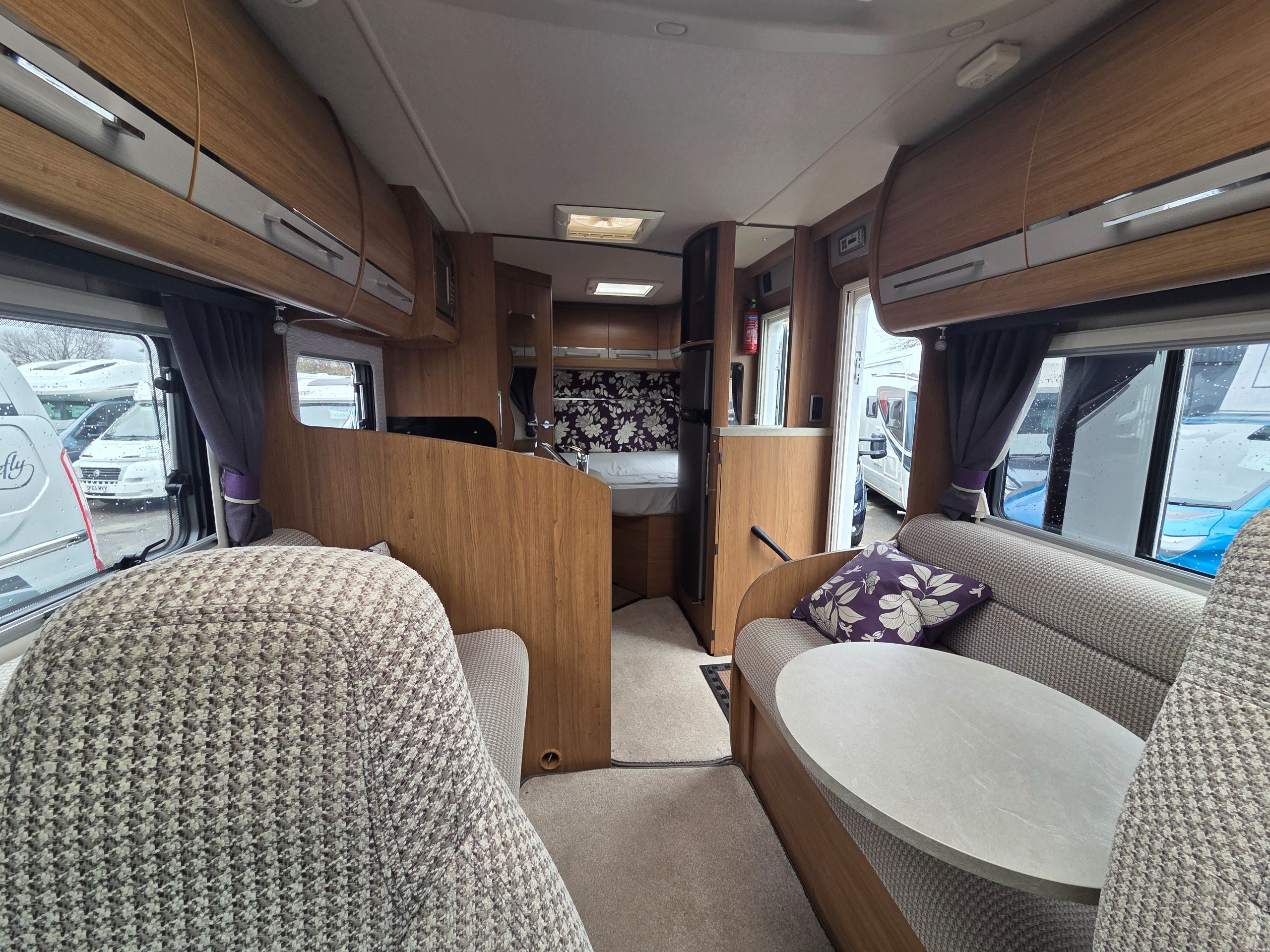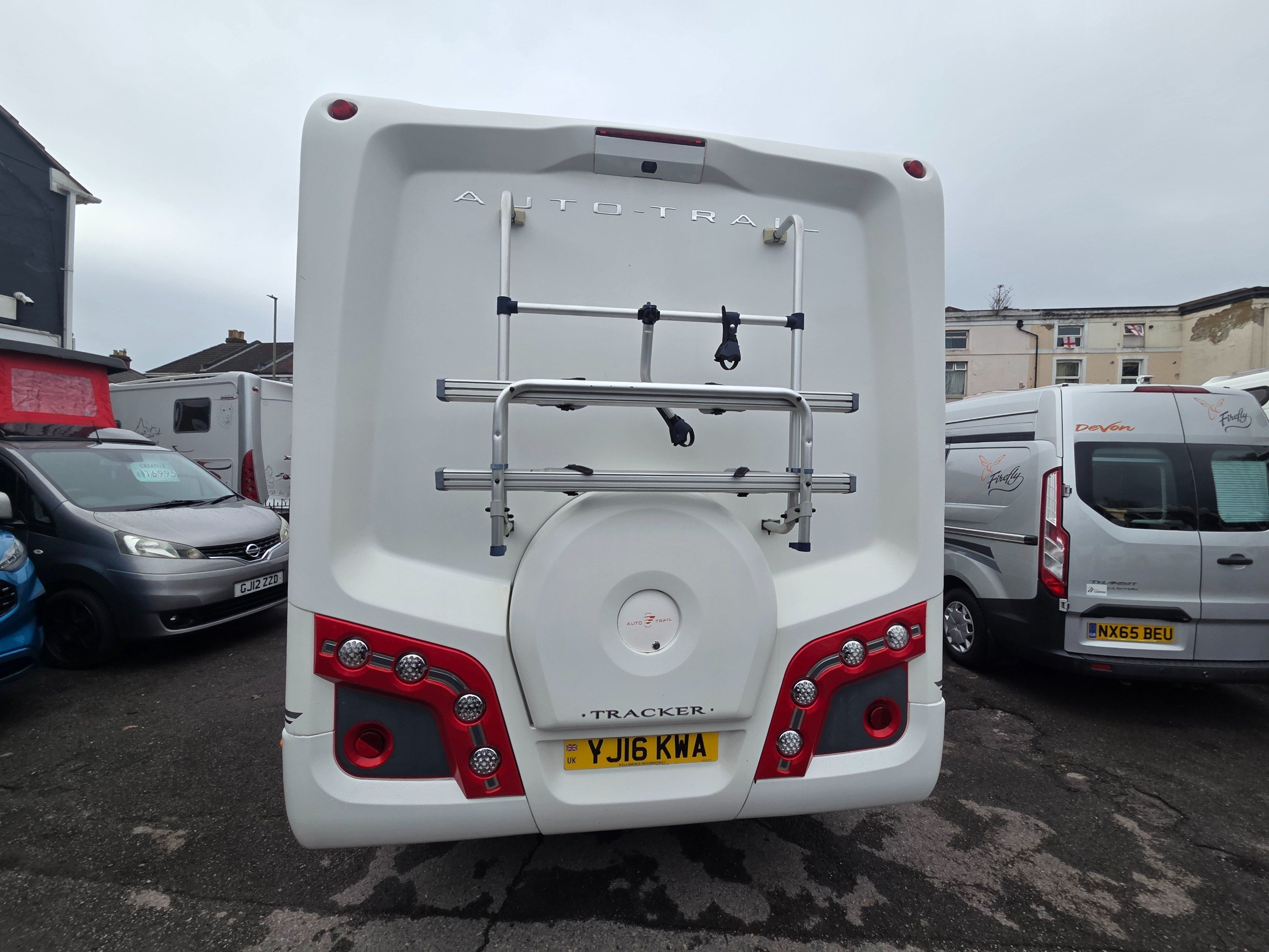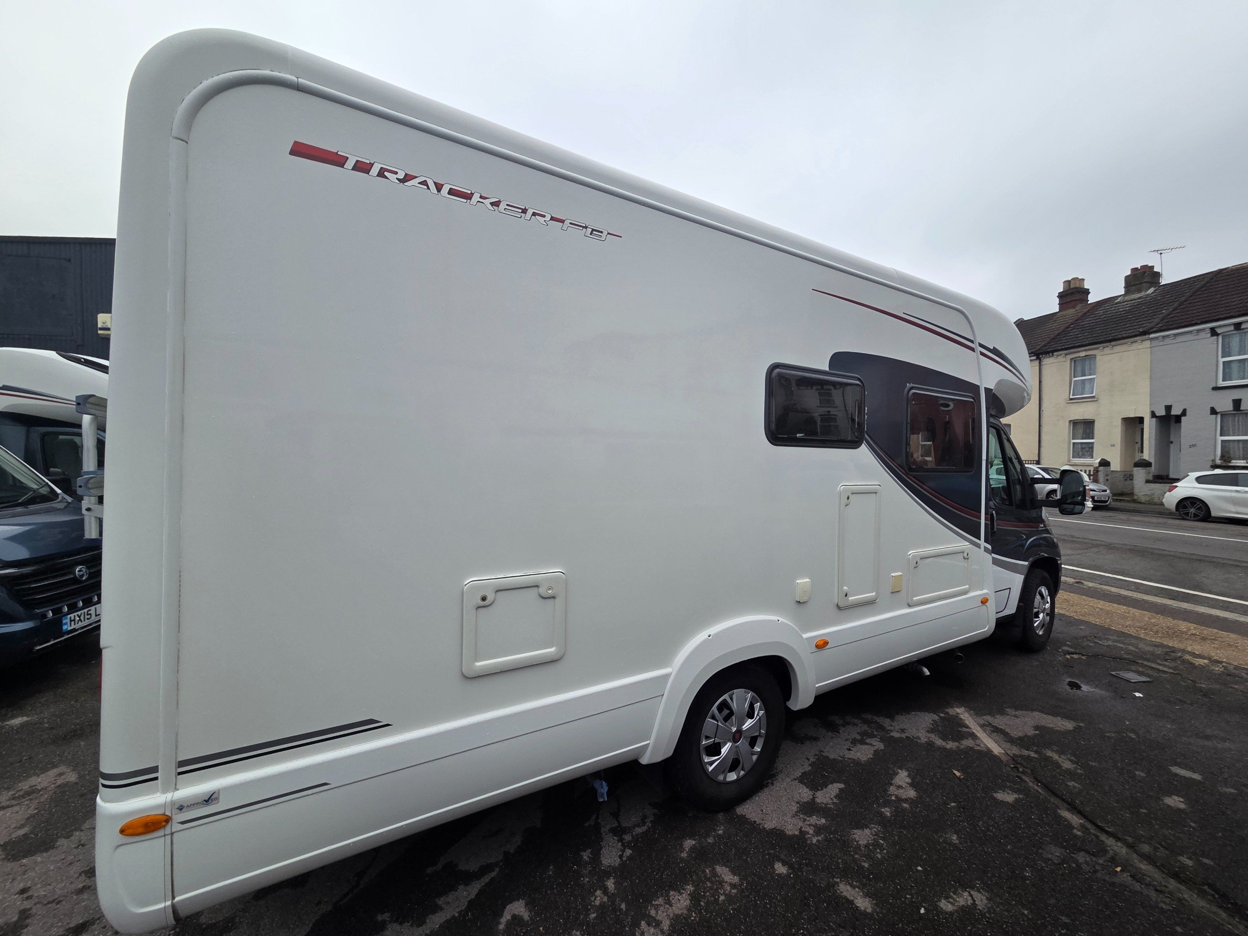 2016 Autotrail Tracker FB 4 berth motorhome covering only 31775 miles from new based on the Fiat Ducato 2.3 130bhp chassis. With a gross weight of 3650kg this motorhome will require a C1 licence to drive. The layout of this motorhome is rear washroom/ fixed bed. The washroom has a separate shower, electric flushing toilet, hand basin, vanity mirror, storage for toiletries. Centrally is the kitchen with sink, full cooker, 3 way fridge with separate freezer, space for a microwave to be placed in the top cupboard as well as a large wardrobe. Towards the front is the lounge this is made up of 2 side settees and both front travelling seats swivel to allow a more sociable lounge . There is over head wrap around storage for all your books etc. Over the cab is a double bed with window to allow for more light. All our motorhomes come with a new Mot, service and habitation check. this motorhome benefits from a ready fitted bike rack, reversing camera, built in cab blinds, gas BBQ point, Turbo fan and awning. -