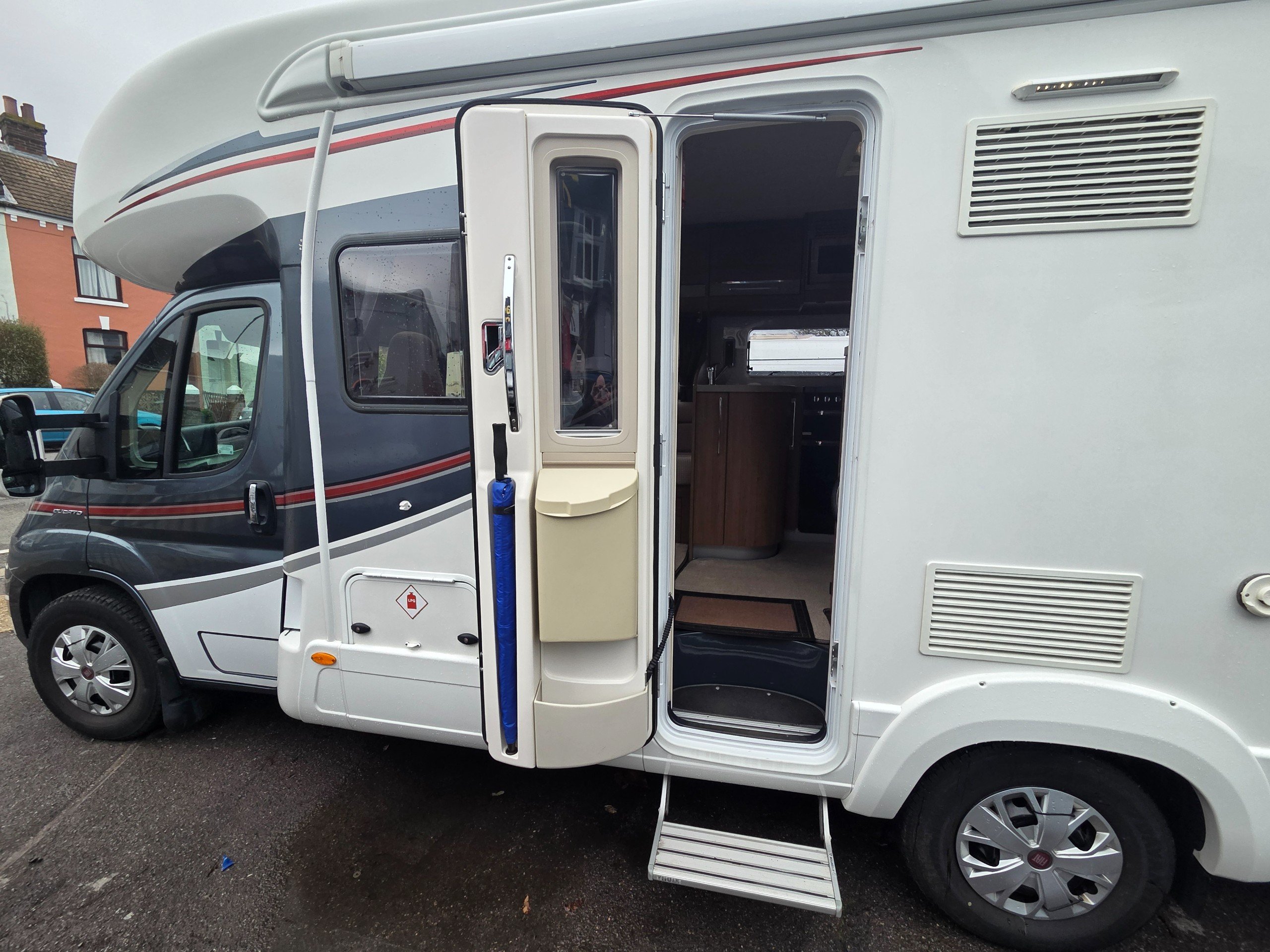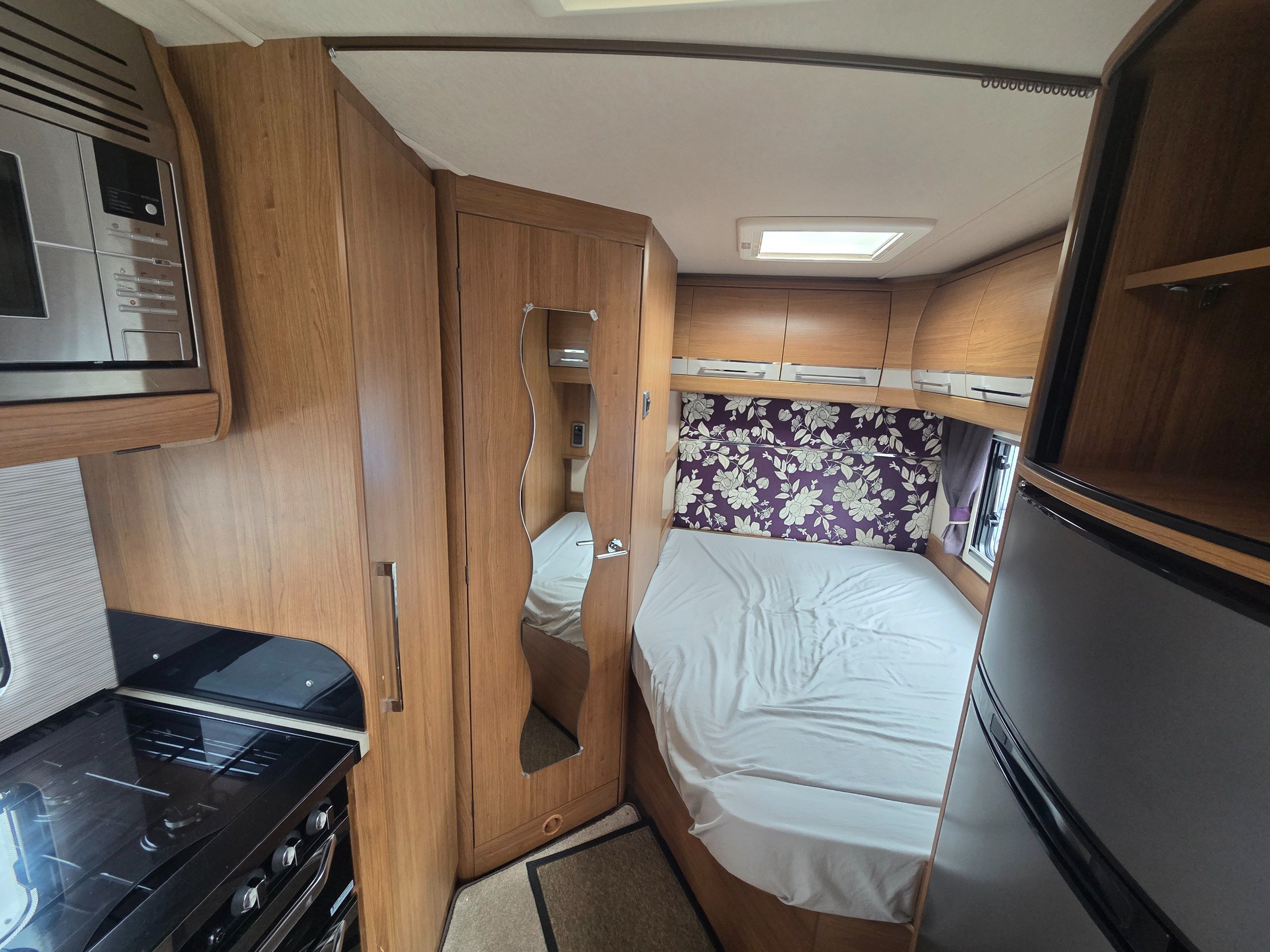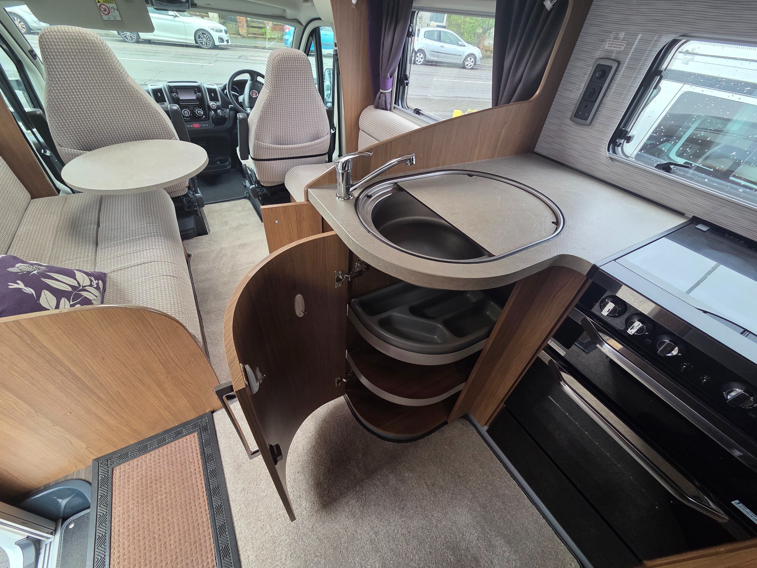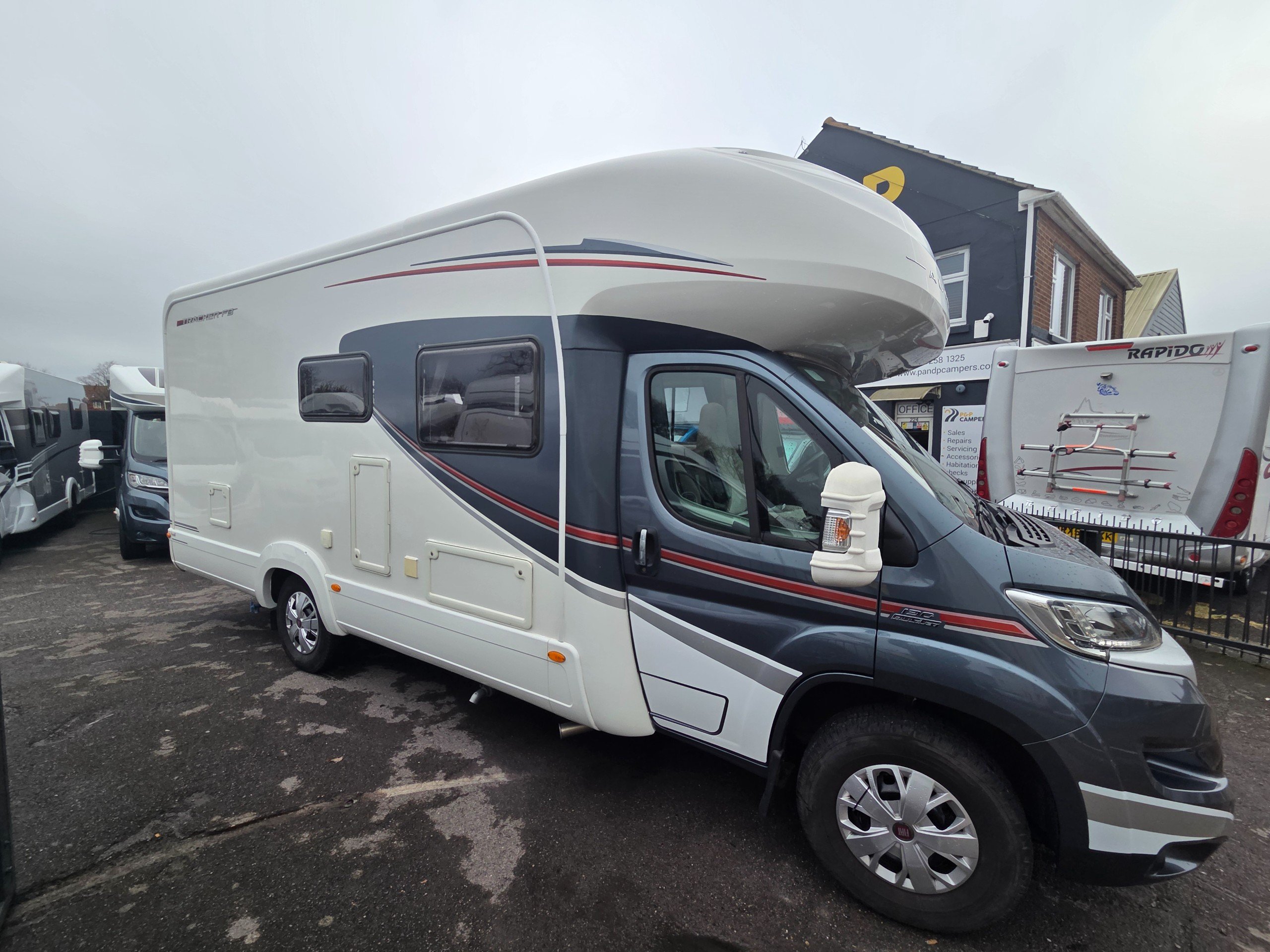 2016 Autotrail Tracker FB 4 berth motorhome covering only 31775 miles from new based on the Fiat Ducato 2.3 130bhp chassis. With a gross weight of 3650kg this motorhome will require a C1 licence to drive. The layout of this motorhome is rear washroom/ fixed bed. The washroom has a separate shower, electric flushing toilet, hand basin, vanity mirror, storage for toiletries. Centrally is the kitchen with sink, full cooker, 3 way fridge with separate freezer, space for a microwave to be placed in the top cupboard as well as a large wardrobe. Towards the front is the lounge this is made up of 2 side settees and both front travelling seats swivel to allow a more sociable lounge . There is over head wrap around storage for all your books etc. Over the cab is a double bed with window to allow for more light. All our motorhomes come with a new Mot, service and habitation check. this motorhome benefits from a ready fitted bike rack, reversing camera, built in cab blinds, gas BBQ point, Turbo fan and awning. -