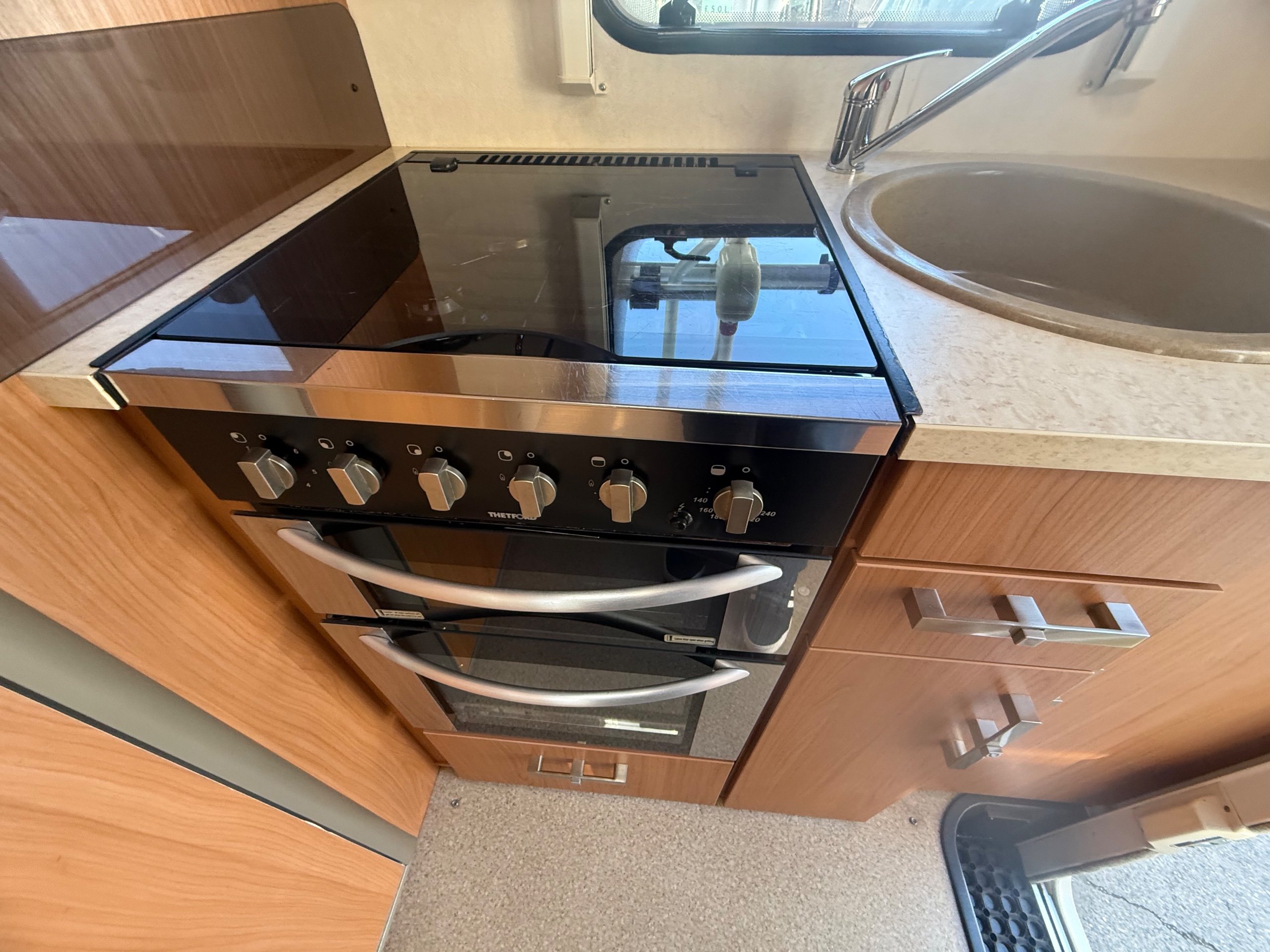 The Kitchen has everything you could require to cook up a storm, microwave, full cooker consists of 3 burner hob, electric hob, separate oven, separate grill, circular bowl sink, 3 way fridge with freezer compartment as well as storage again for the groceries.