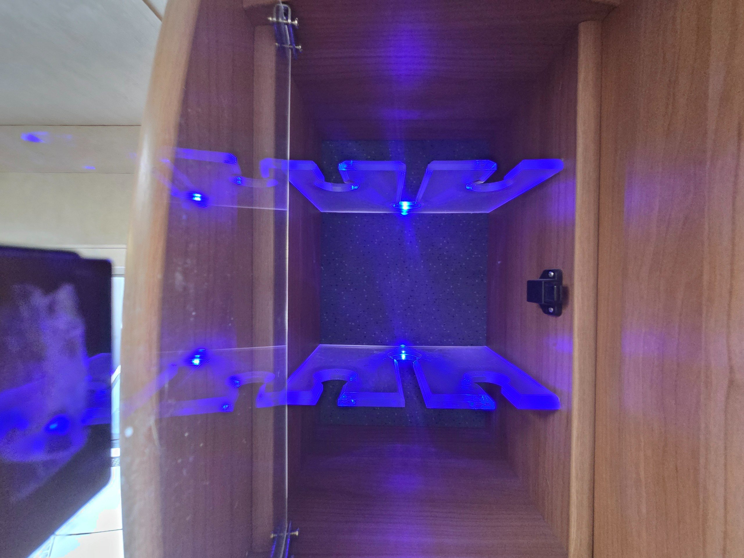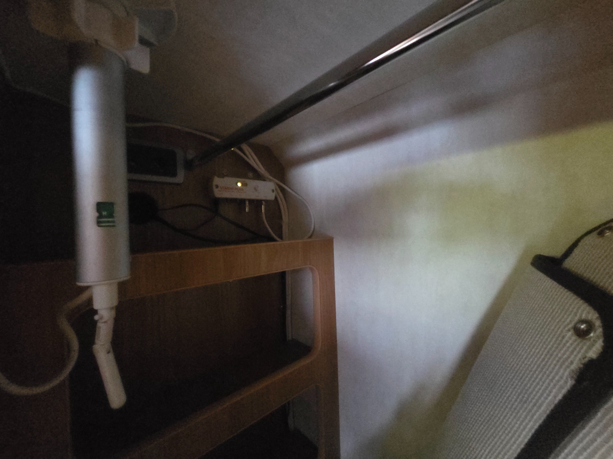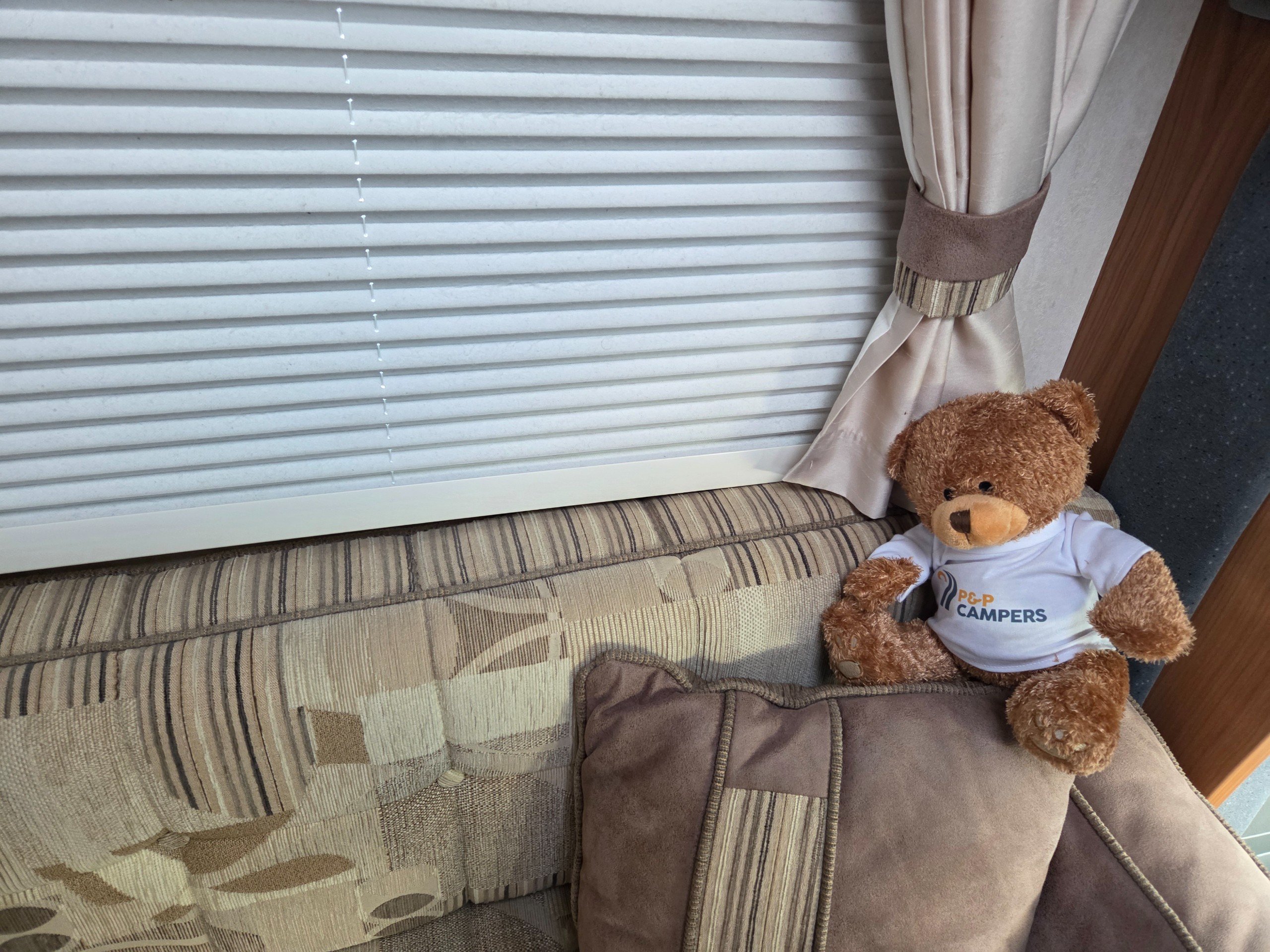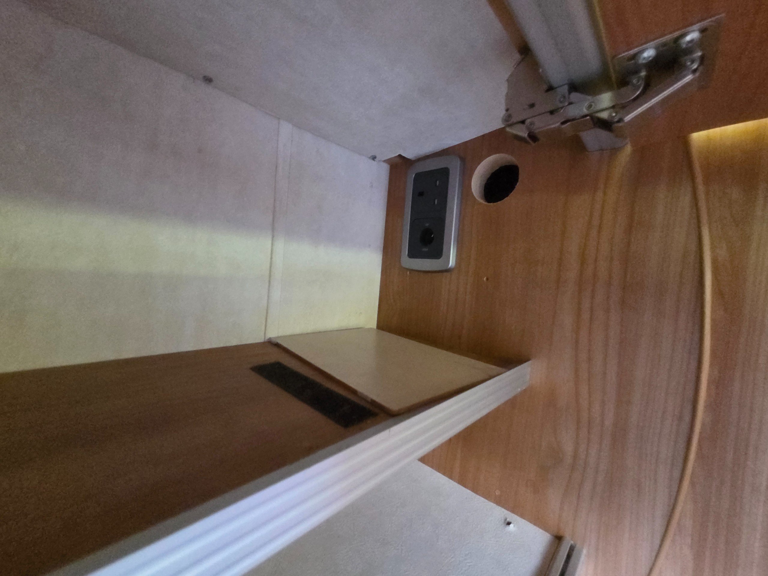 There is a good size wardrobe to the front of the washroom (with access from the washroom side too) as well as hidden drop down for the tv so it can be stored out of sight when not in use.