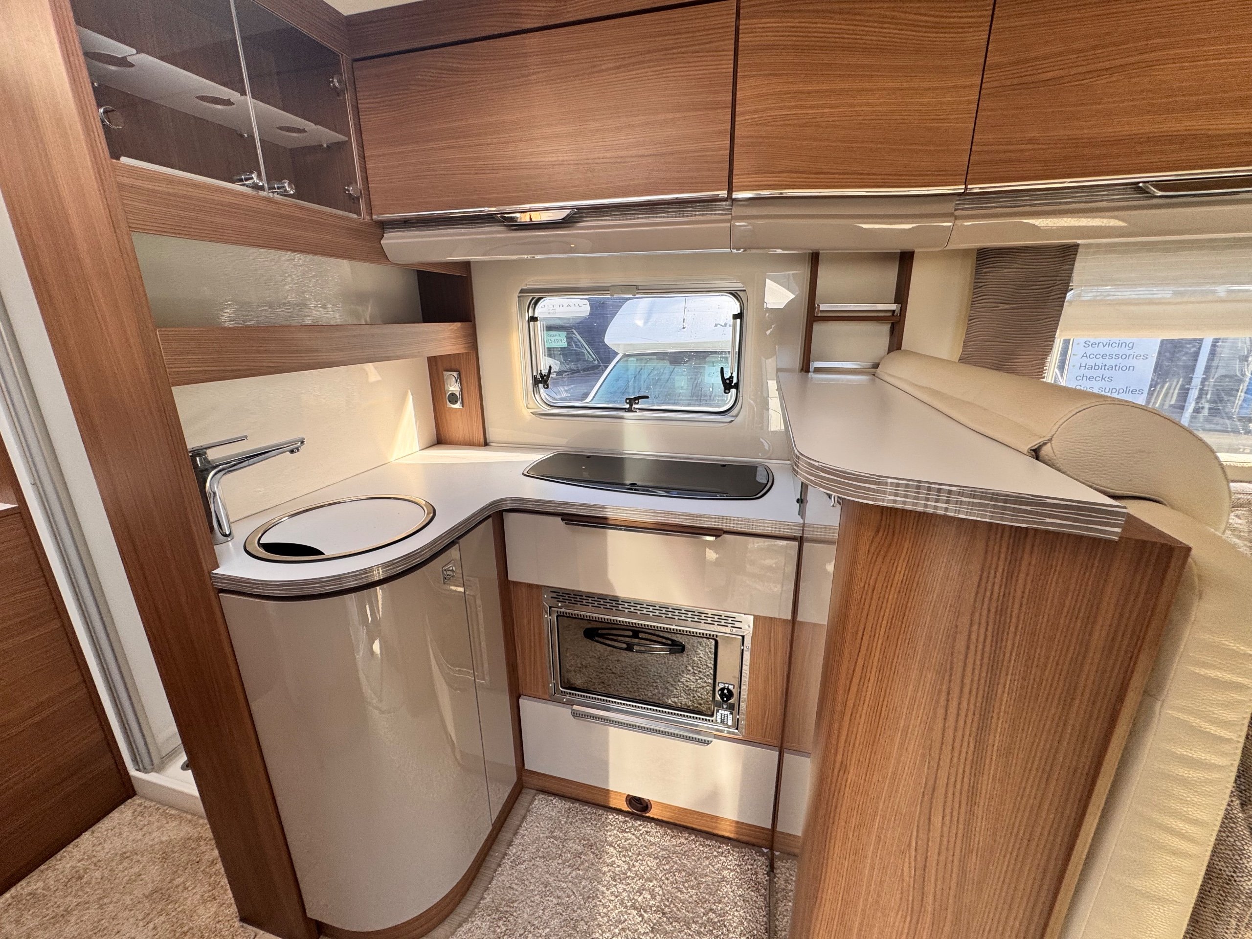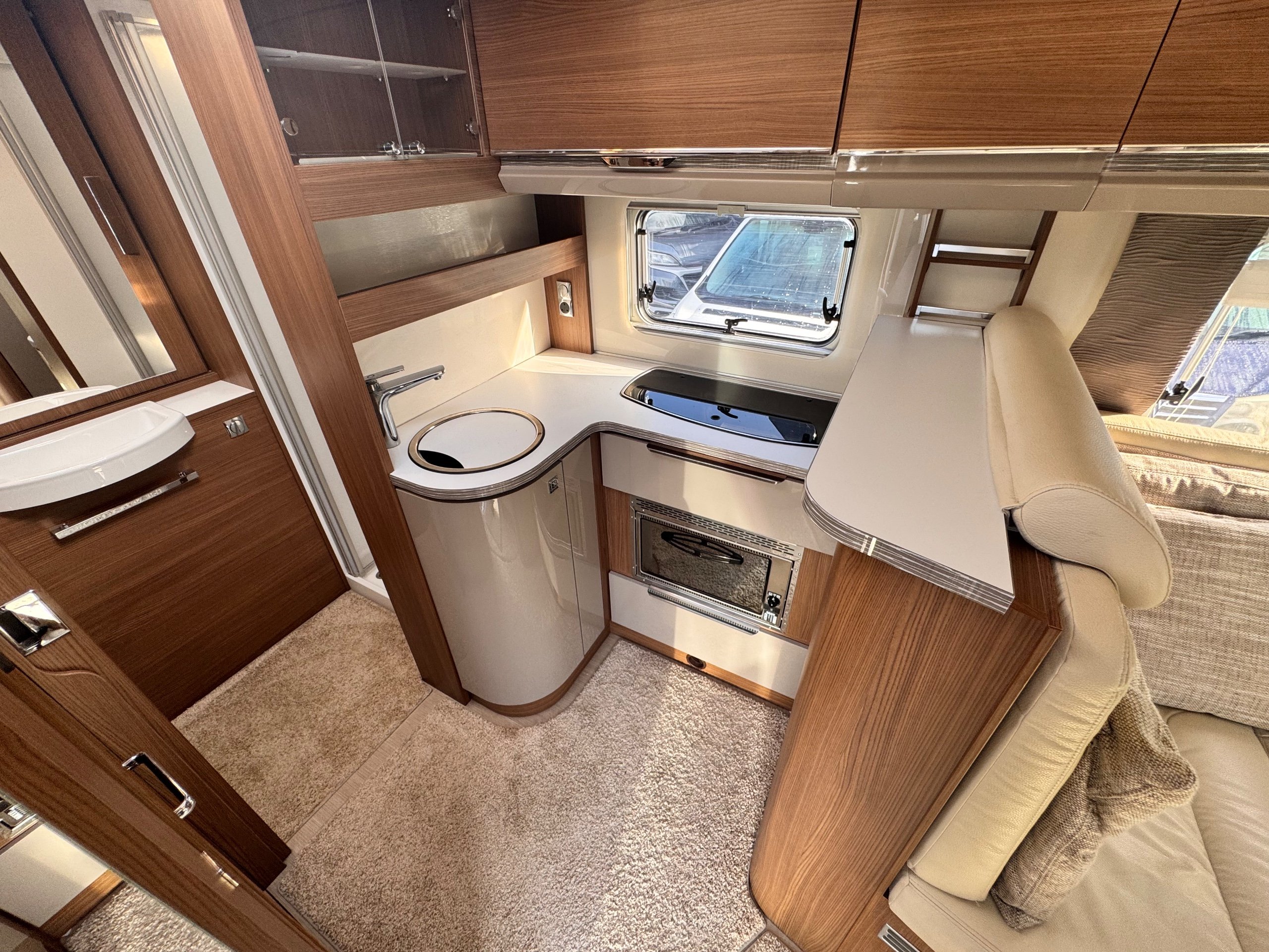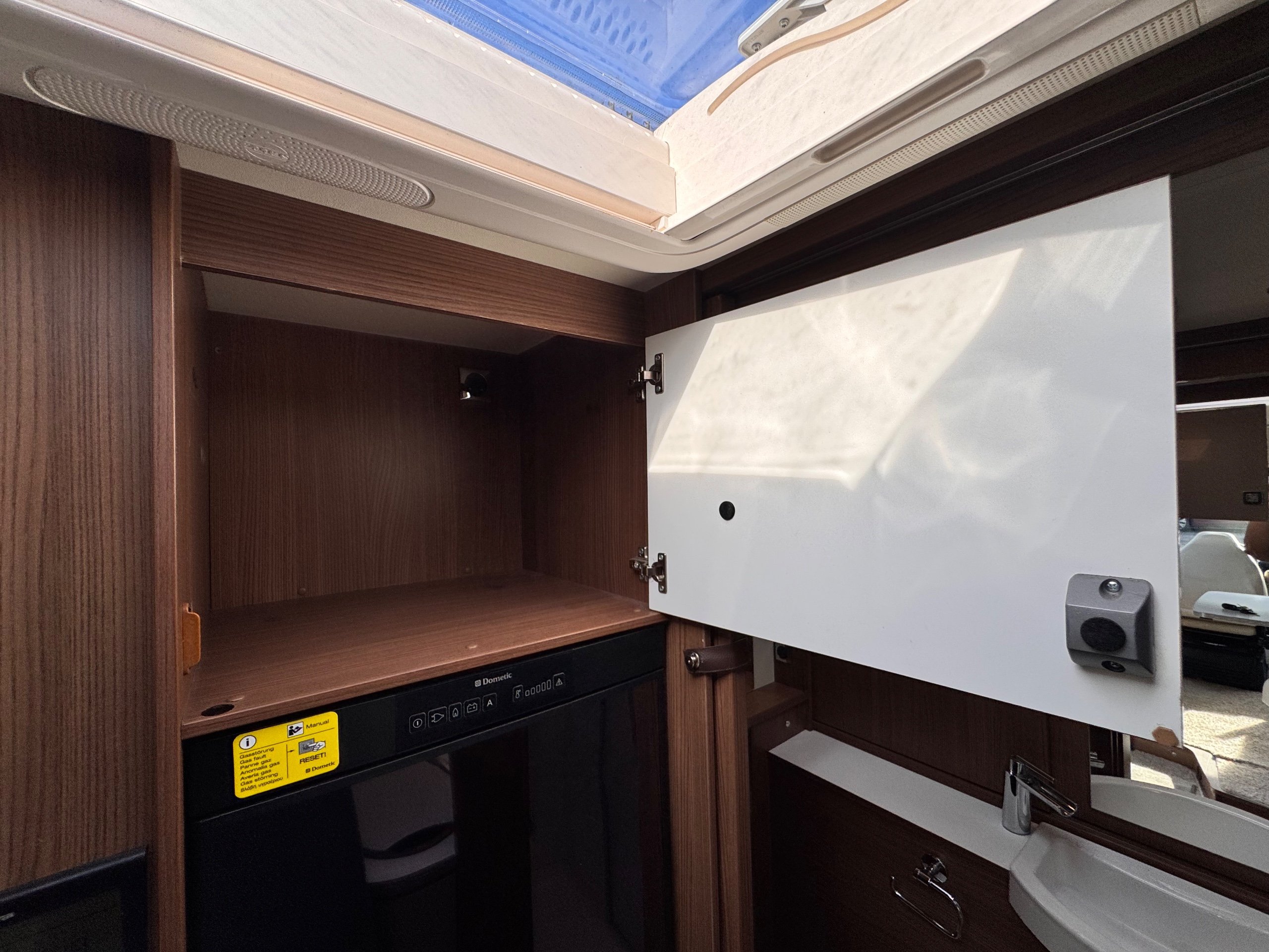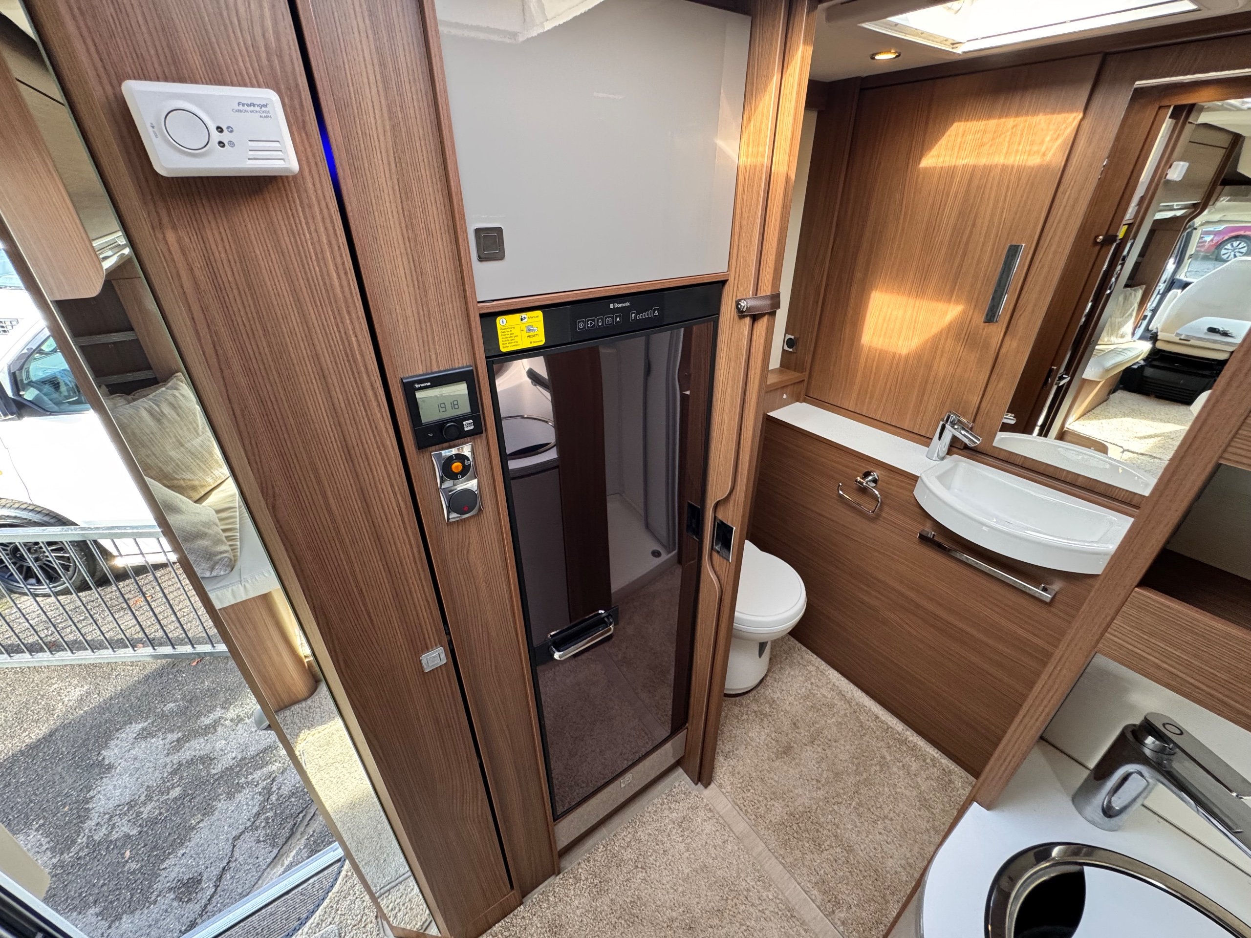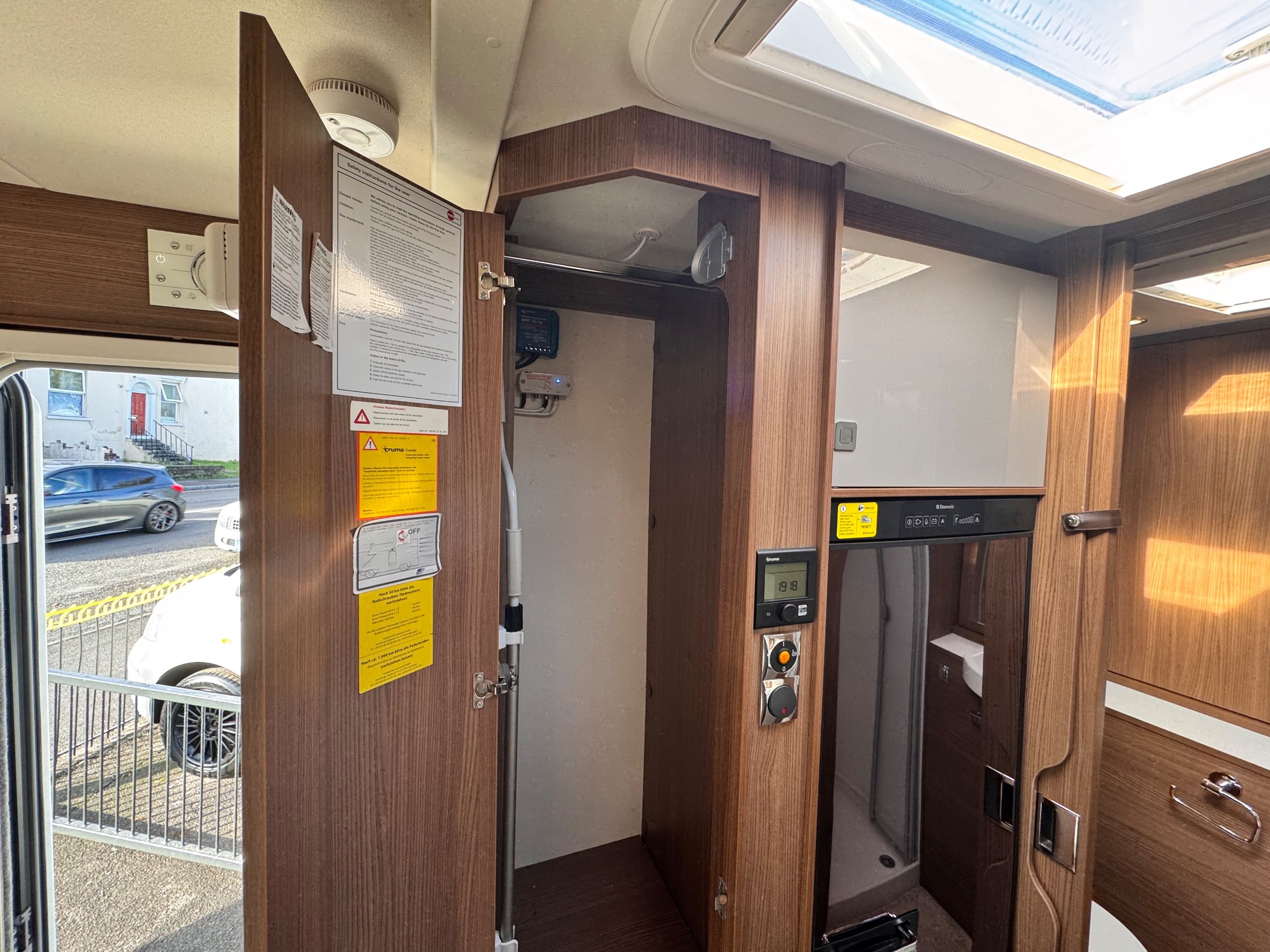The general layout of this particular model is great for many different people, with its huge lounge area it really makes for a comfortable place to be. The massive electric drop down bed allows you to effortlessly make up 2 berth in seconds at the touch of a button (literally). The kitchen area is equally impressive with its large 3 burner hob (with ignition), Smev oven/grill, hot and cold tap/sink, extra large Dometic 3-way fridge/freezer with Automatic function, bright LED lighting throughout, and more storage space than you could ever need. The bathroom is situated to the rear of the vehicle and gives you a huge amount of space to get around comfortably. You will also notice the full size mirrow, sliding doors into the large wardrobe and the fully seperate shower.