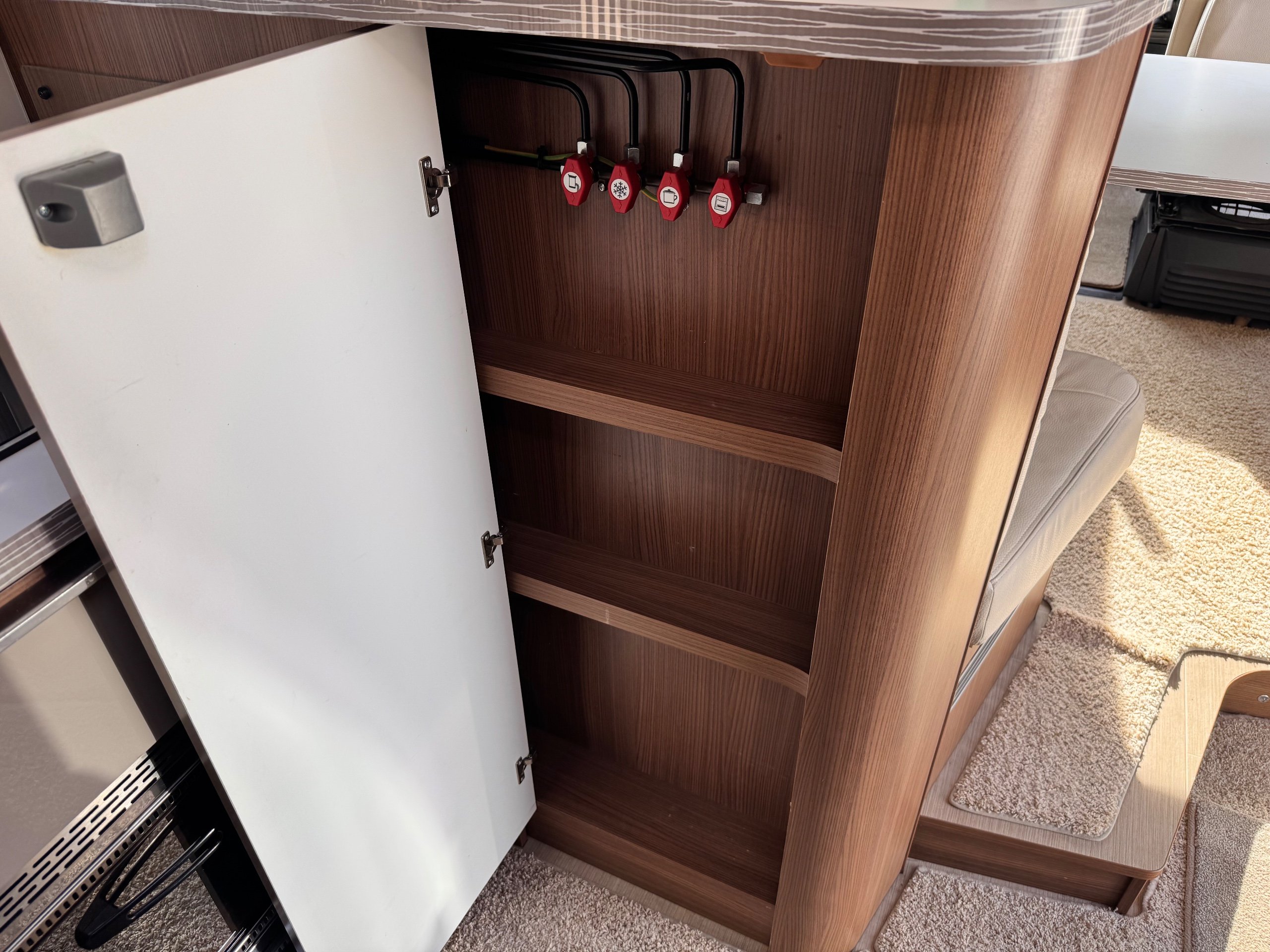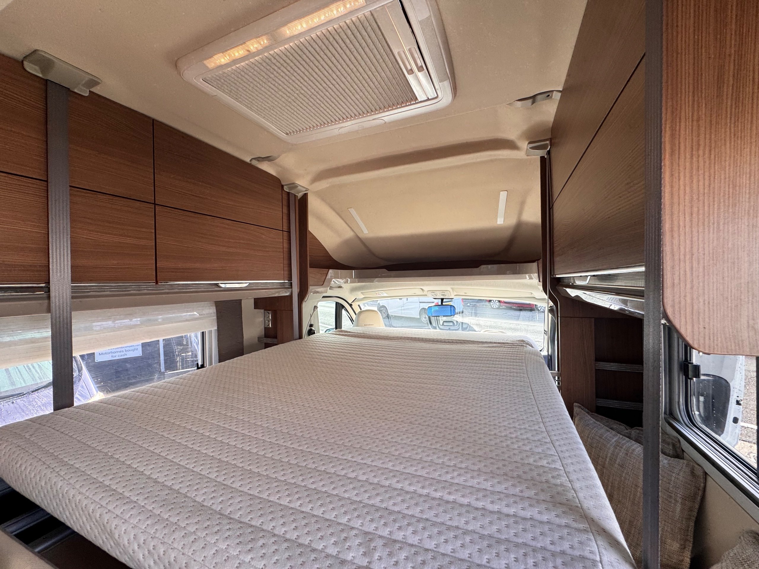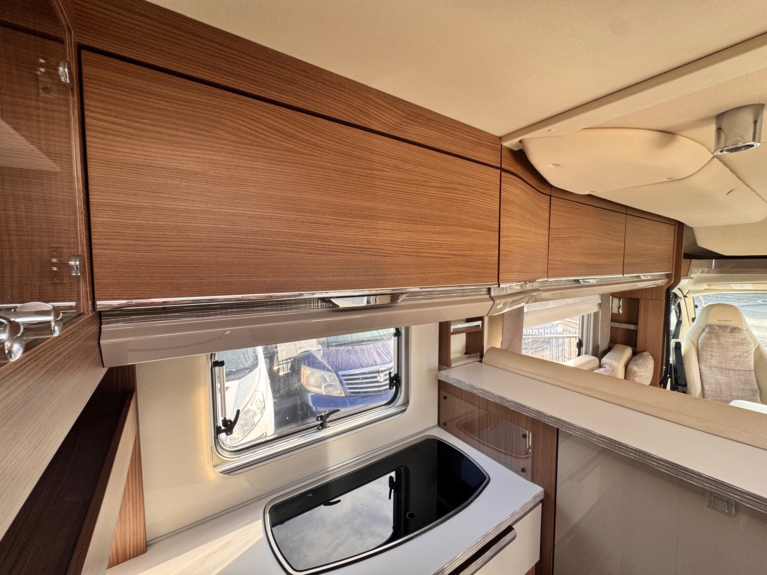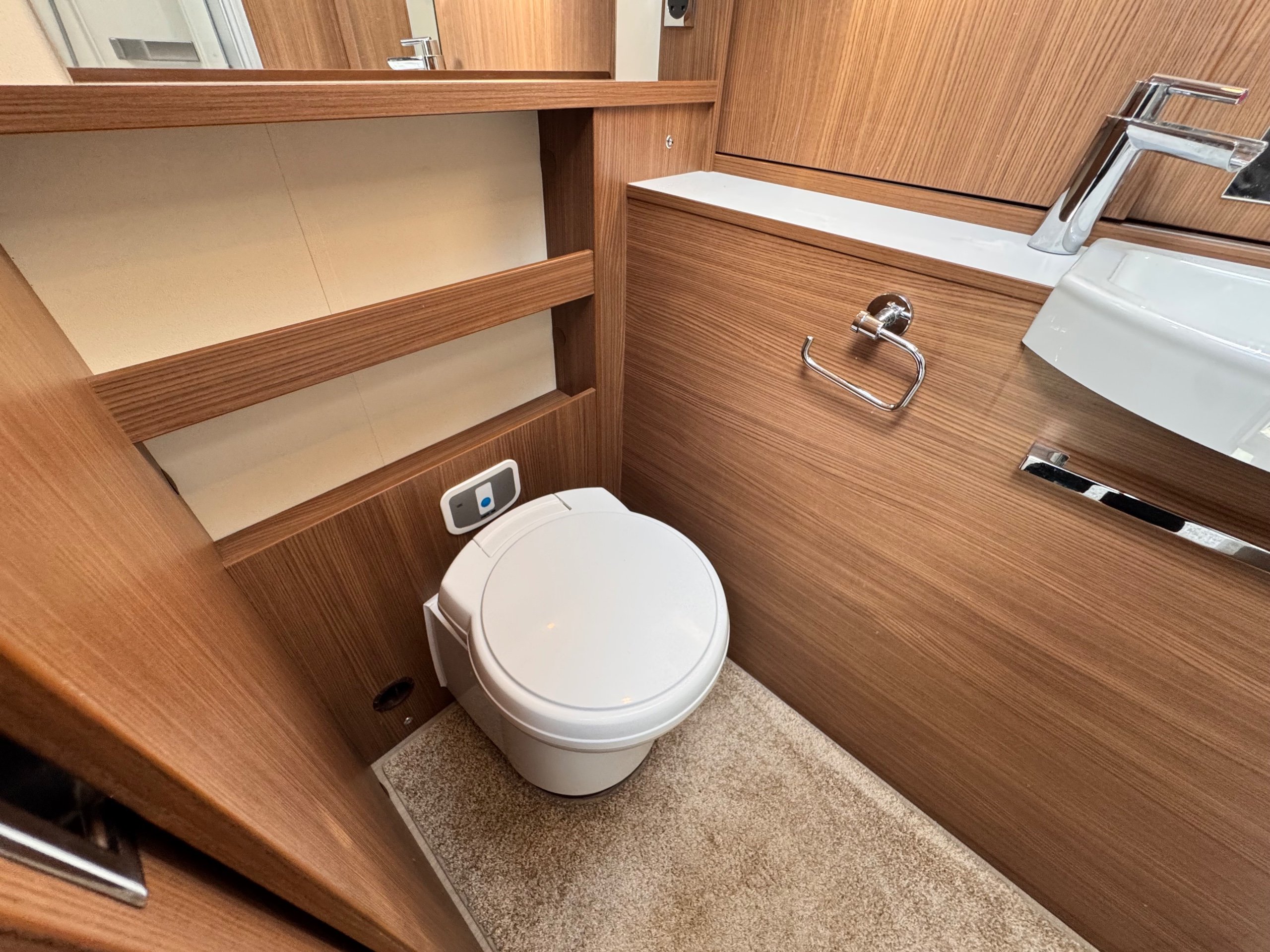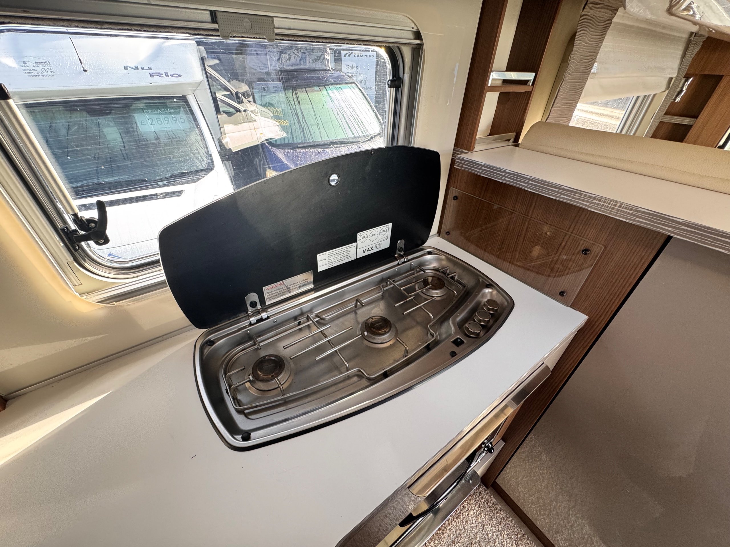 The general layout of this particular model is great for many different people, with its huge lounge area it really makes for a comfortable place to be. The massive electric drop down bed allows you to effortlessly make up 2 berth in seconds at the touch of a button (literally). The kitchen area is equally impressive with its large 3 burner hob (with ignition), Smev oven/grill, hot and cold tap/sink, extra large Dometic 3-way fridge/freezer with Automatic function, bright LED lighting throughout, and more storage space than you could ever need. The bathroom is situated to the rear of the vehicle and gives you a huge amount of space to get around comfortably. You will also notice the full size mirrow, sliding doors into the large wardrobe and the fully seperate shower.