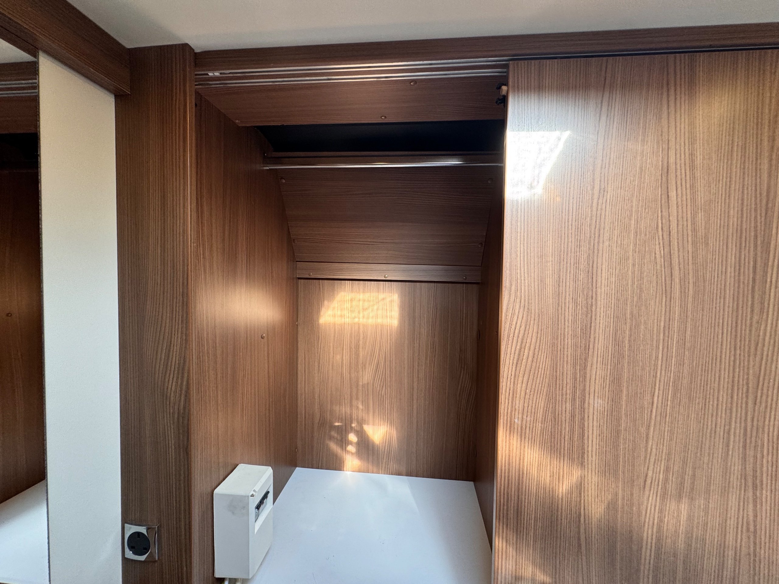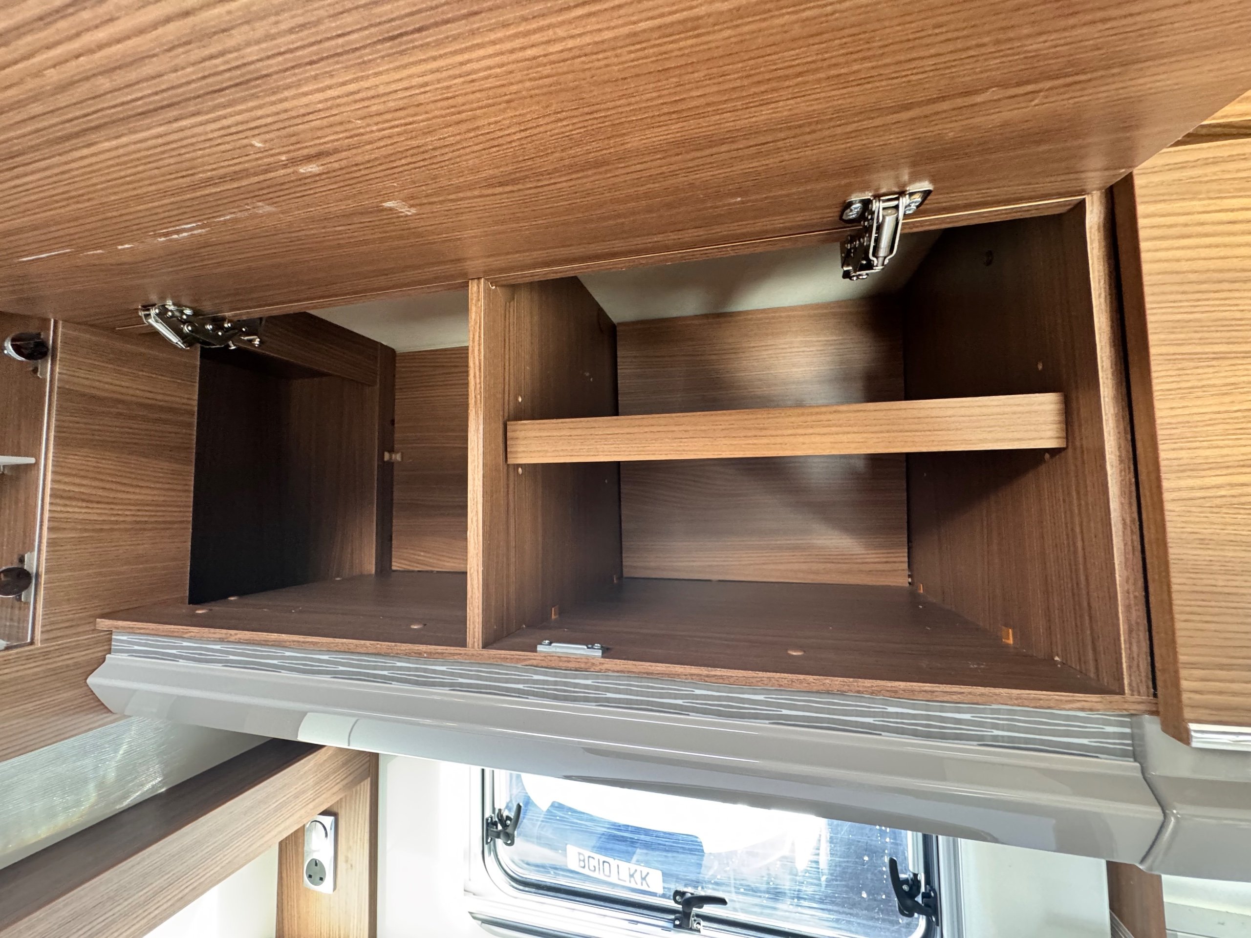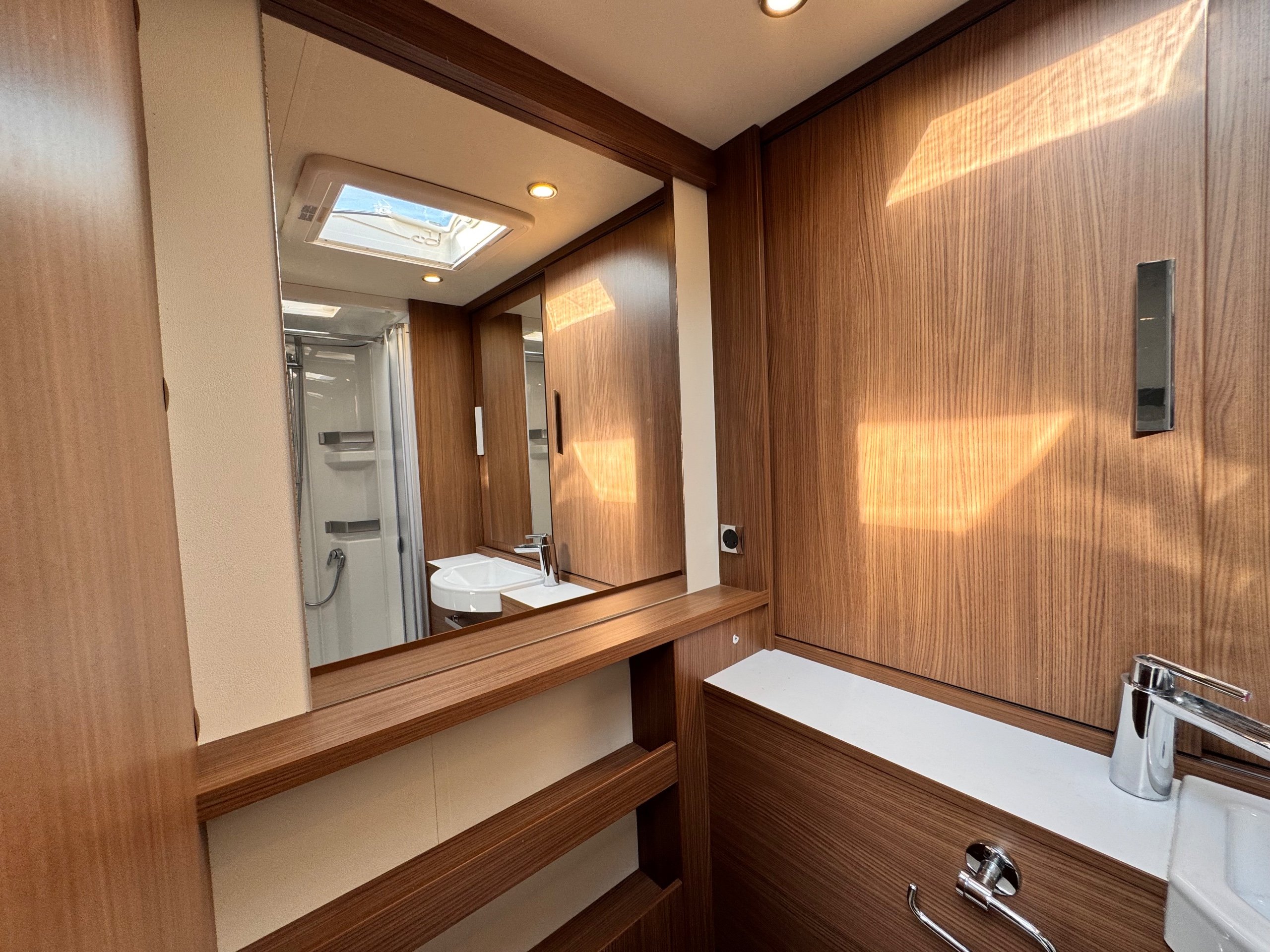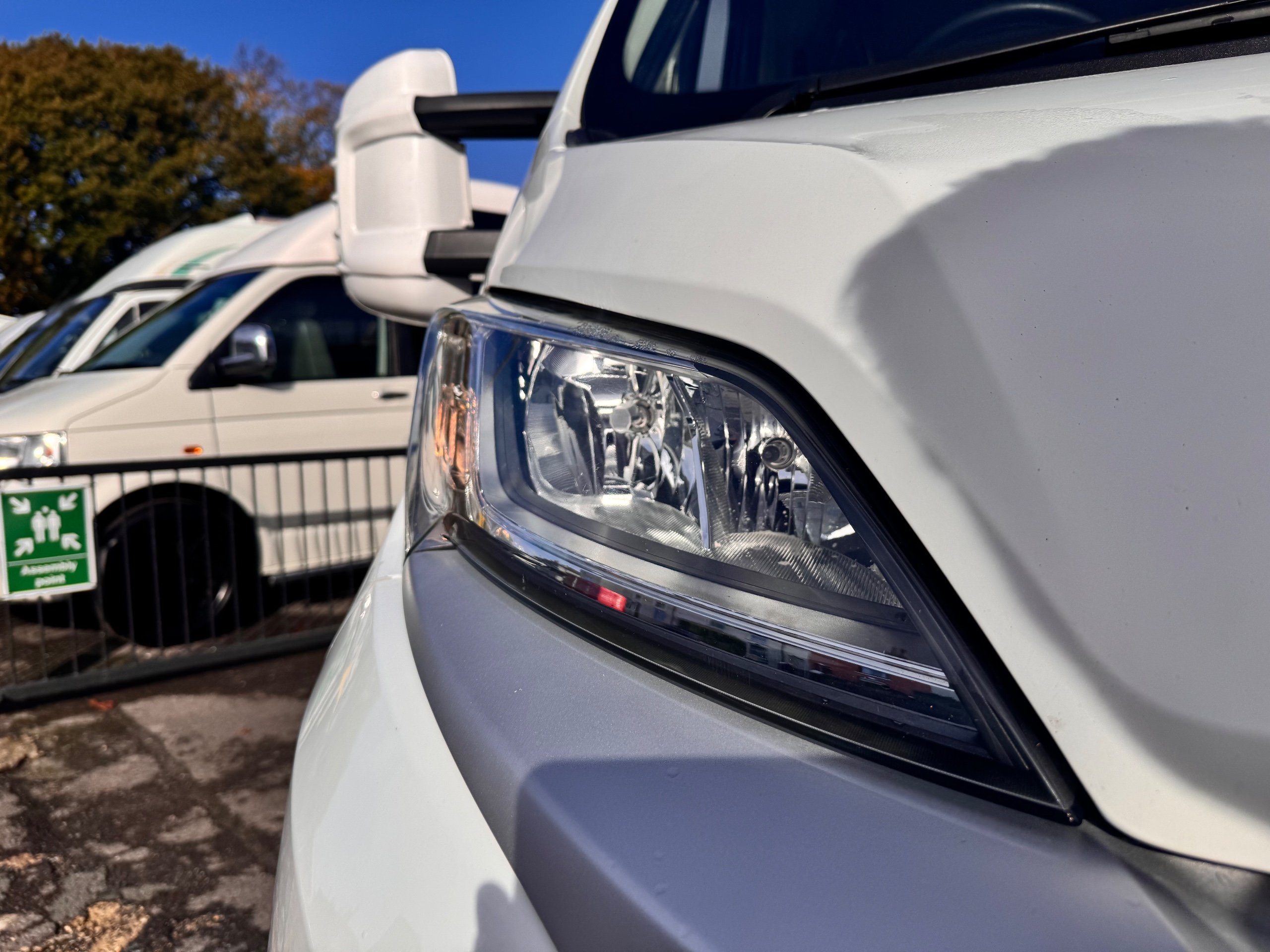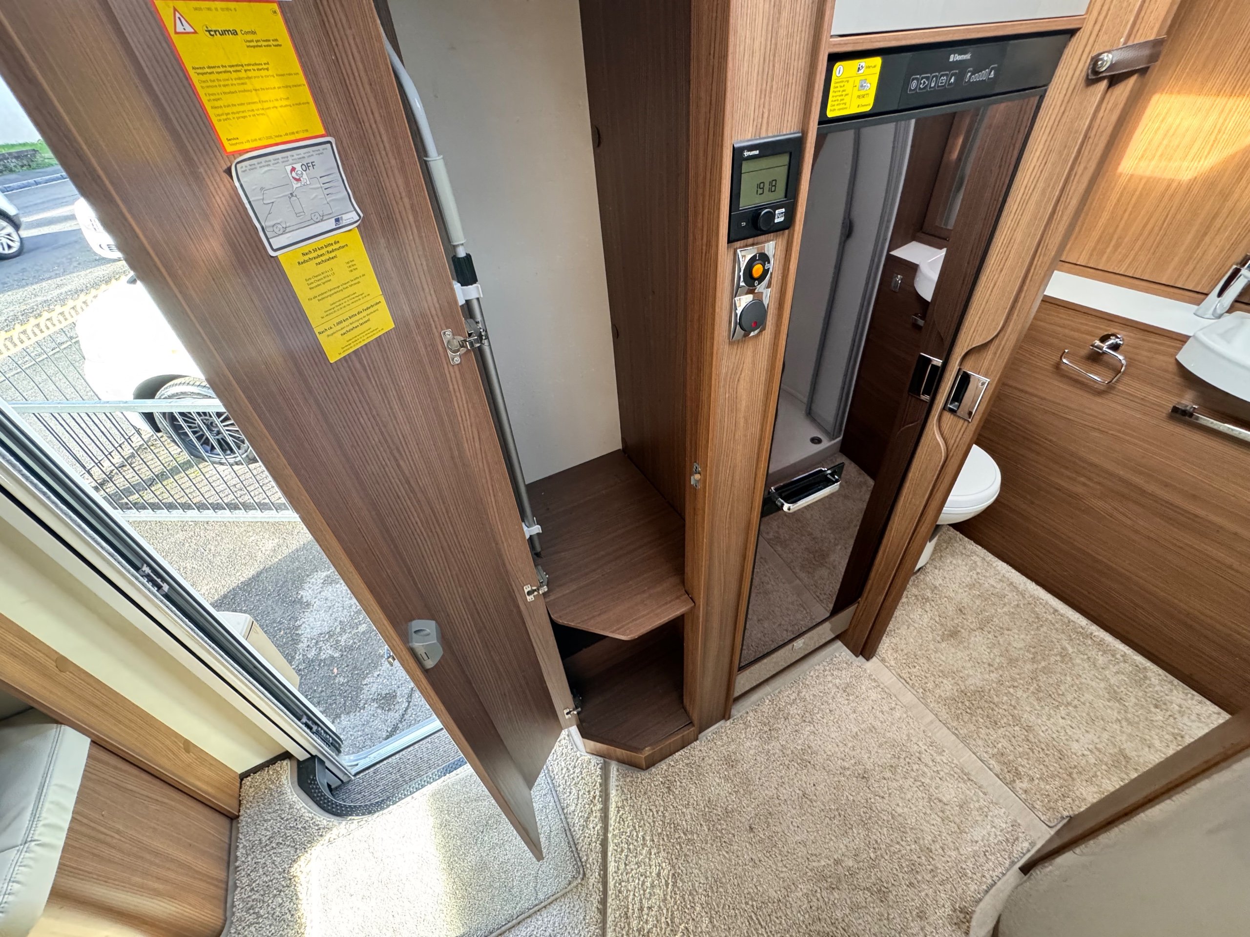 The general layout of this particular model is great for many different people, with its huge lounge area it really makes for a comfortable place to be. The massive electric drop down bed allows you to effortlessly make up 2 berth in seconds at the touch of a button (literally). The kitchen area is equally impressive with its large 3 burner hob (with ignition), Smev oven/grill, hot and cold tap/sink, extra large Dometic 3-way fridge/freezer with Automatic function, bright LED lighting throughout, and more storage space than you could ever need. The bathroom is situated to the rear of the vehicle and gives you a huge amount of space to get around comfortably. You will also notice the full size mirrow, sliding doors into the large wardrobe and the fully seperate shower.