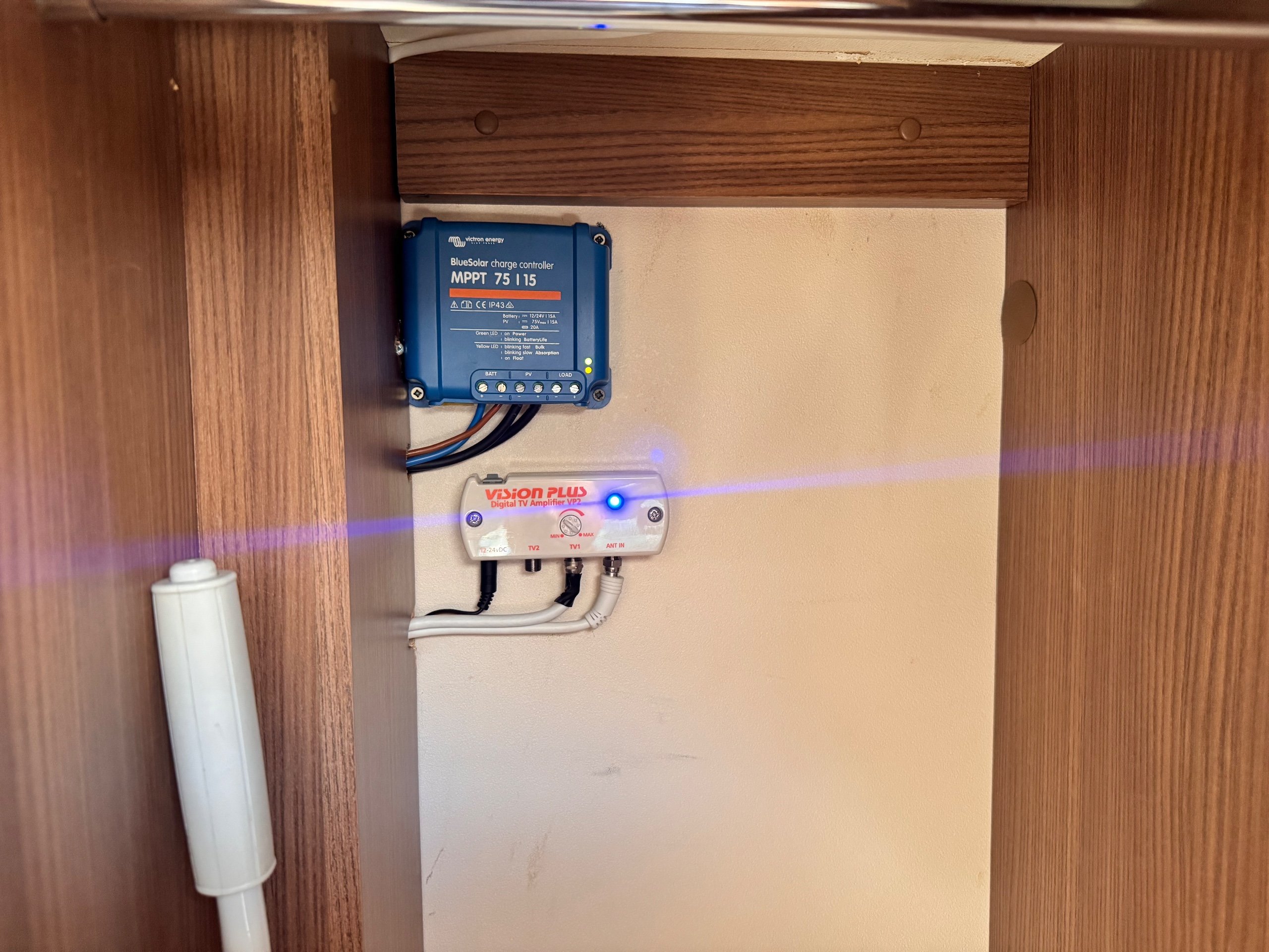 As mentioned earlier on, this particular vehicle also comes with a massive variety of optional and some standard extras from factory. Some of these extras are as follows: Full Autowatch alarm system, heated and swivelling front seats, Victron Energy solar panel with MPPT controller, Renogy Inverter system, air assisted suspension (with filling point in cab) cab air conditioning, twin reversing camera for both rear view and reversing, and underfloor heating (240v powered). There are many more things that this vehicle has, some of which can be seen in the pictures.