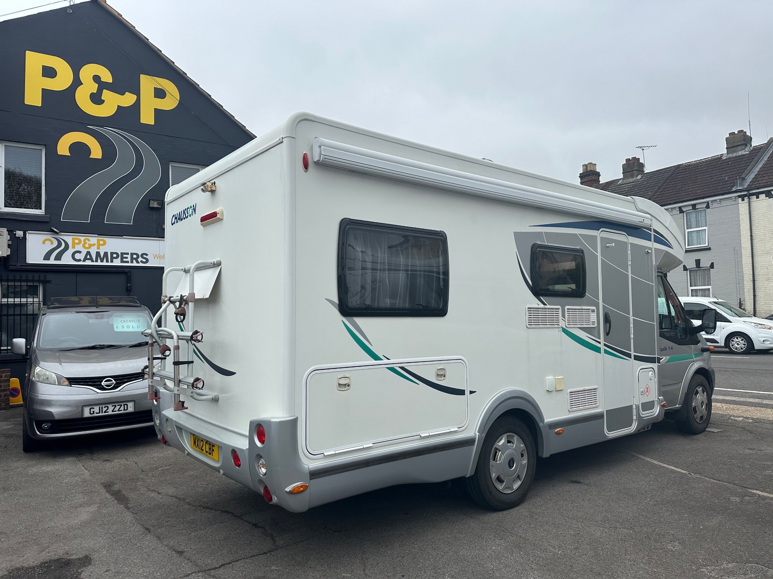 The motorhome has an awning, bike rack, reversing camera, Sog system, diesel heating and solar panel ready fitted.