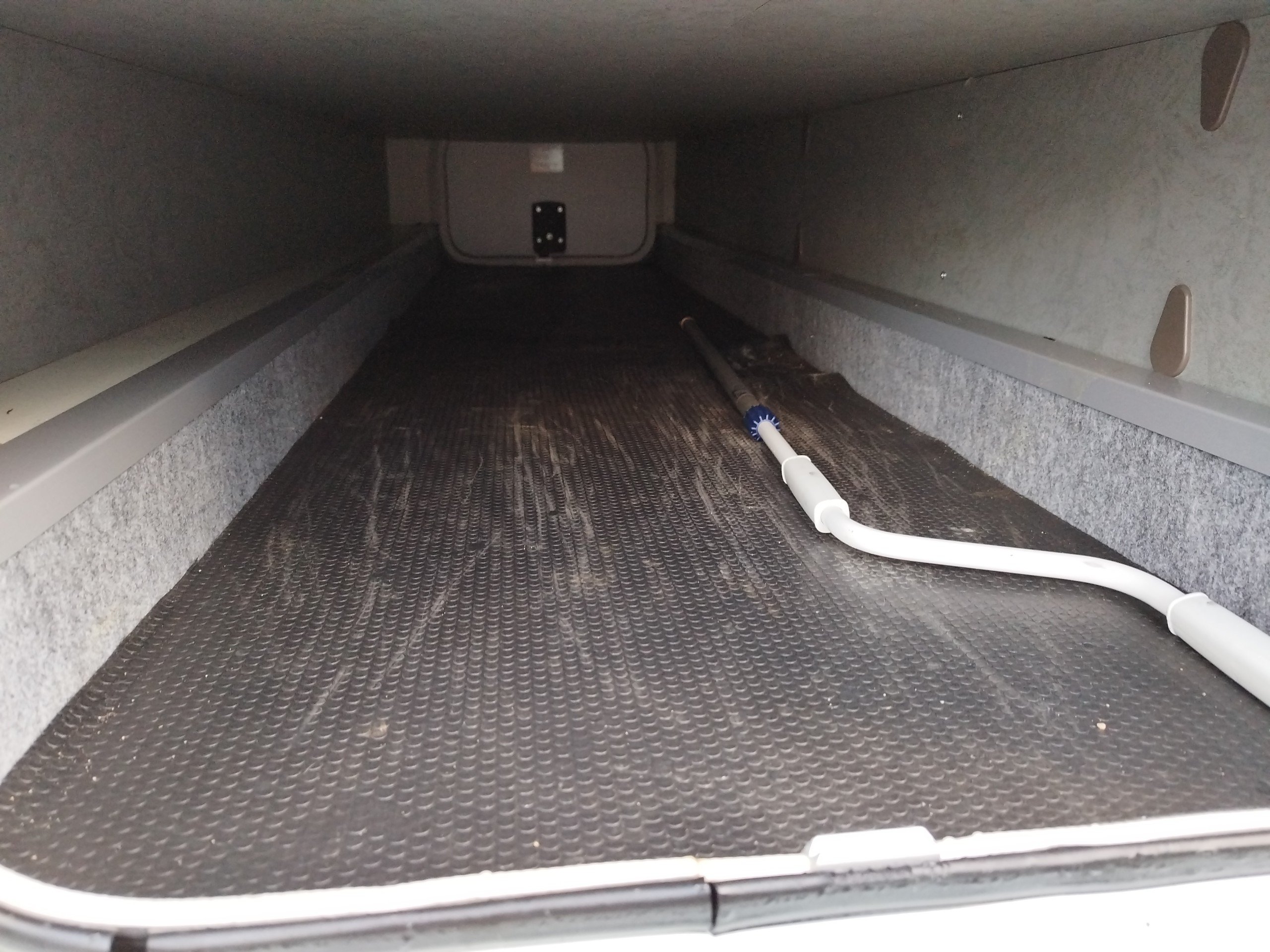 Forward of the washroom is the bedroom this is made up of 2 fixed single beds both with decent storage underneath and both accessible from outside as well as in. The bedroom has over head lockers and roll back storage each over head. There is also a place for the TV which can be stored away when not in use.