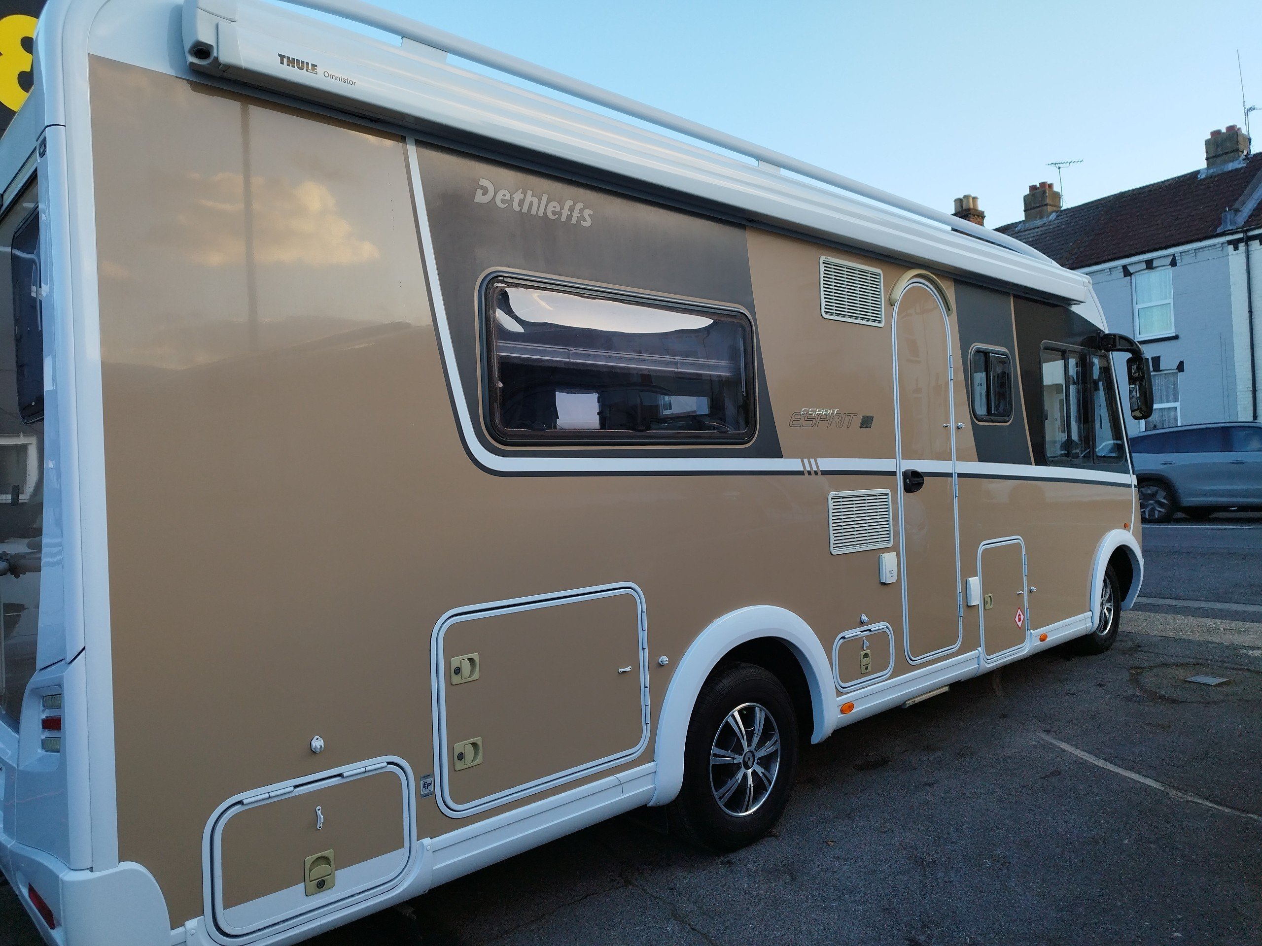 Automatic 2016 A-Class Dethleffs Esprit Comfort I7010 4 berth luxury motorhome based on the optional 3ltr Fiat Ducato diesel chassis covering just 18710 miles from new.This motothome has a gross weight of 4250kg so will require a C1 licence to drive but on the plud side the road tax is cheaper.