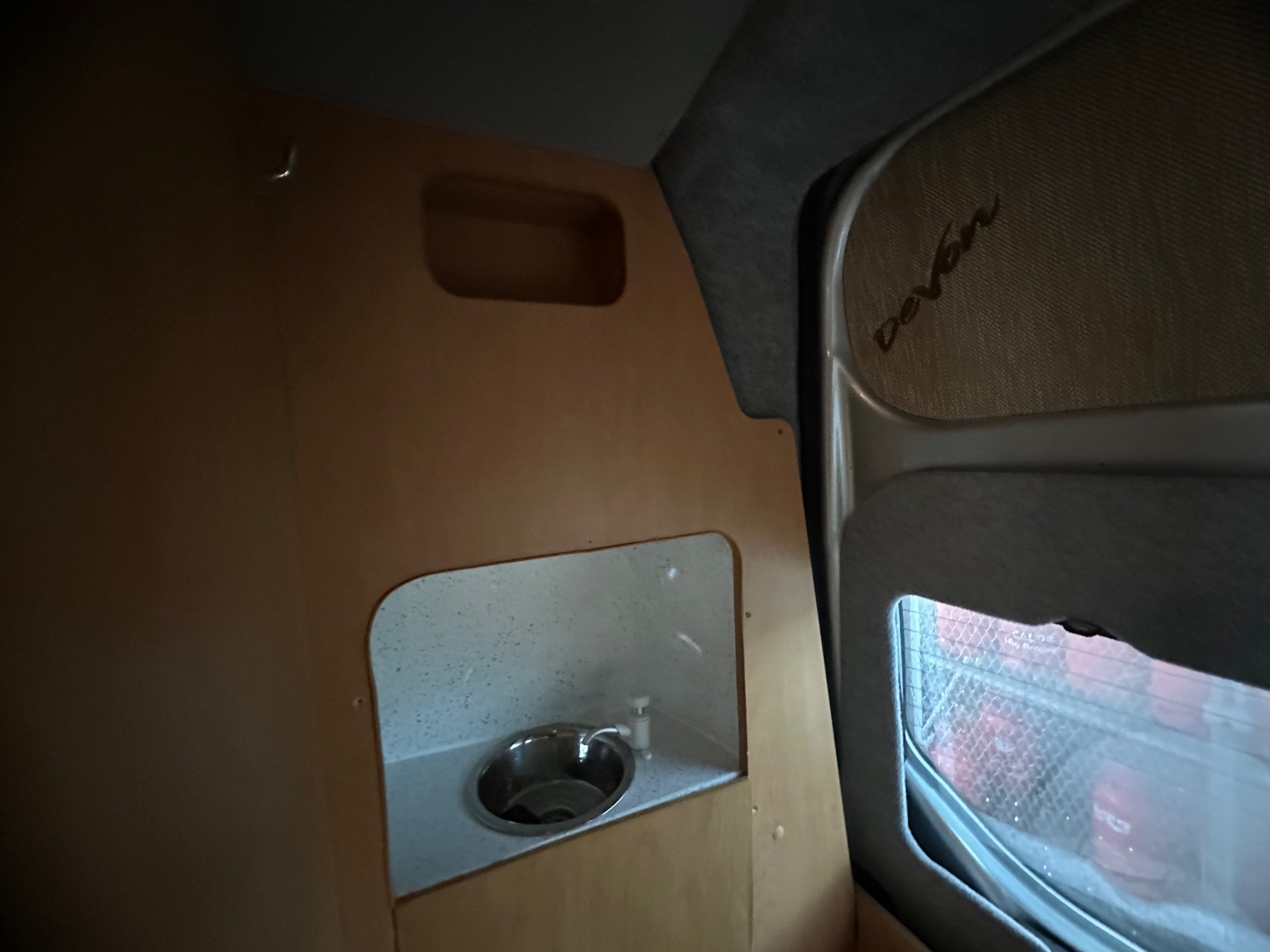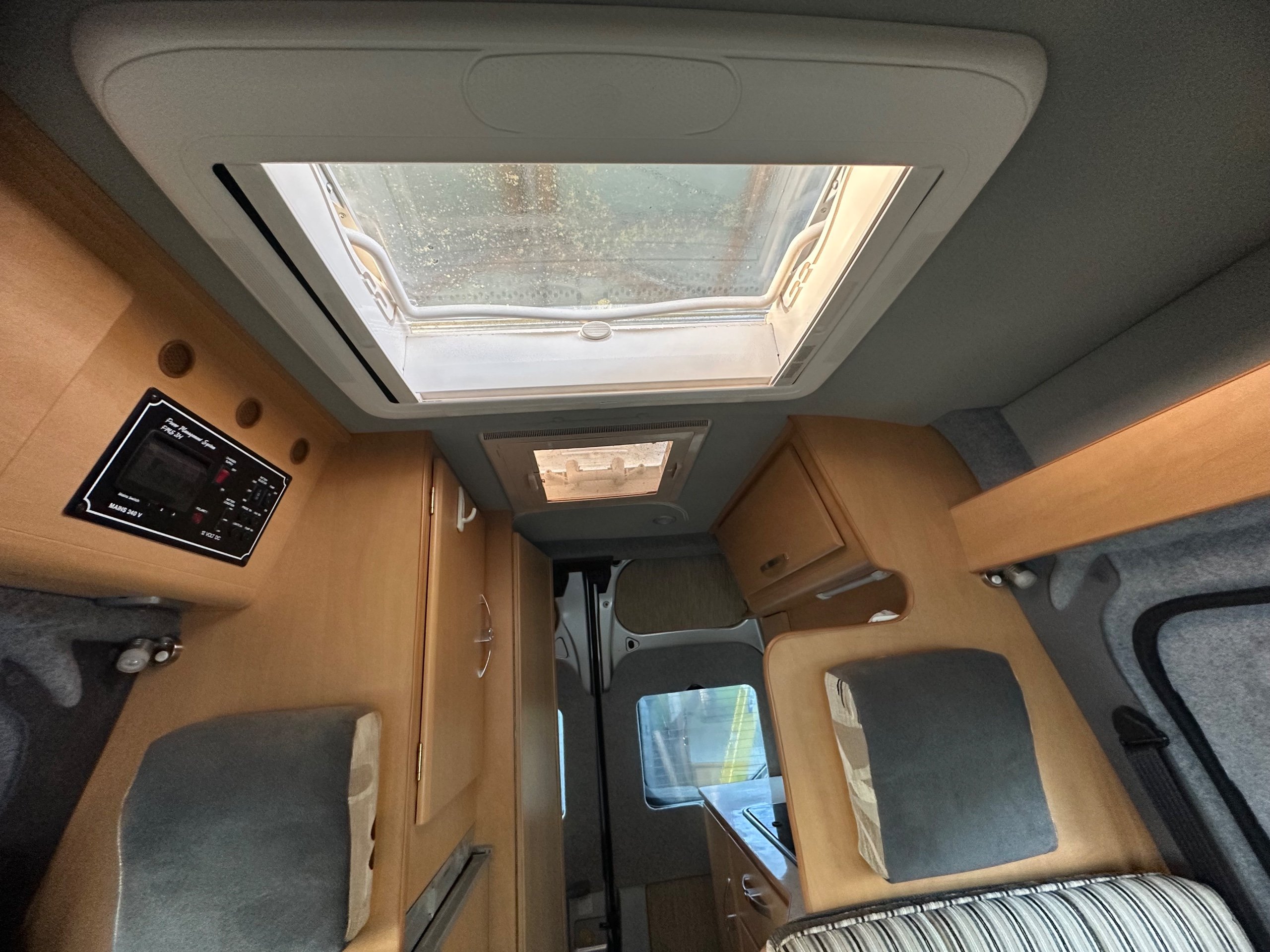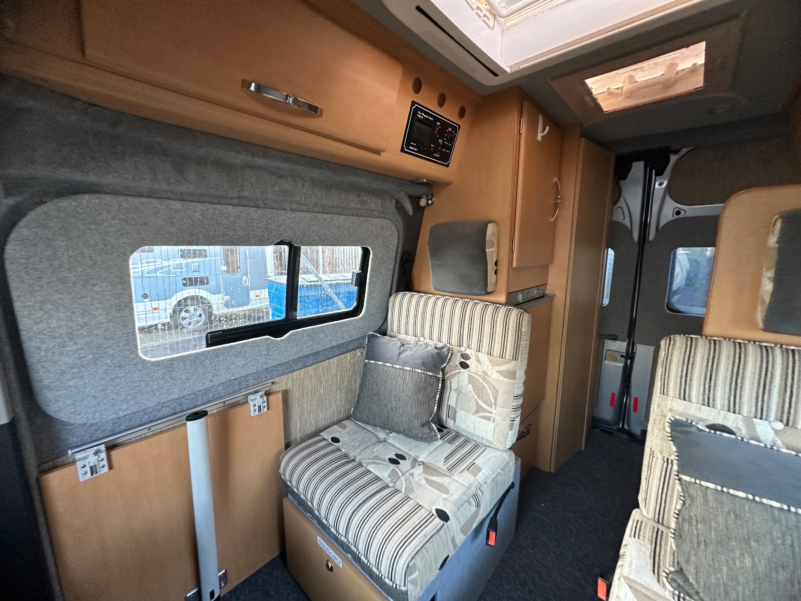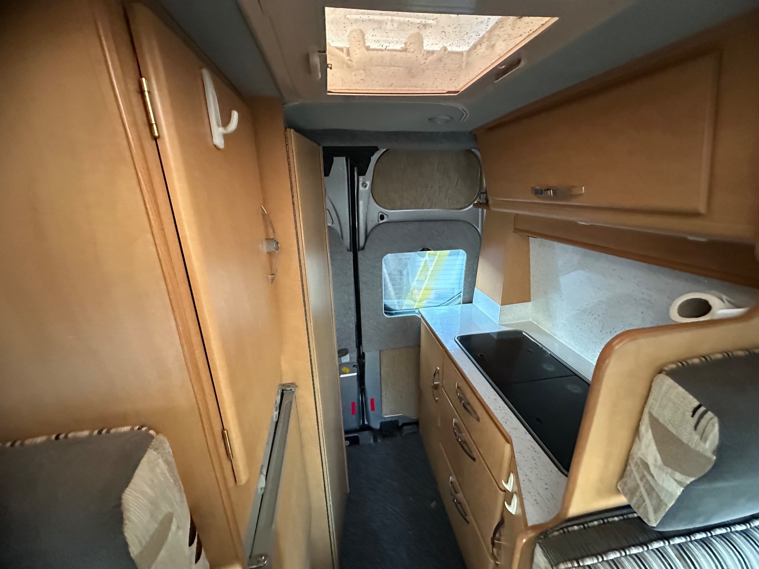 To the front is the lounge this makes into 2 single bed makes it much easier for getting up for the toilet in the night as you can just swing your legs around. You could of course leave the offisde bench down when lounging if you chose, this motorhome caravan also has the added benefit of a total of 4 traveling seat belts, great for taking friends/ family out for the day. This vehicle is in lovely condition inside and out.