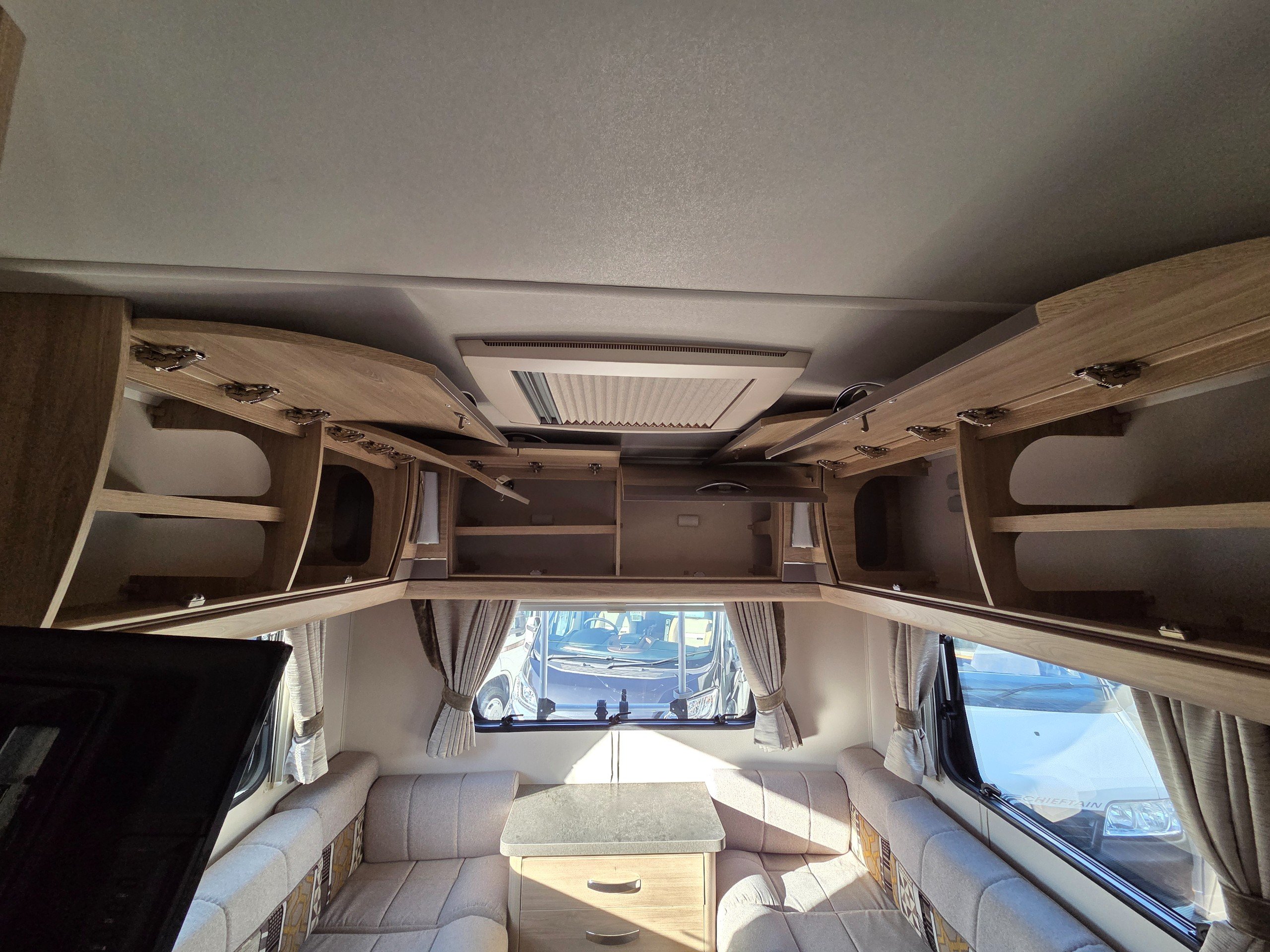 The rear lounge being a large one can be slept in as 2 singles or a double which great depending who you to take. There is the options drawers currently in the middle that lifts out and can then the standard cushions be fitted in if you prefer it this way too. Over the lounge is over head cupboards so you alway have space for your gear along with space to put your belongings underneath the seats. There is a TV ready fitted on the wall in the rear lounge too.