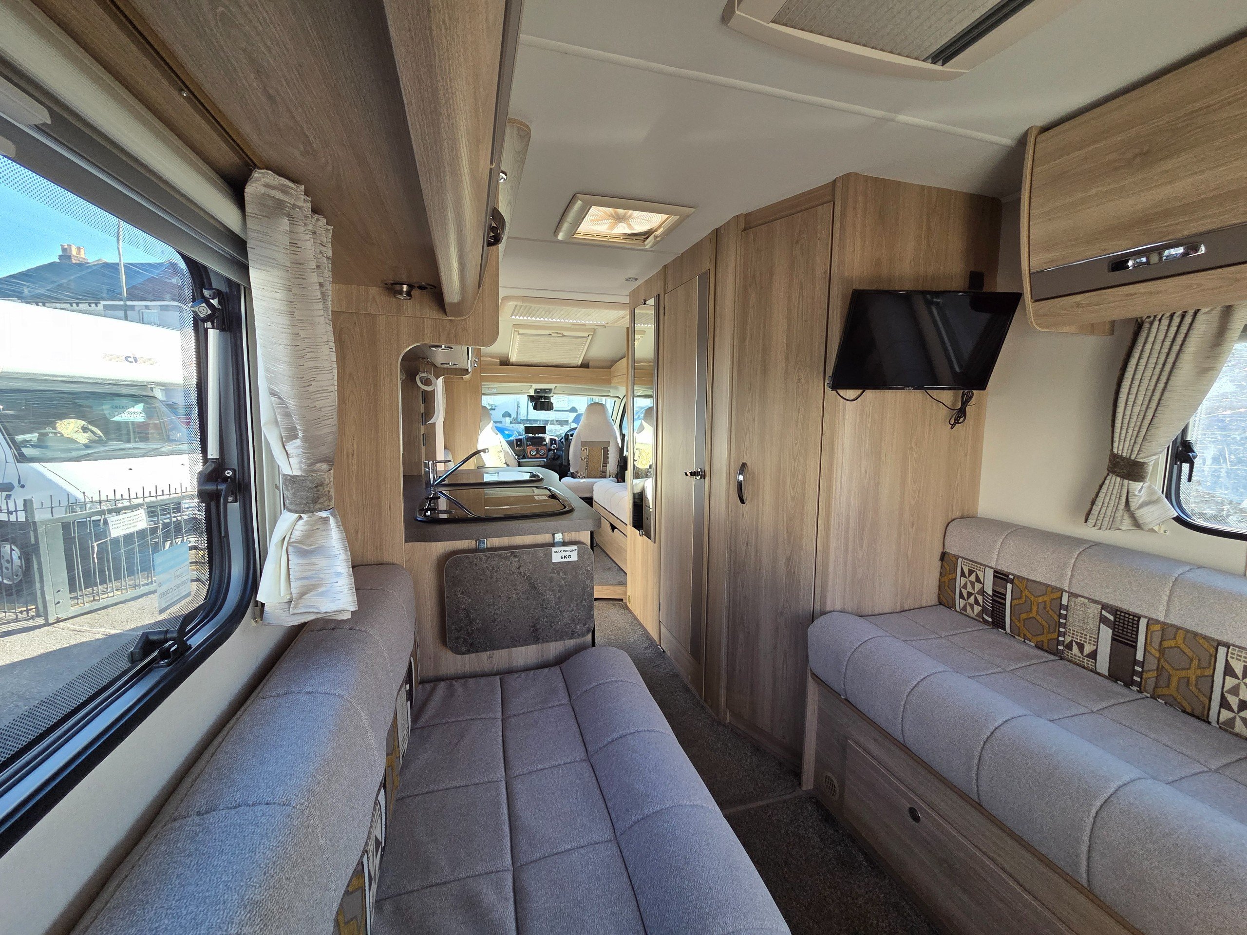 2018 Elddis Autoquest 195 (Evolution Dealer special) 4 berth motorhome based on the Peugeot Boxer 2ltr diesel chassis covering 24534 miles from new. This motorhome has a gross weight of 3500kg so can be driven on a standard car licence.