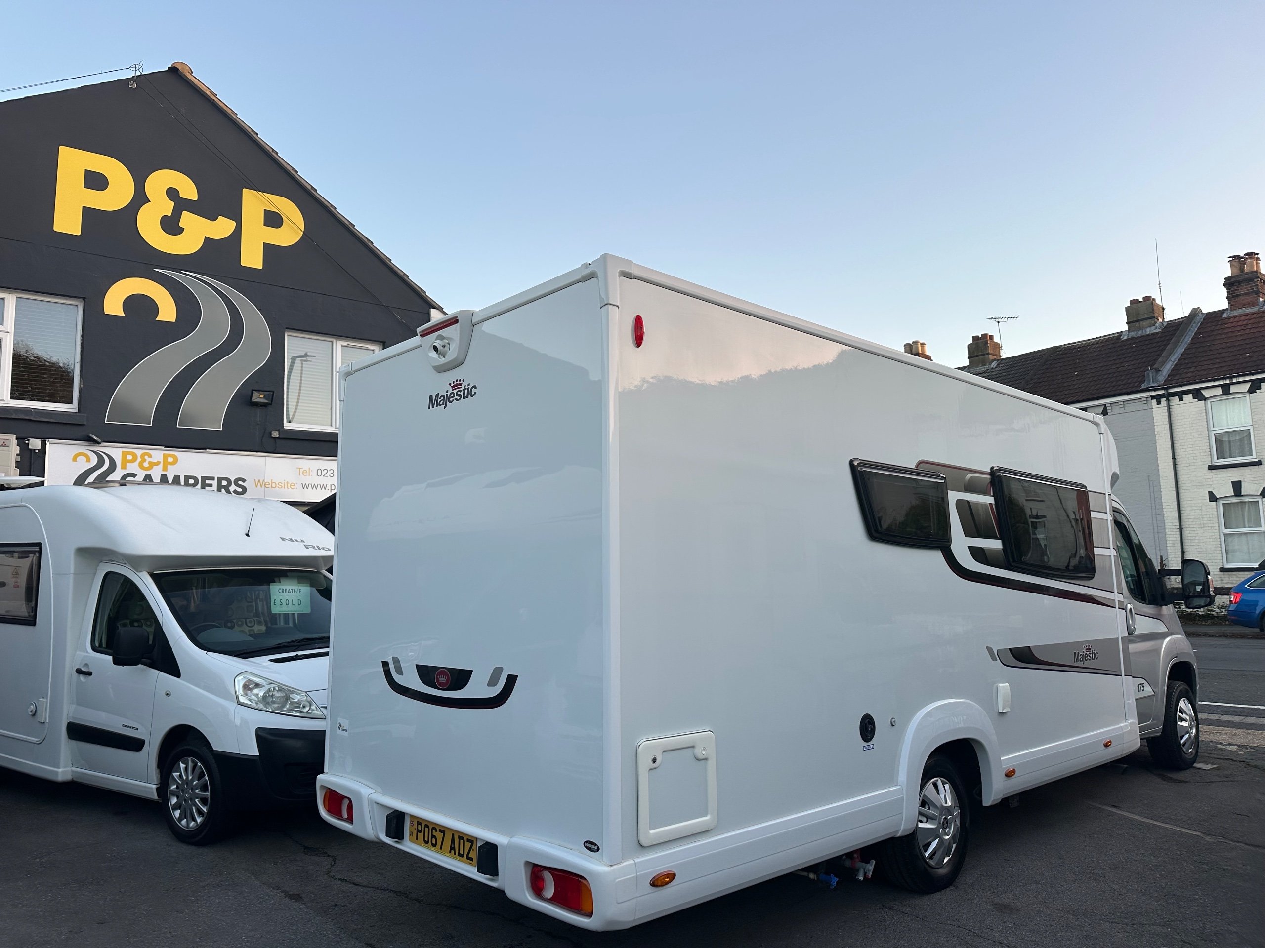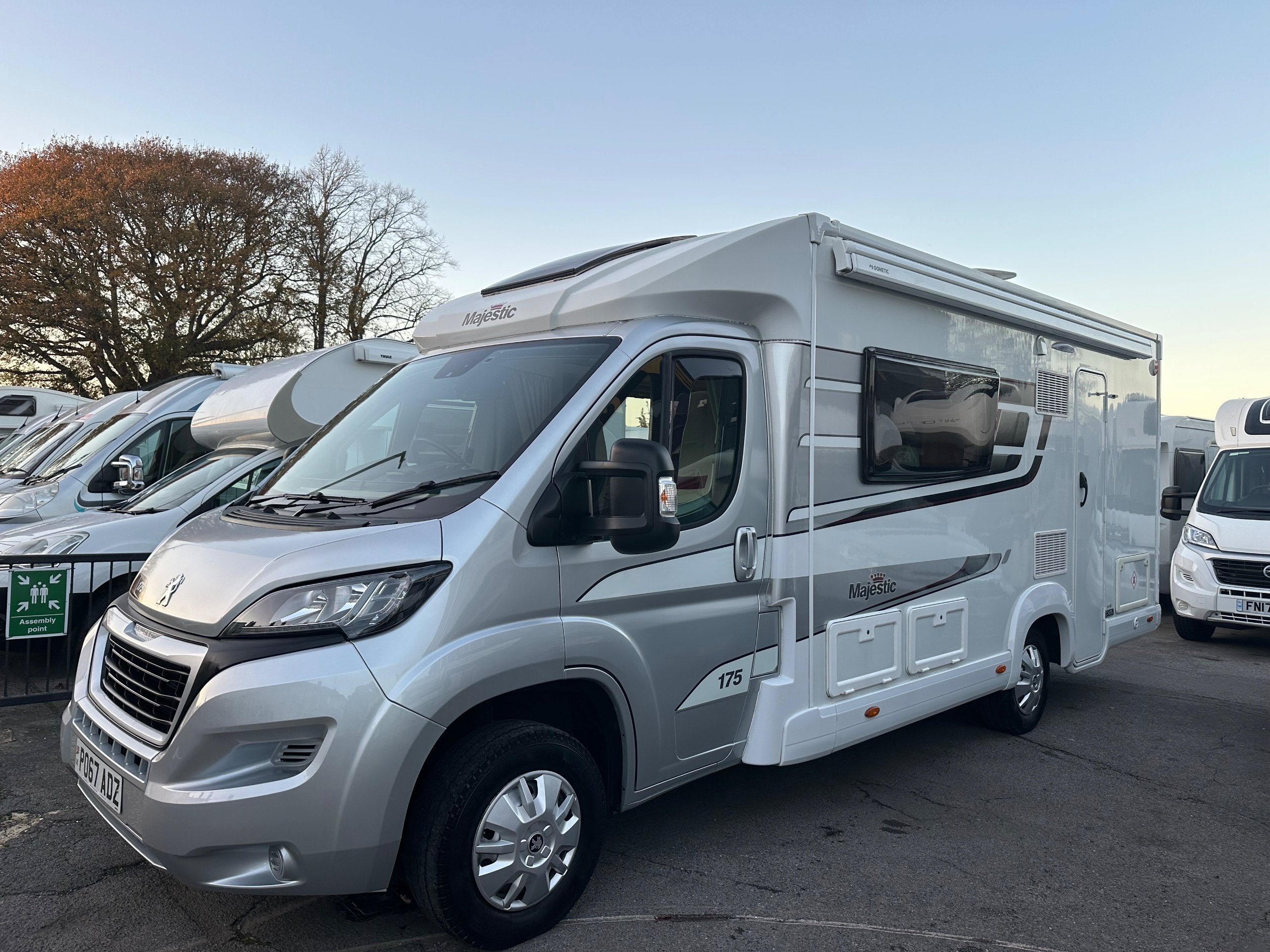 ULEZ Compliant. 2017 Elddis Majestic 175 2 berth motorhome based on the Peugeot Boxer Blue HDI 2ltr diesel chassis covering 25239 miles from new 6 speed manual transmisson with air con and factory fitted cruise control. This motorhome can be driven on a standard B car licence as the gross weight is 3500kg