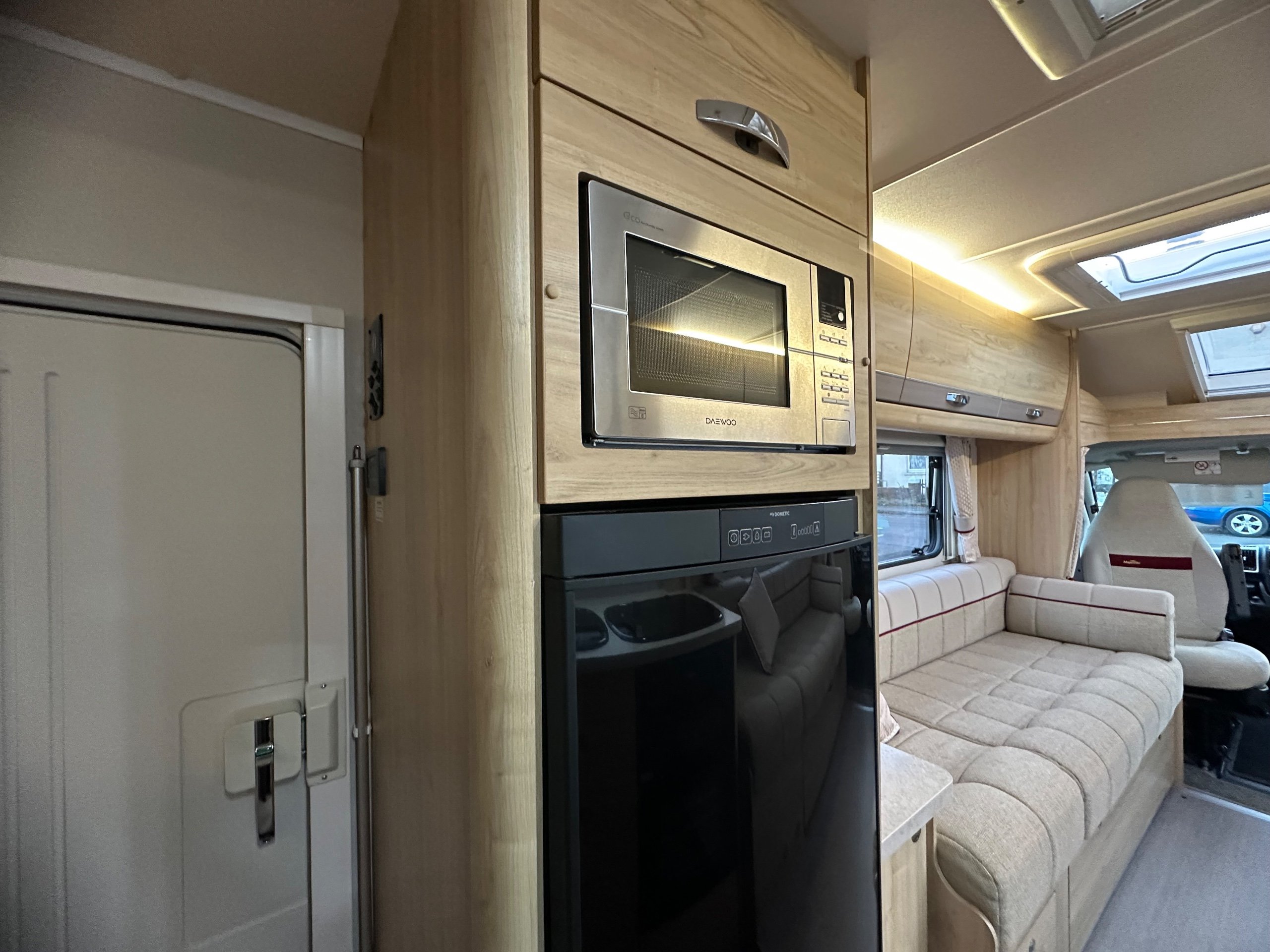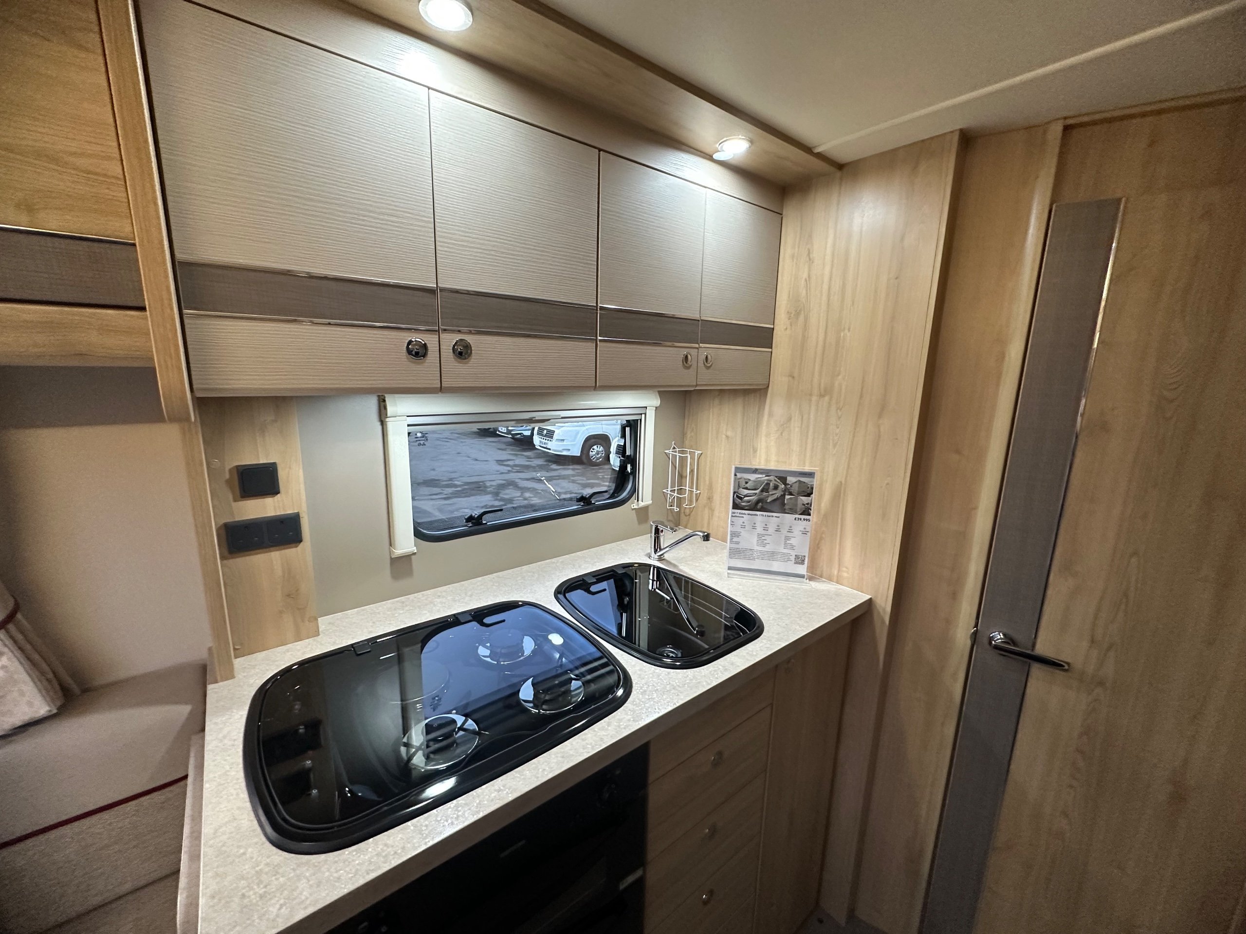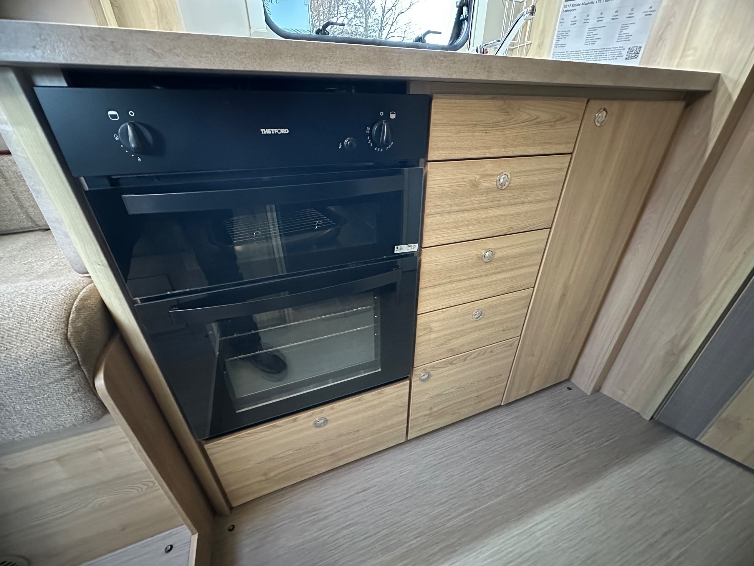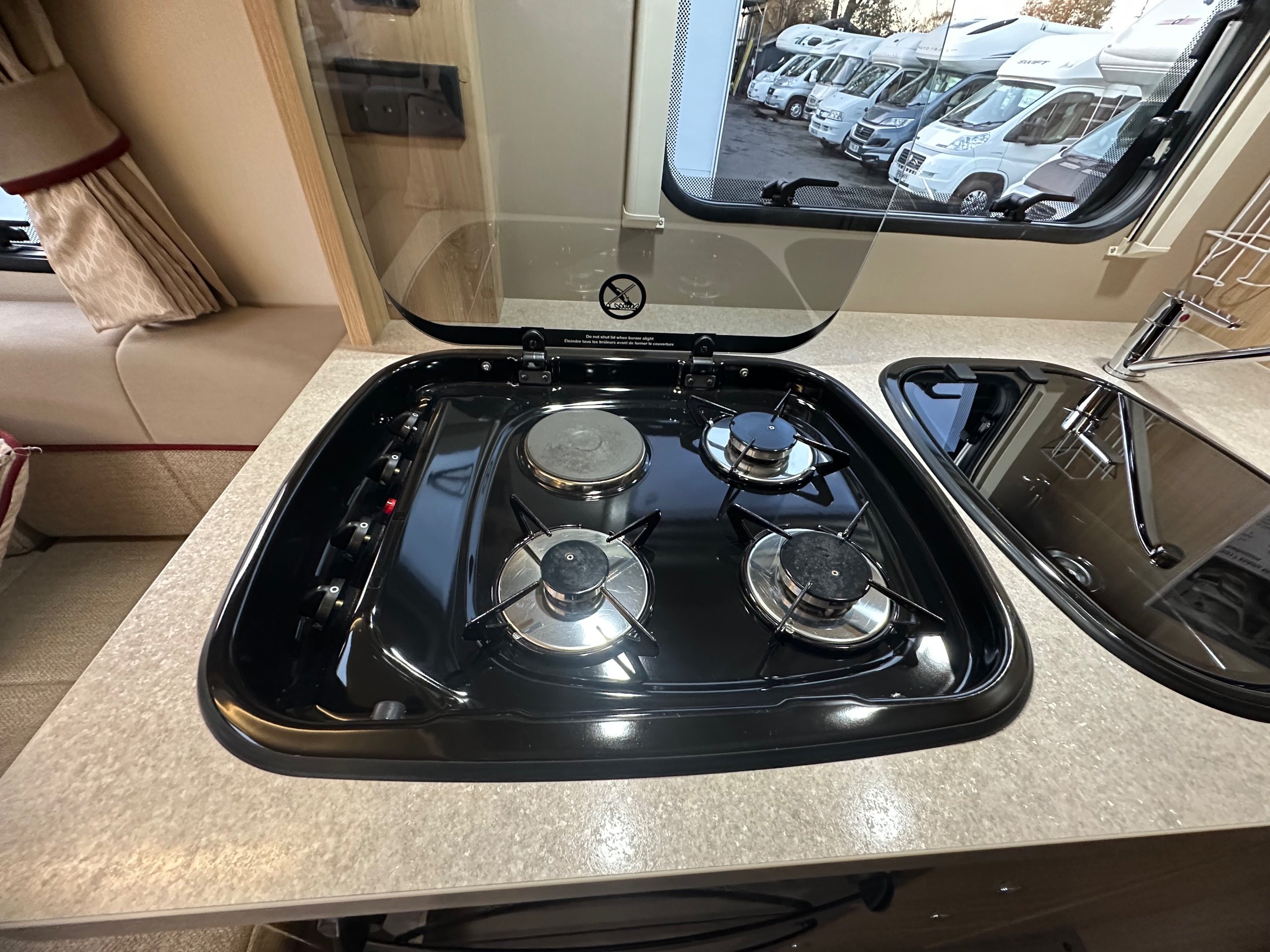 To the front of the washroom is the kitchen once again this is large and has all you could ask from kitchen with a 3-way fridge with freezer compartment, plenty of storage, microwave, hob which has 3 gas burners and an electric hob, separate grill and separate oven. Plenty of worktop space great for cooking up a storm.