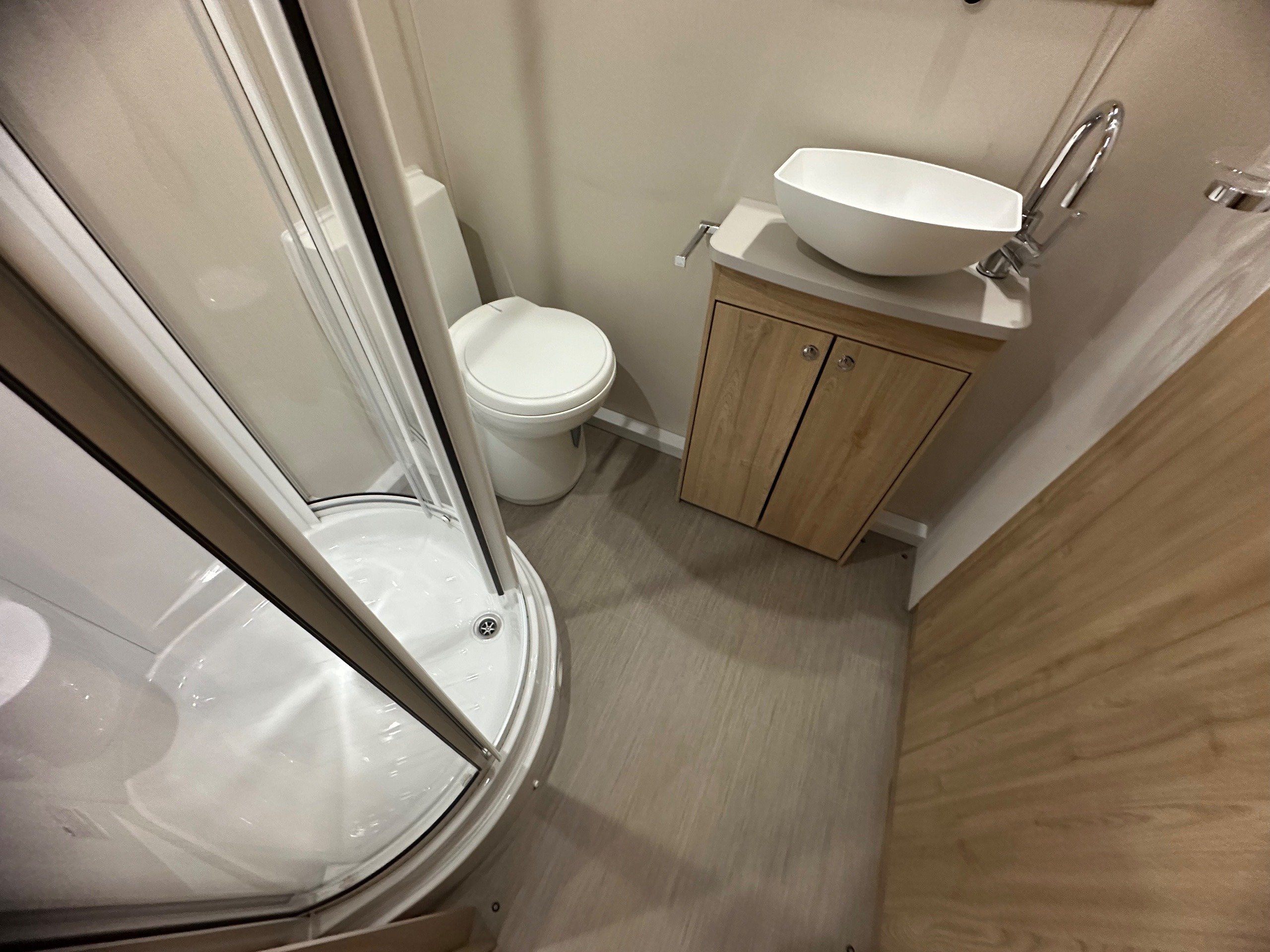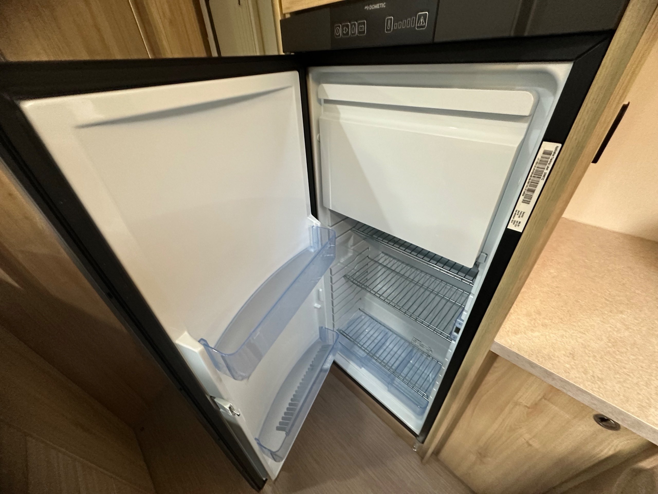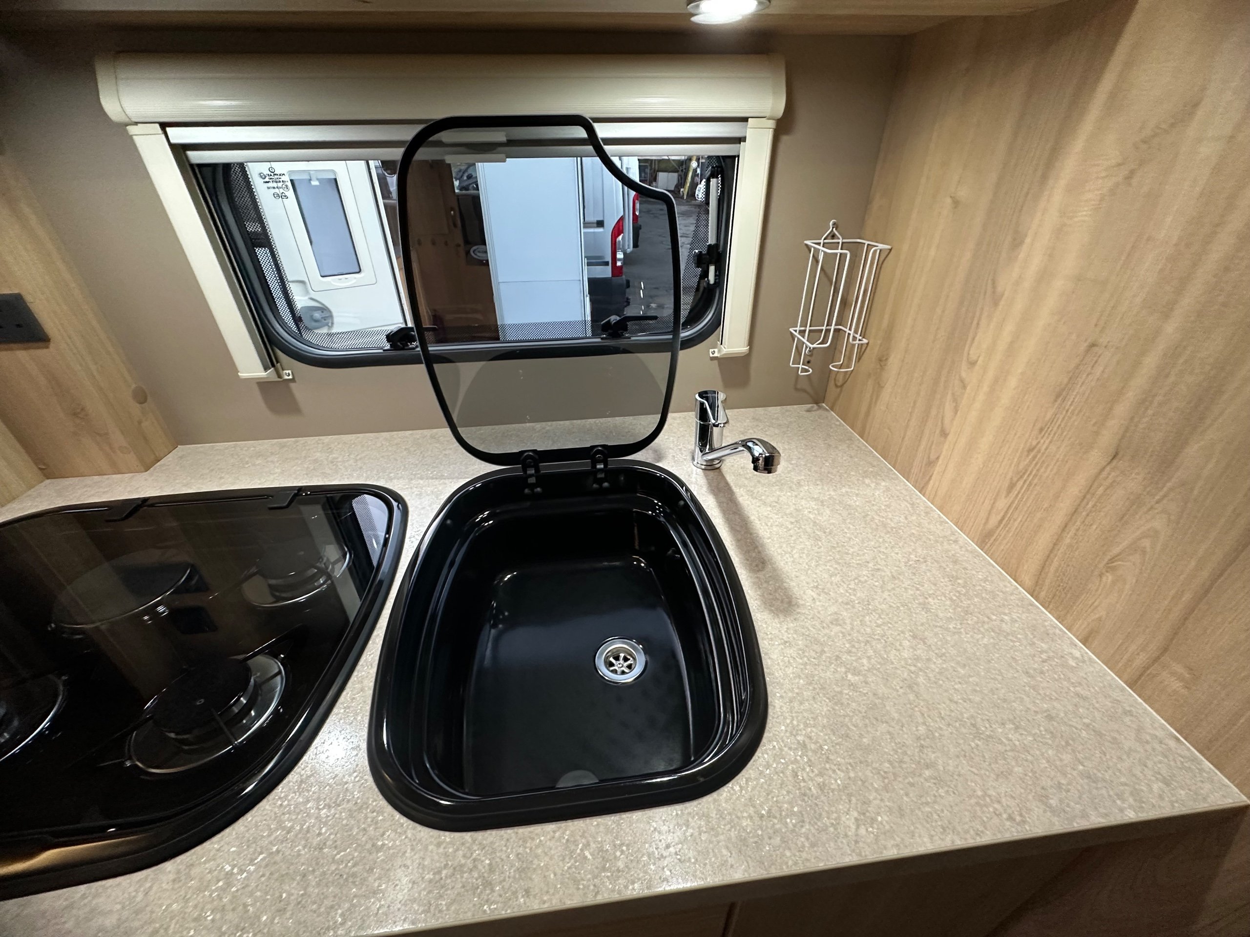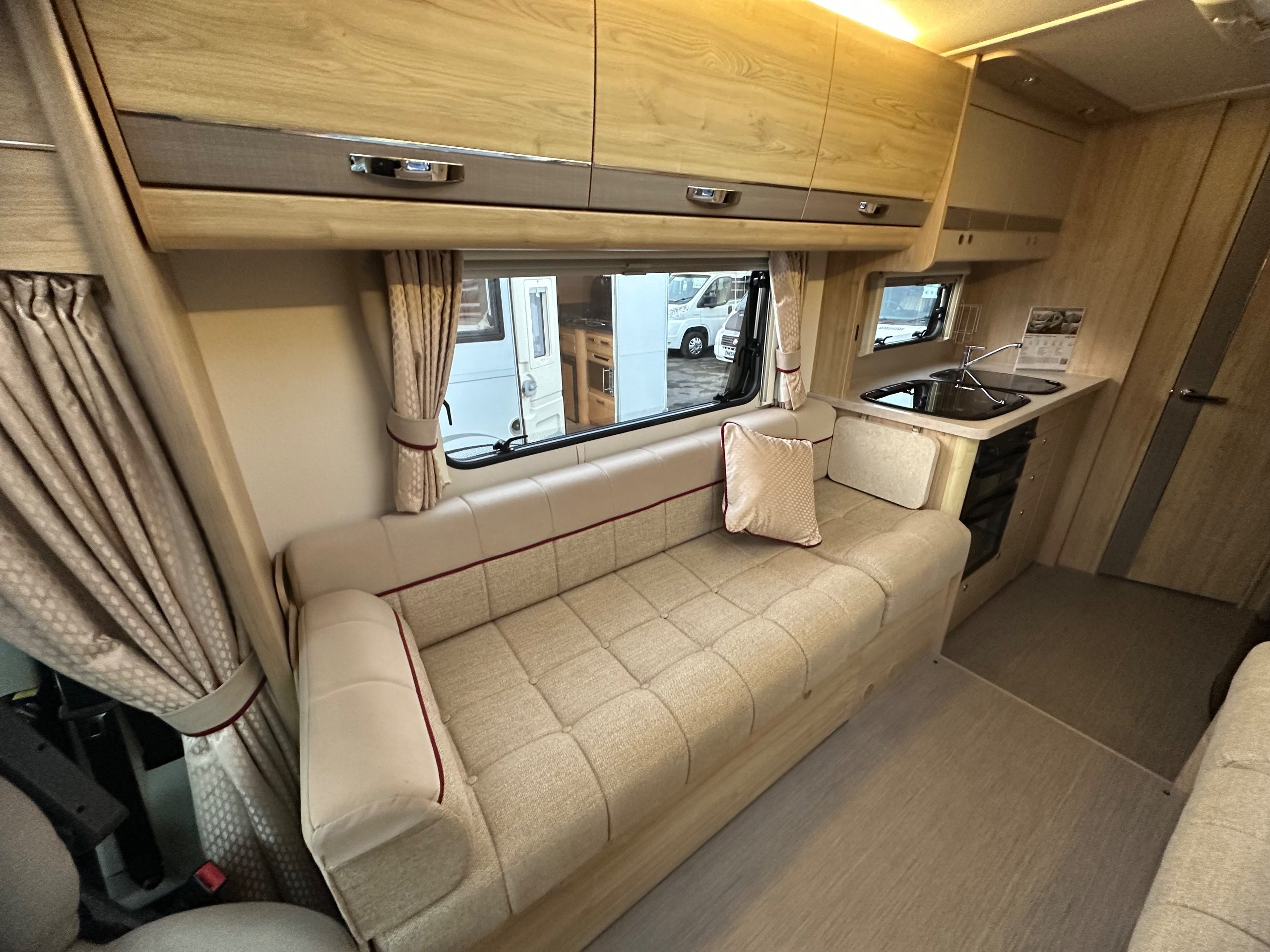 To the front of the washroom is the kitchen once again this is large and has all you could ask from kitchen with a 3-way fridge with freezer compartment, plenty of storage, microwave, hob which has 3 gas burners and an electric hob, separate grill and separate oven. Plenty of worktop space great for cooking up a storm.