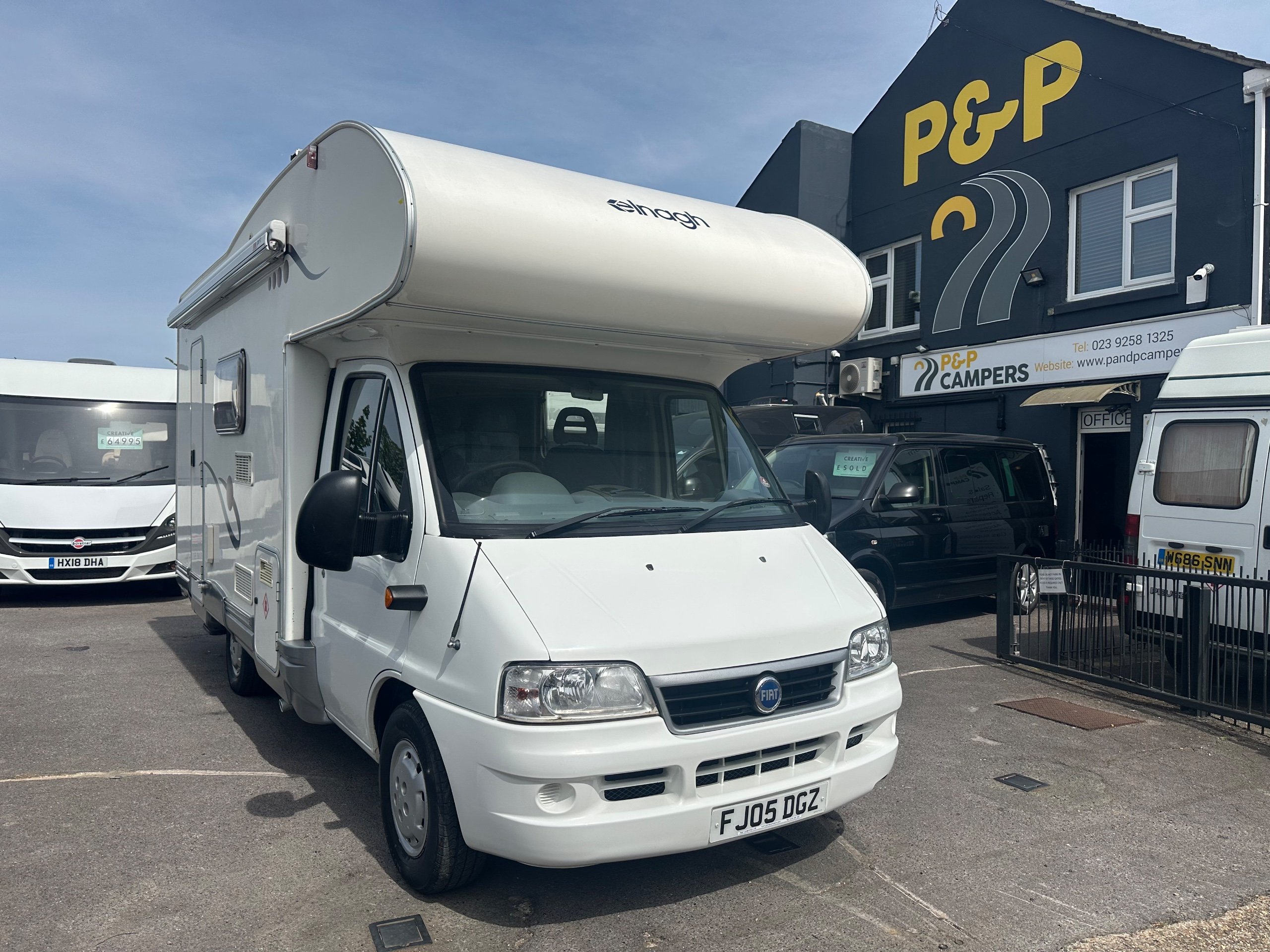 2005 Elnagh Clipper 6 berth motorhome great starter family motorhome based on the 2ltr diesel Fiat Ducato covering 56713 miles from new. With a gross weight of 3400kg this motorhome can be driven on a standard car licence great if you wish to share your van with the kids so they can take the grandchildren away.