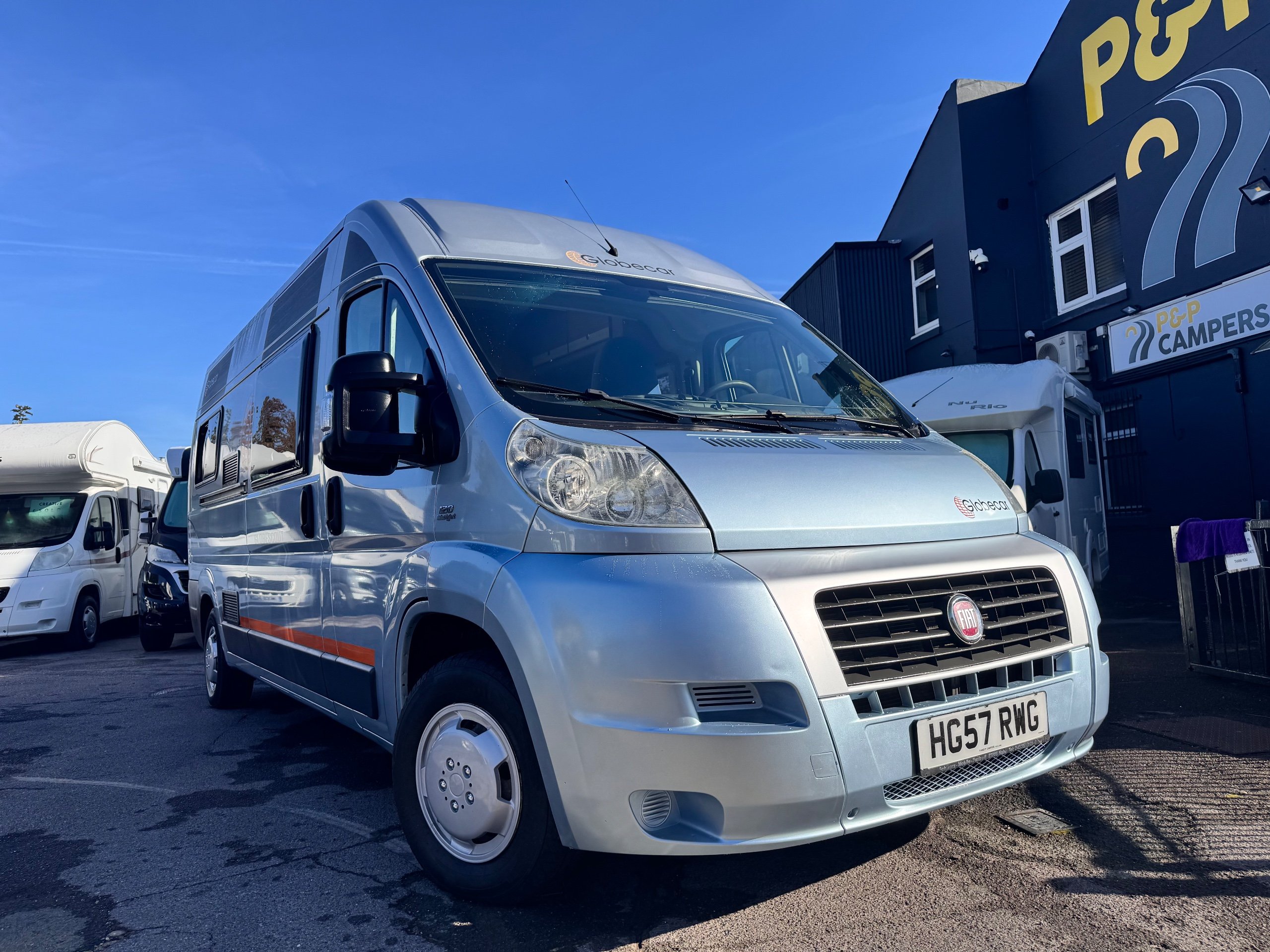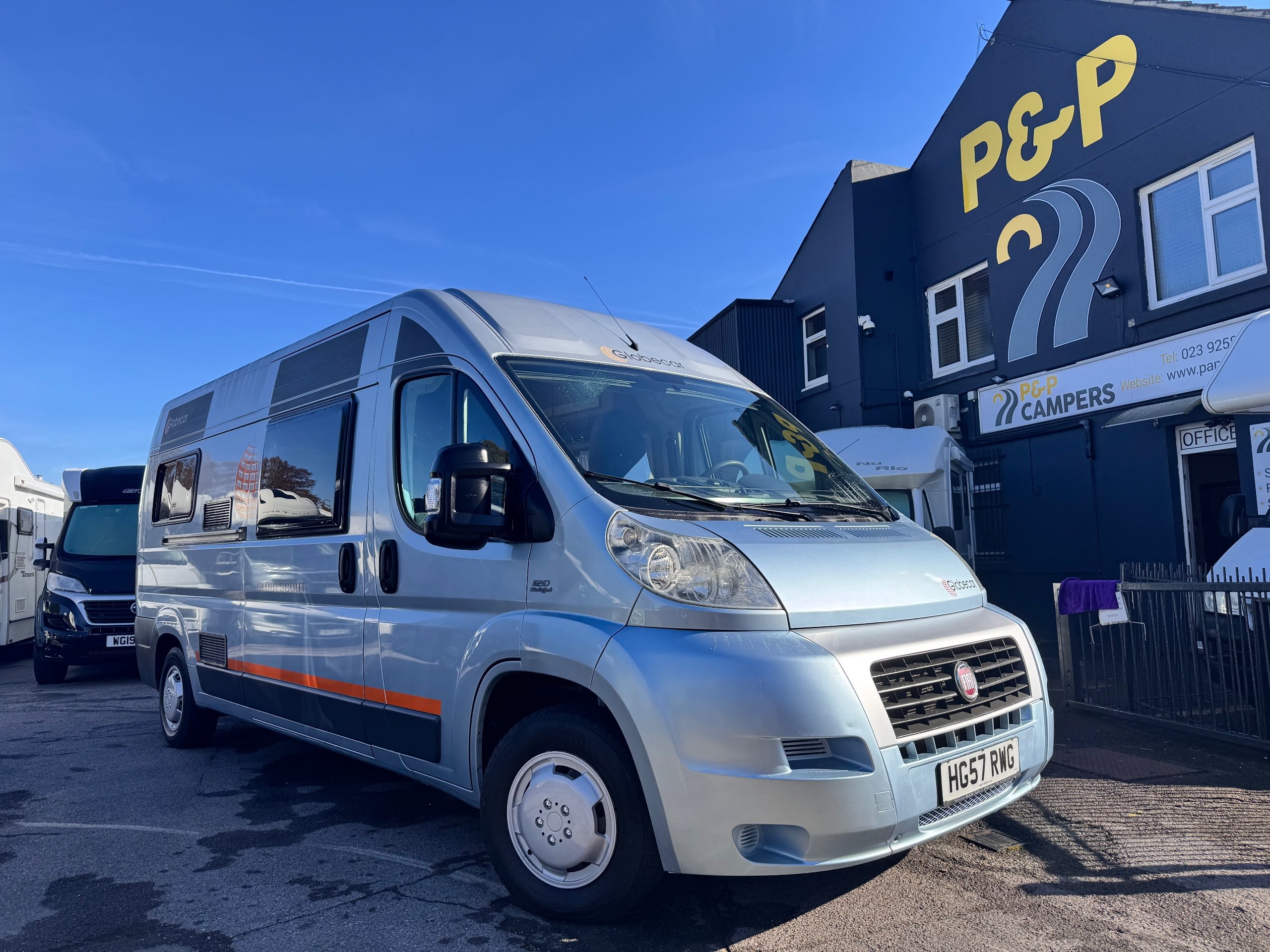 LHD 2007 Globecar Globescout 2 berth motorhome based on the 2.3 Fiat Ducato 130bhp diesel chassis with a 6 speed manual with factory fitted cruise control and cab air con covering just 141721 miles from new. This motorhome can be driven on a standard car licence.