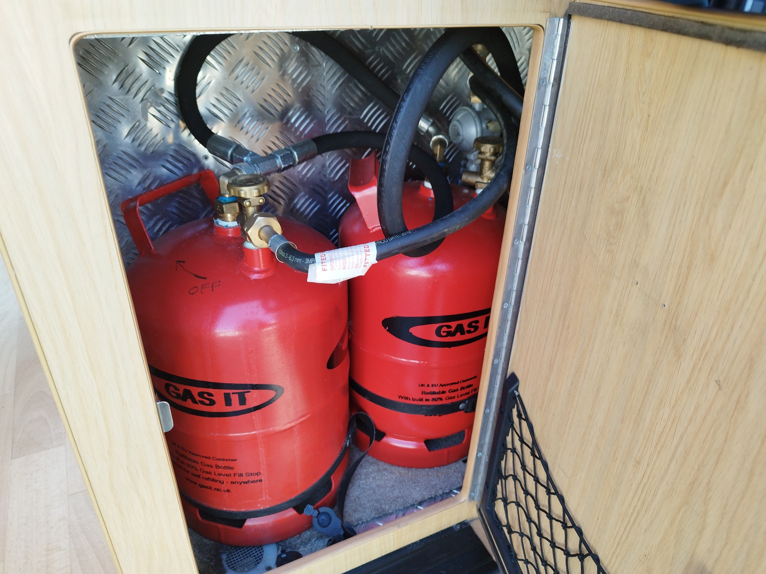 This motorhome also benefits from having a twin refillable gas bottles with filler routed to the outside as it should be.