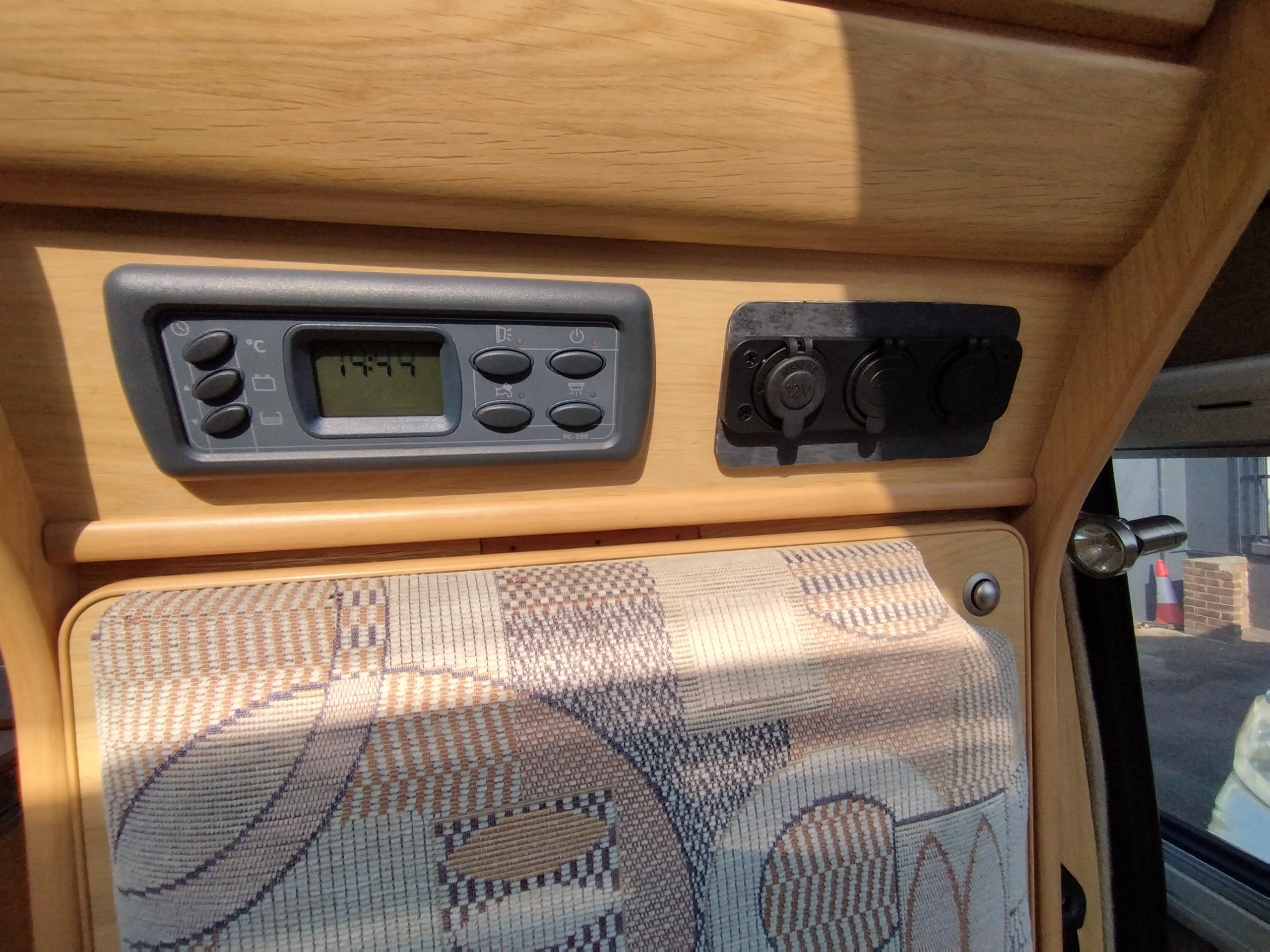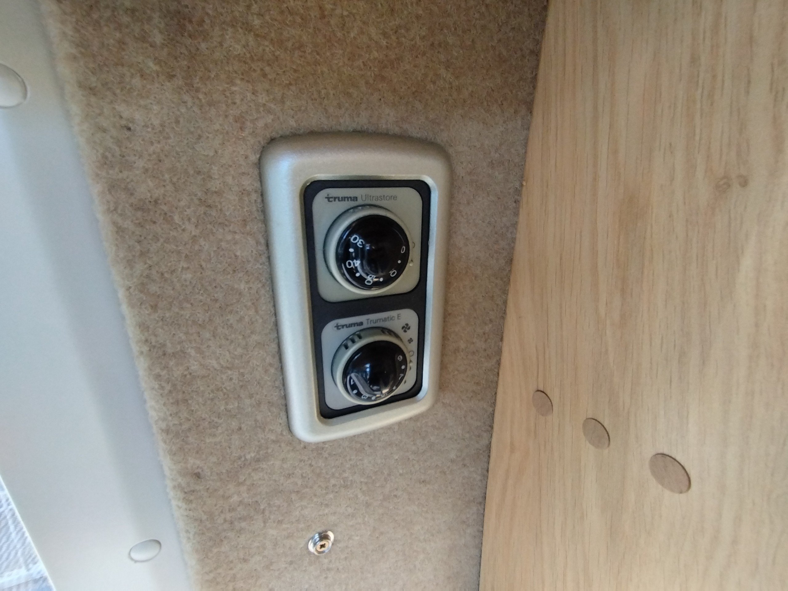 This has a gas powered space heater for those chiller days and hot water via gas and electric. There is an electric step for easy access, twin reversing camera, towbar with electrics, cab air con and cruise control.