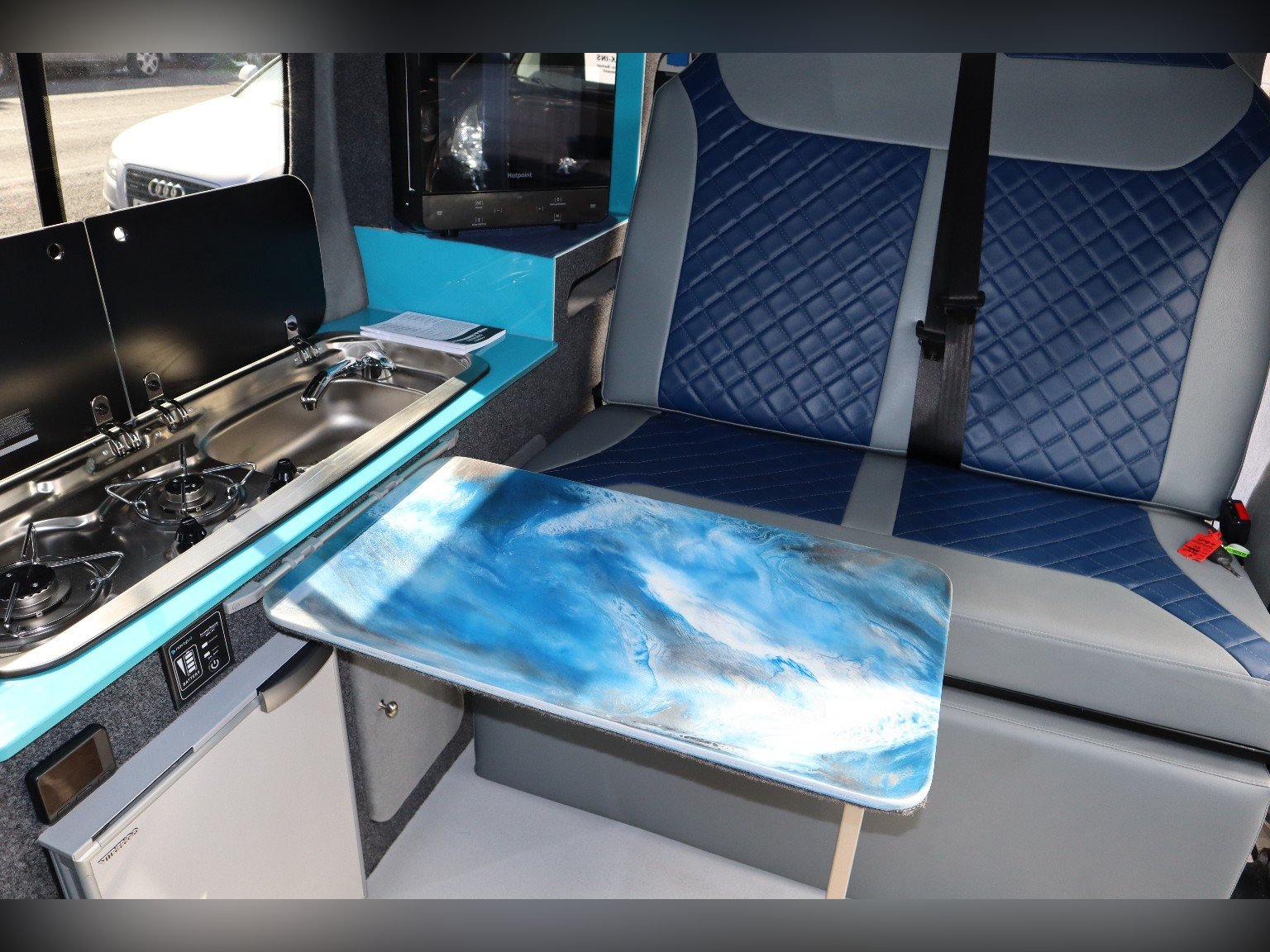 2007 2+2 berth Renault master campervan the chassis is a 2ltr diesel and has covered 82195 miles previously supplied by us. This campervan can be driven on a standard car licence. The layout of this campervan is the standard side conversion with a fold out double bed and also space for 2 up in the pop top. The side conversion has a 2 burner hob, sink both with glass lid for extra work top space when not in use. 12v Commpressor fridge, microwave and inverter. Storage for your gear dotted about the campervan. This campervan will come with a new MOT, service and habitation check. -