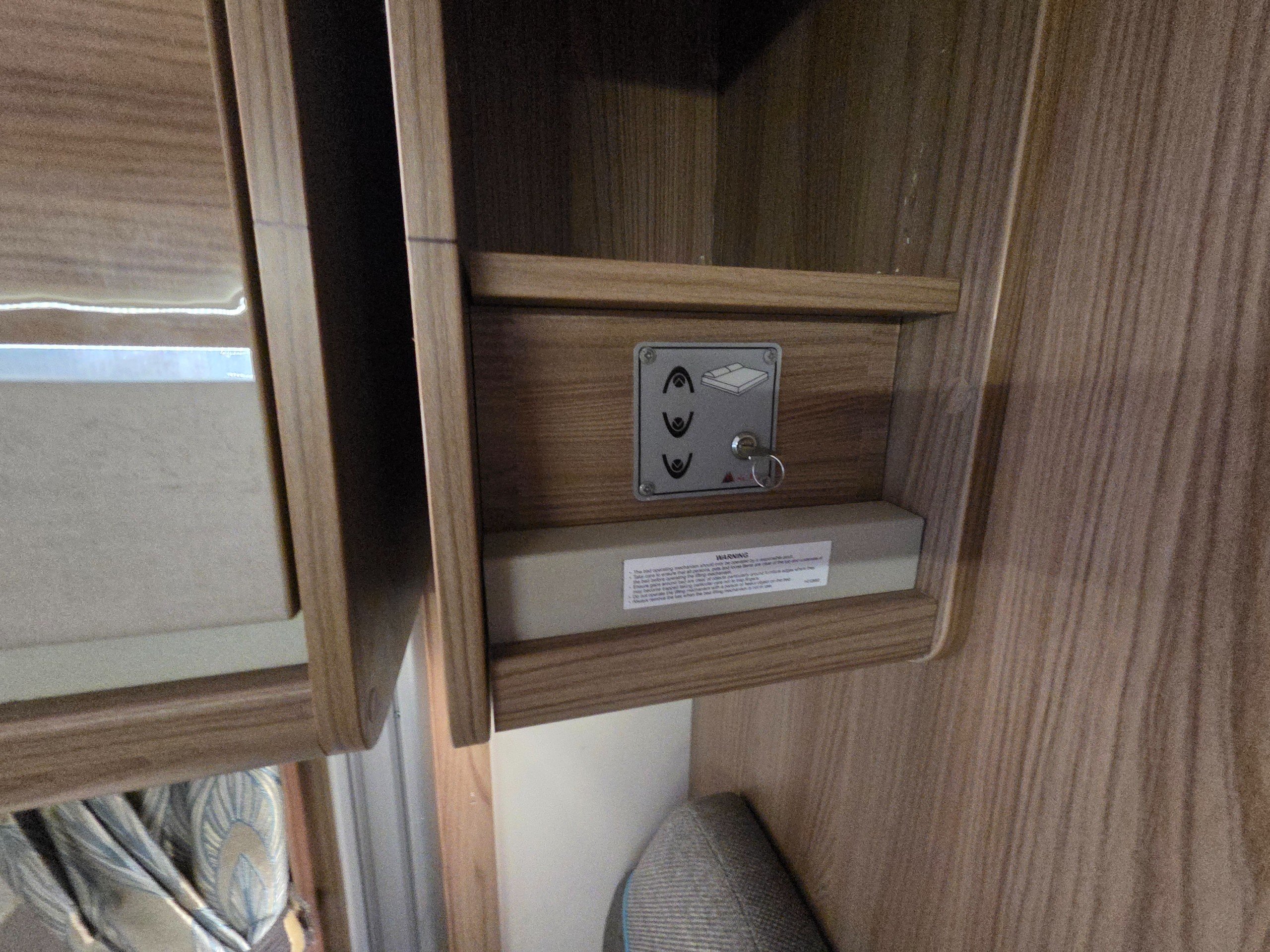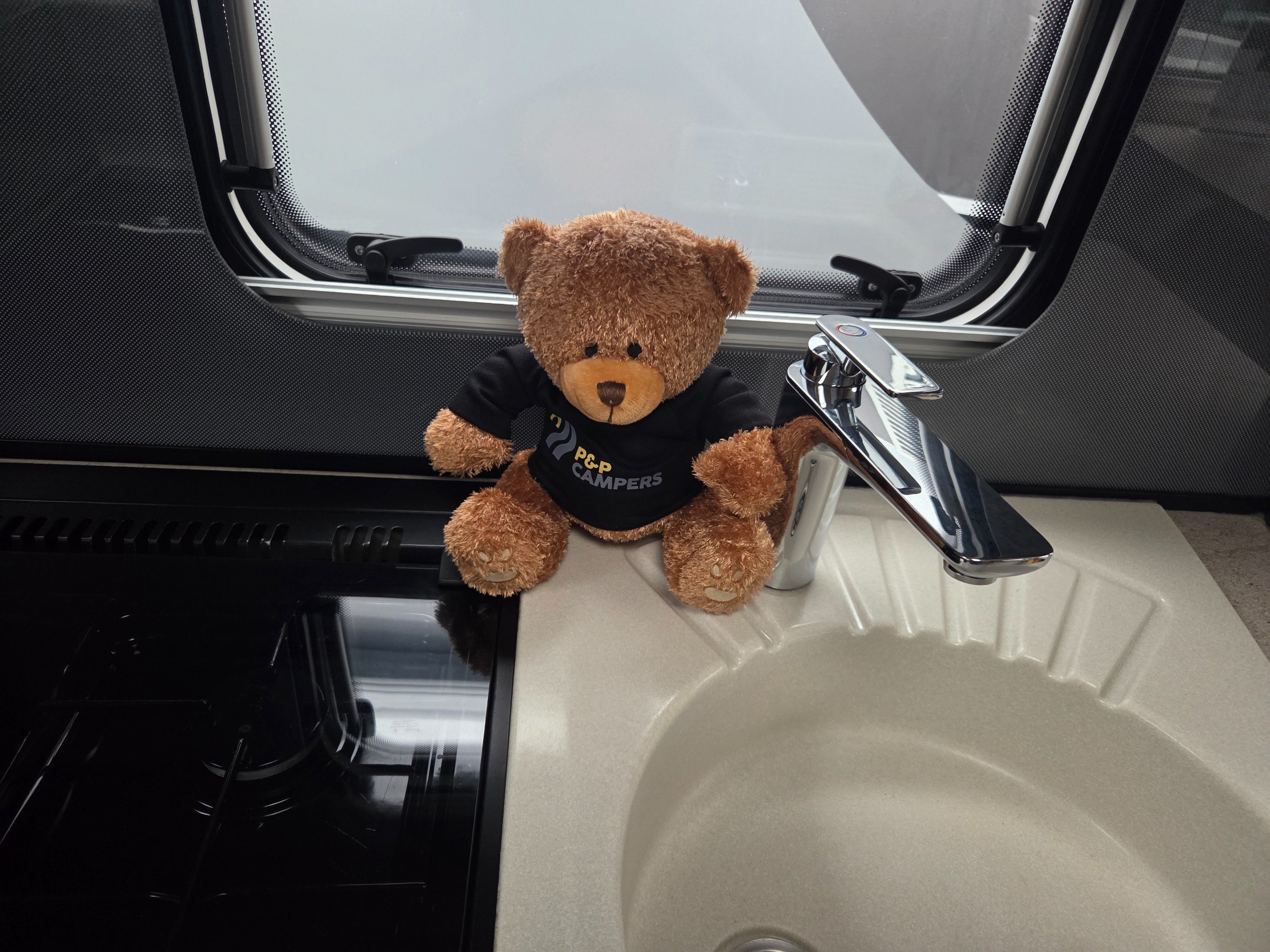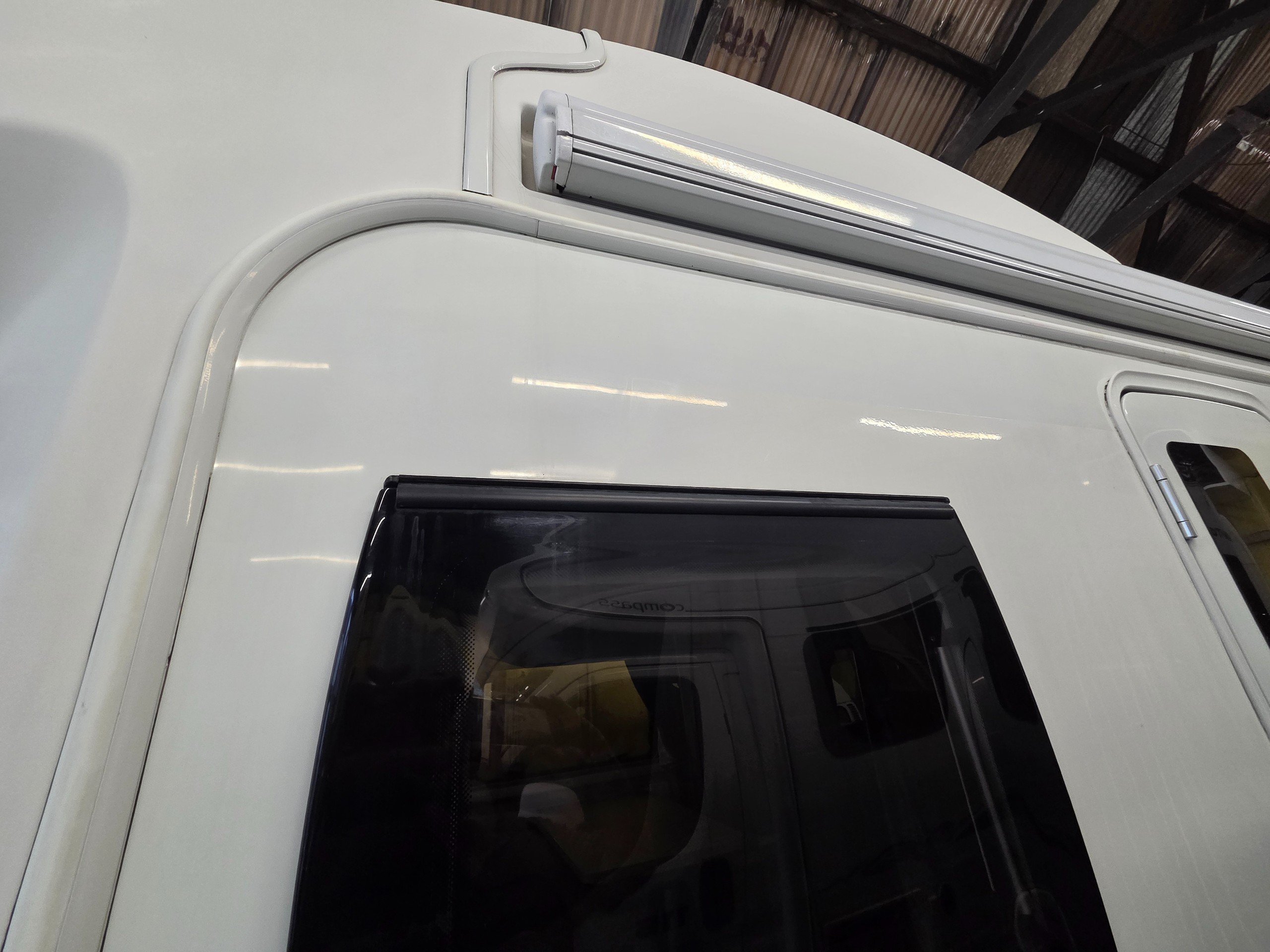 The rear U shaped lounge is a very social space to be. This the ability to be slept in as 2 single beds or a as a double bed which is great. There are wrap around over head cupboards and storage under the seating too which will prove useful, the lounge is open and bright thanks to the 3 large windows which give 180 degree views of your destination. There is a bracket ready fitted for a TV if you wish to take one.