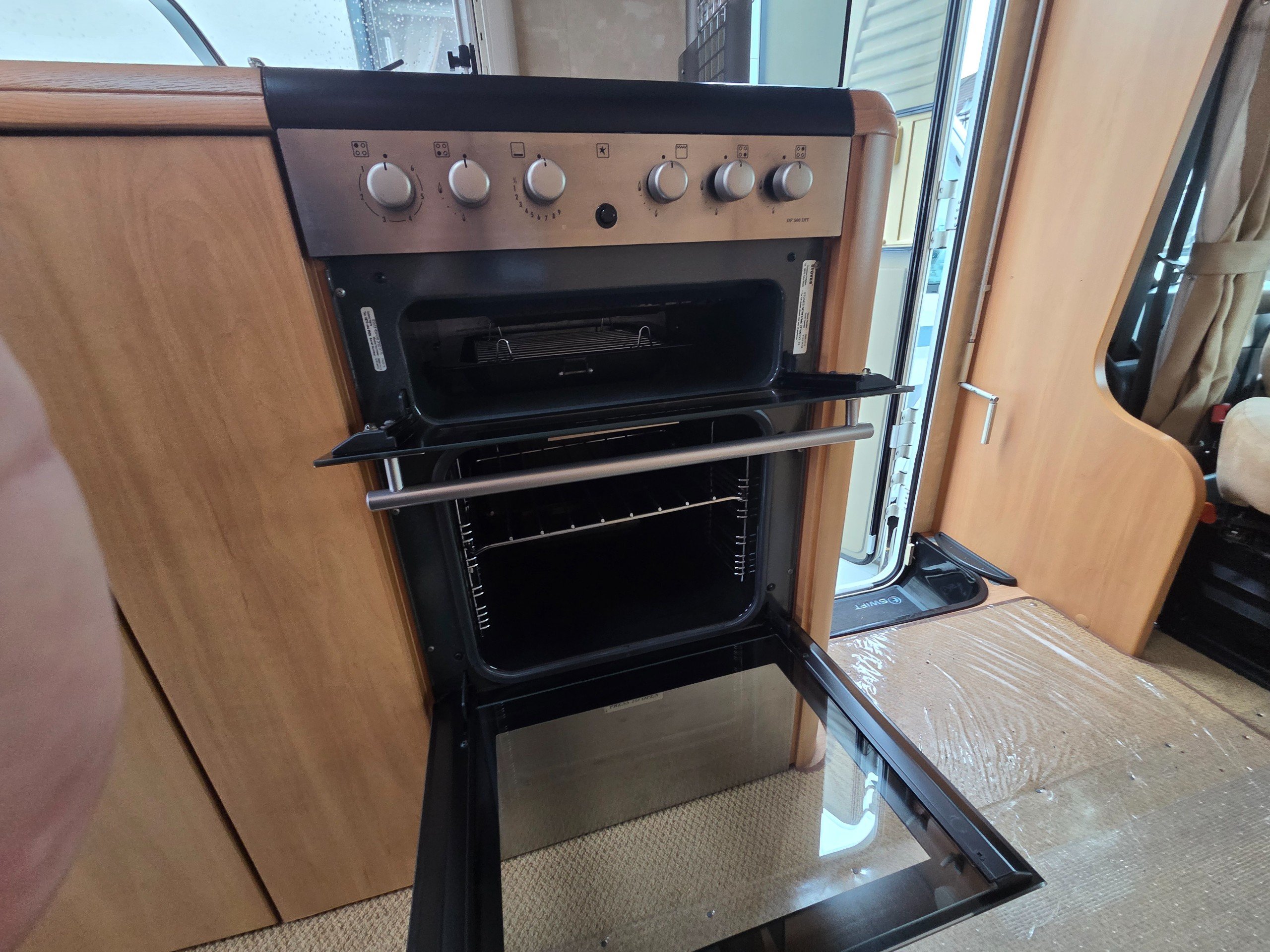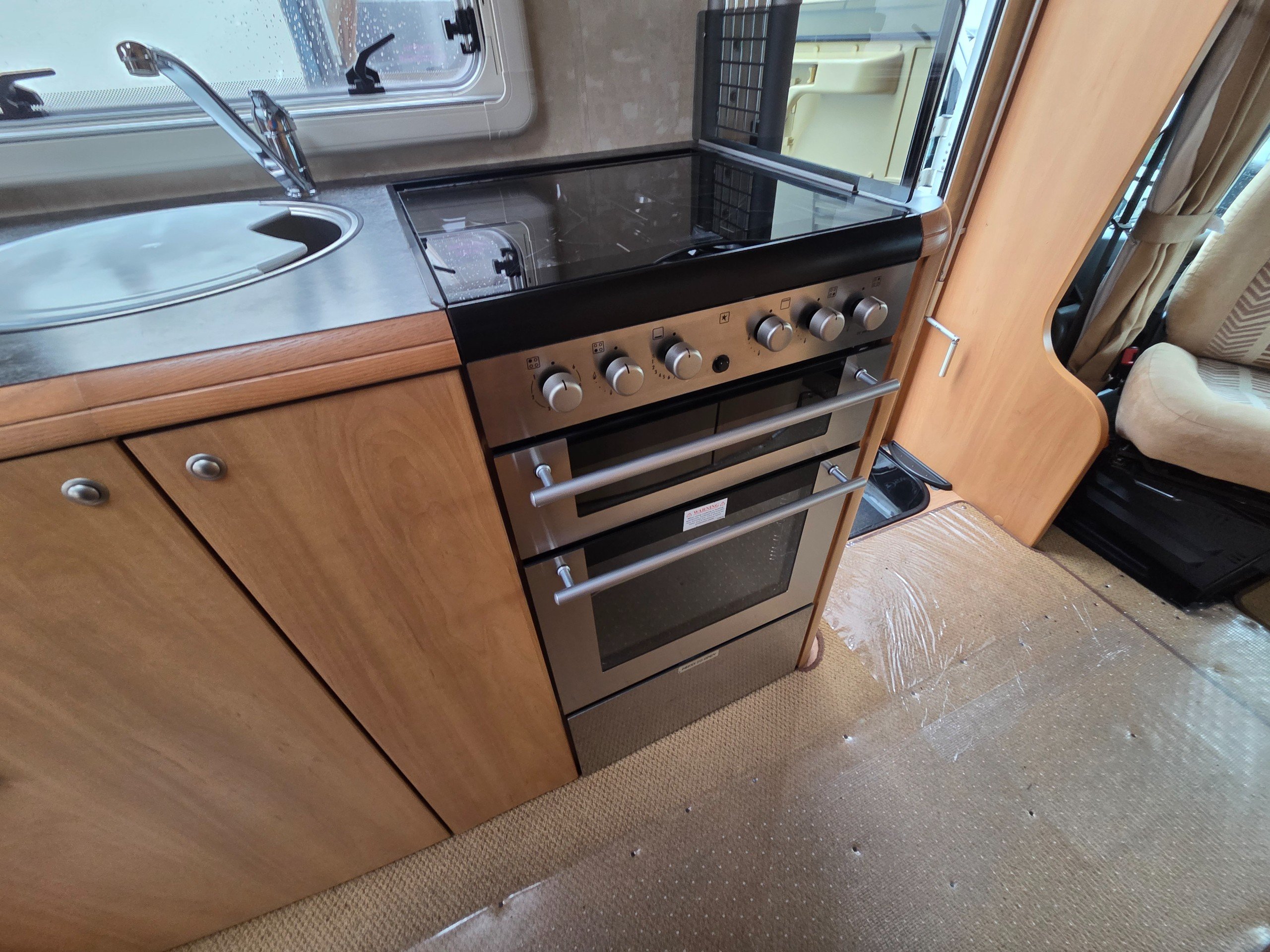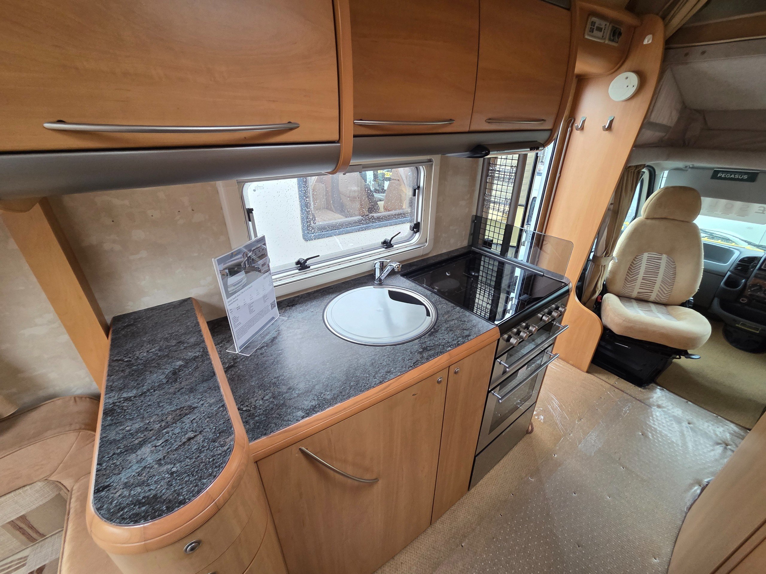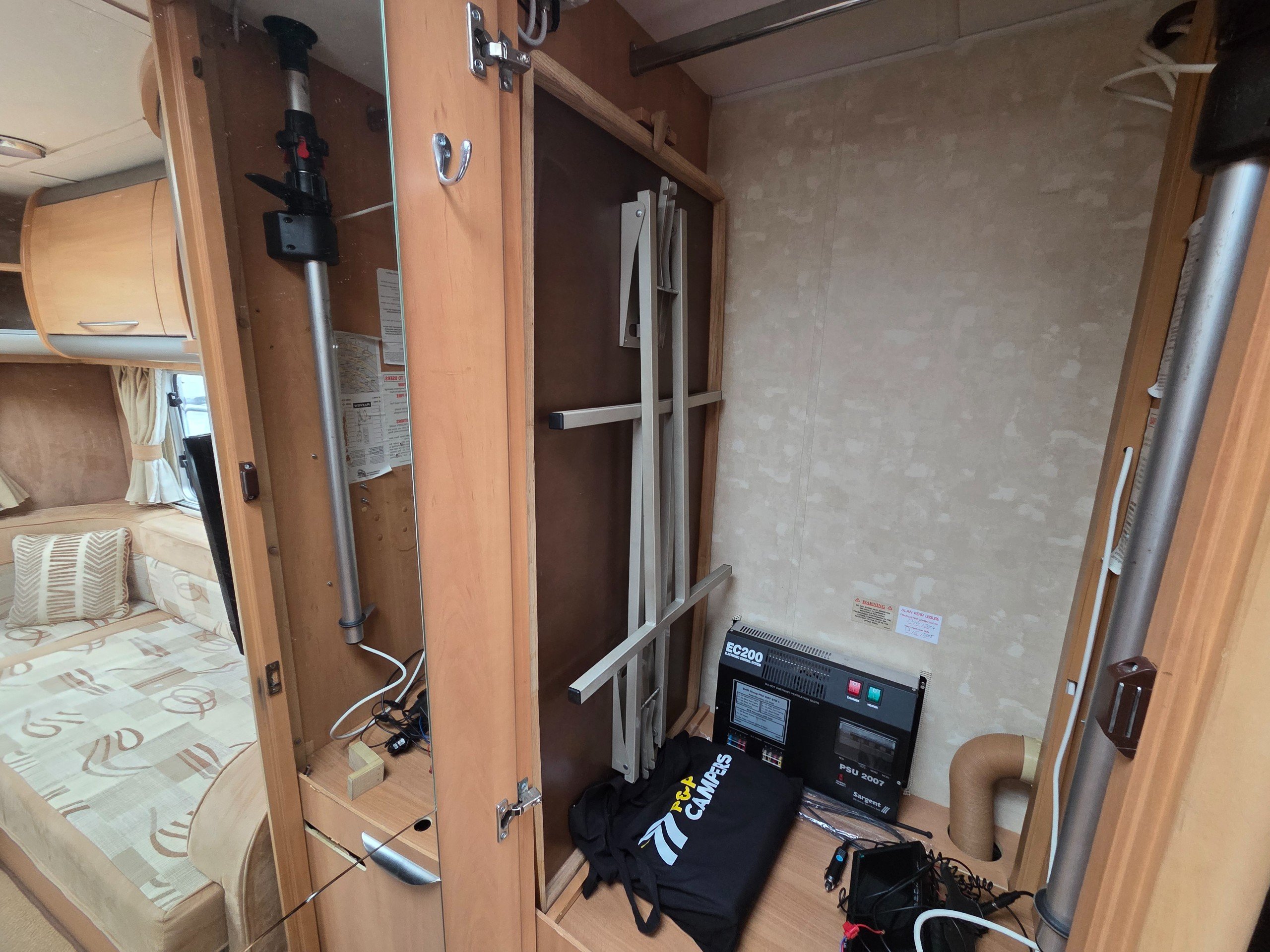 Over the cab is a double bed this is accessed via a ladder and can be pushed back when not in use, so you dont bang your head.