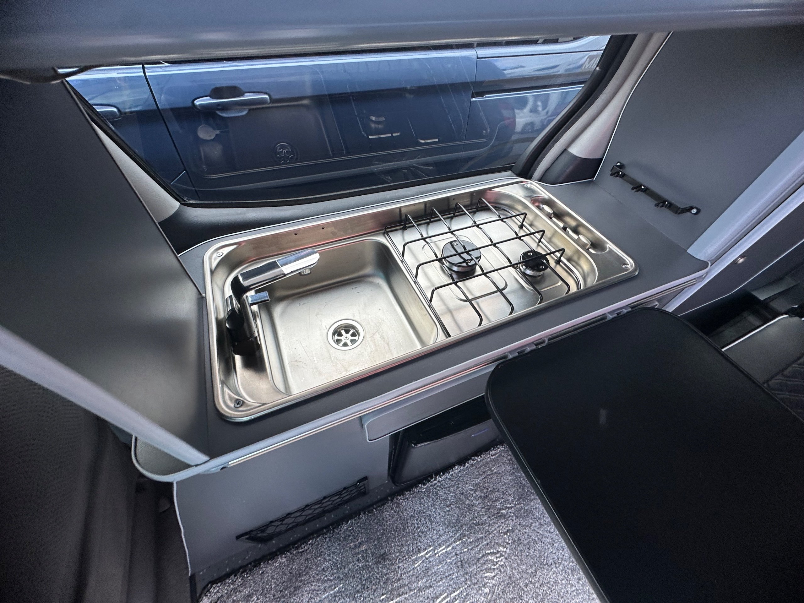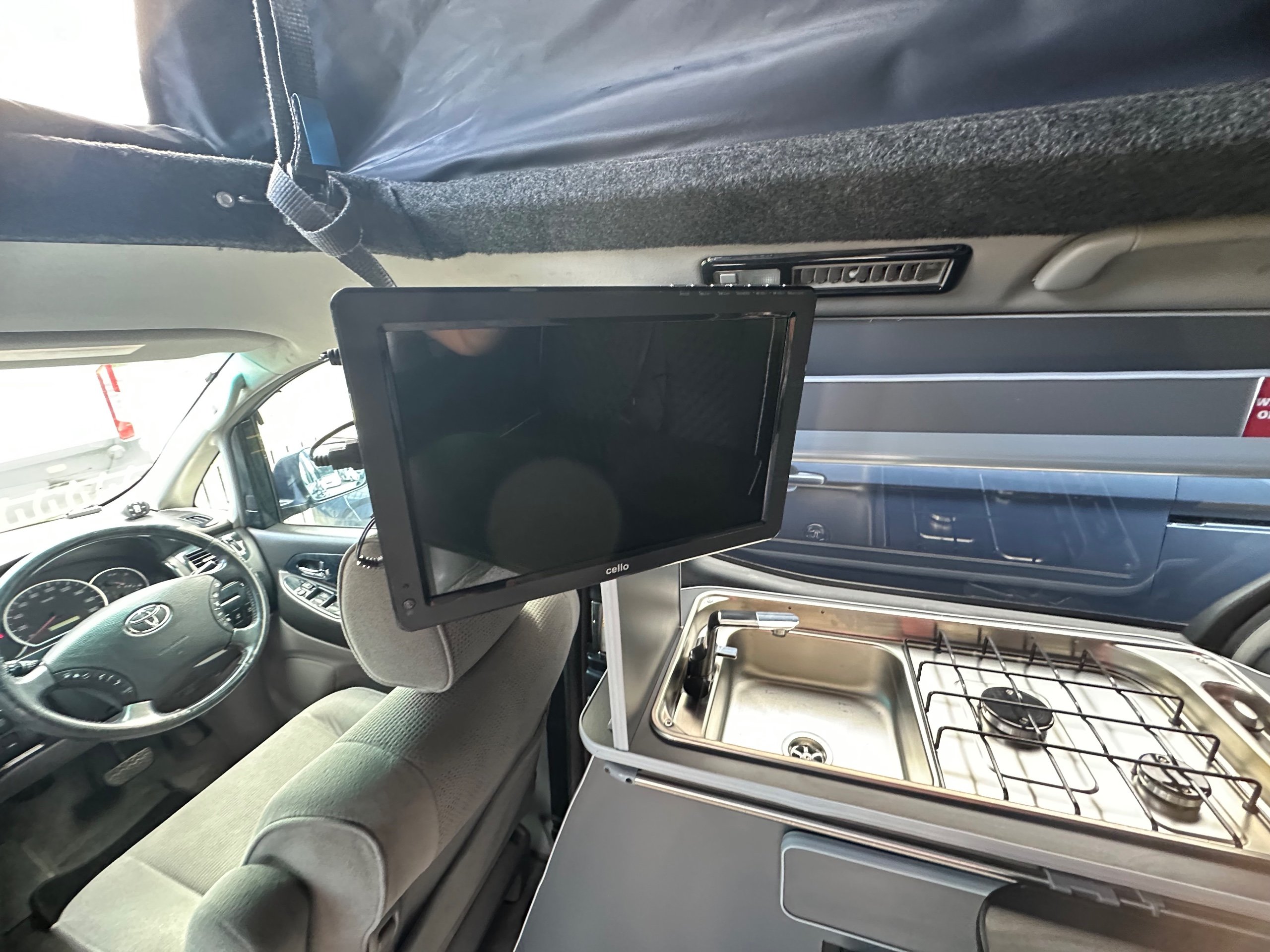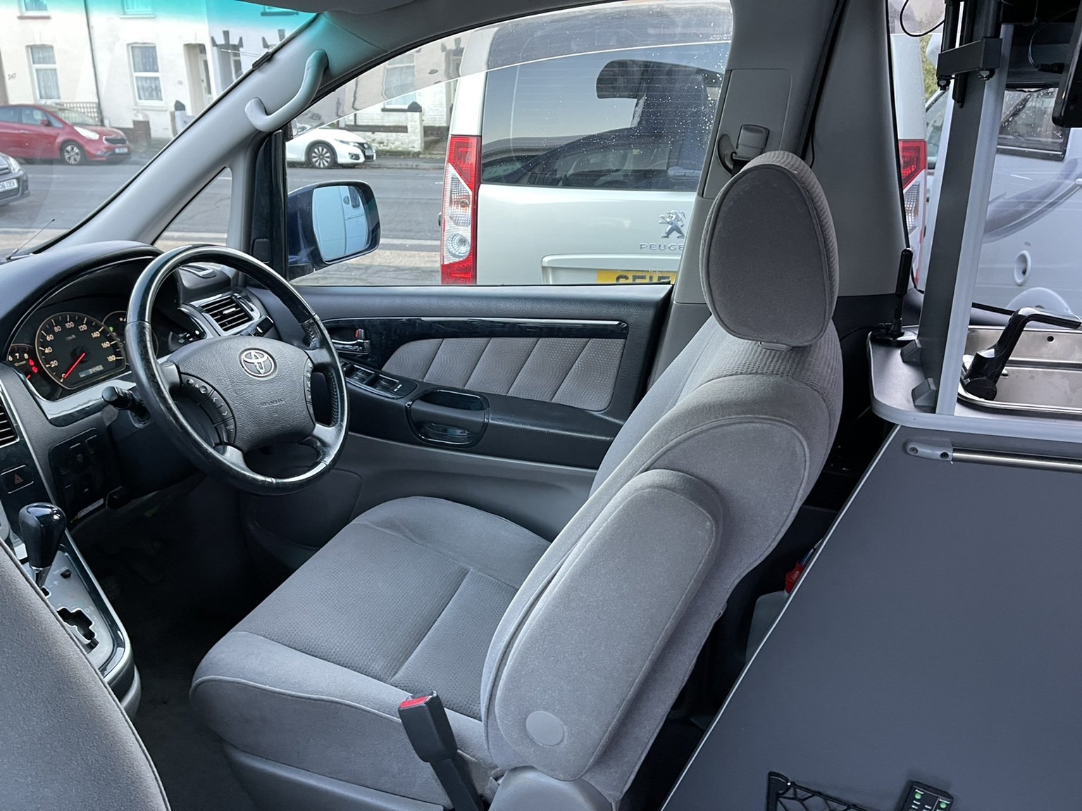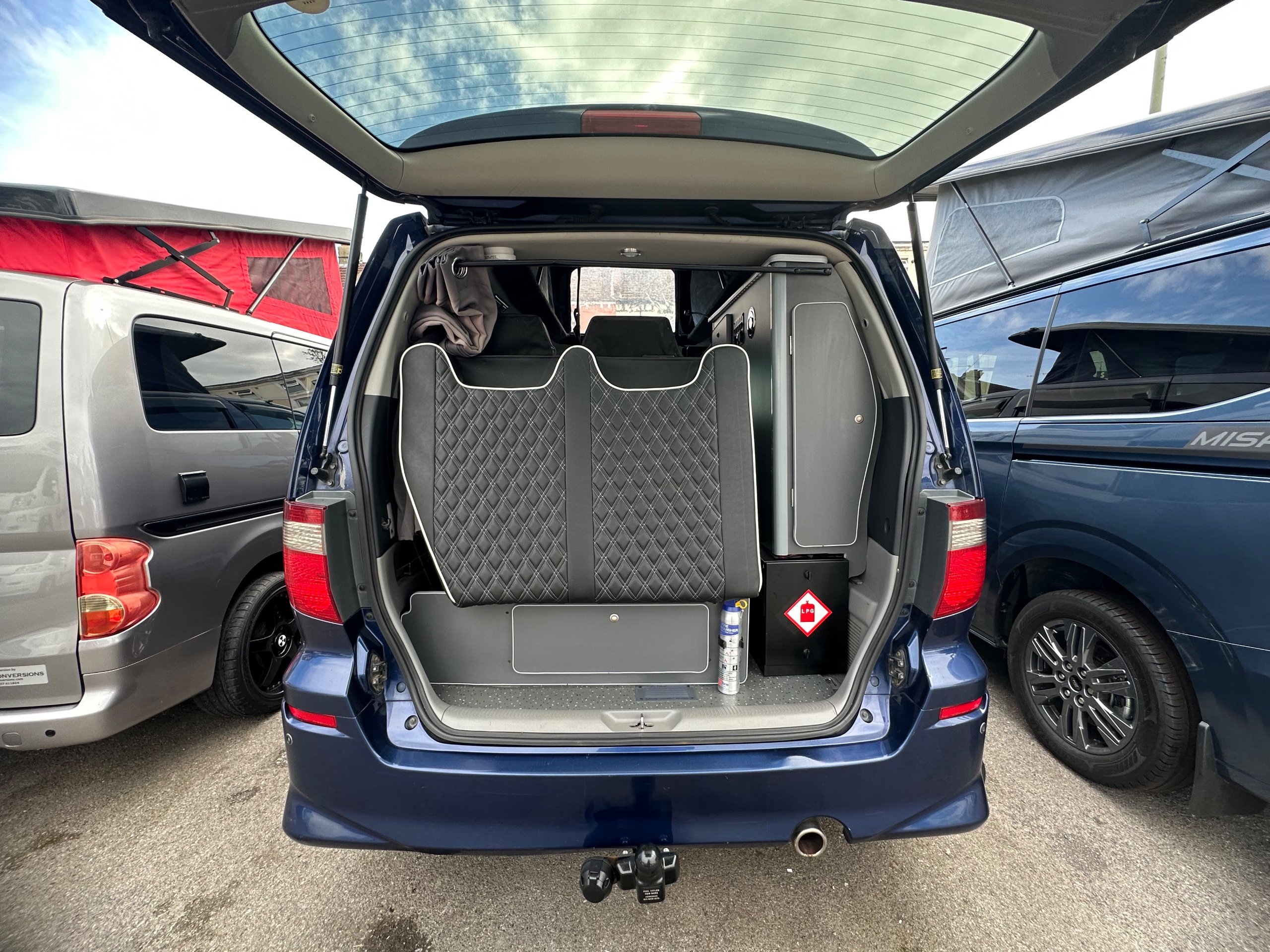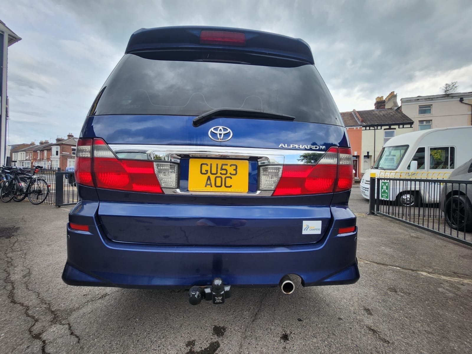 Automatic 2003 Toyota Alphard 2+2 berth side conversion camper. Based on a 2.4 petrol chassis covering just 66322 miles from new. ( the dash clocks read in km at 106736km) This requires just a standard car licence to drive and would also make a great mobile beach hut. 4WD