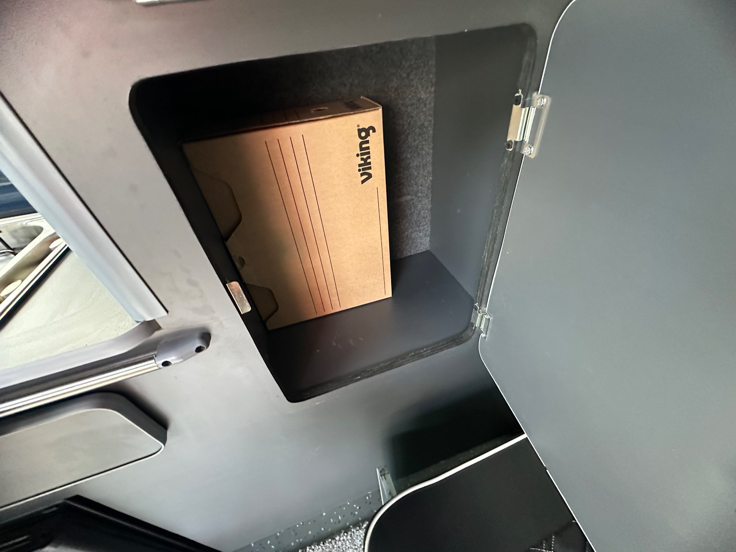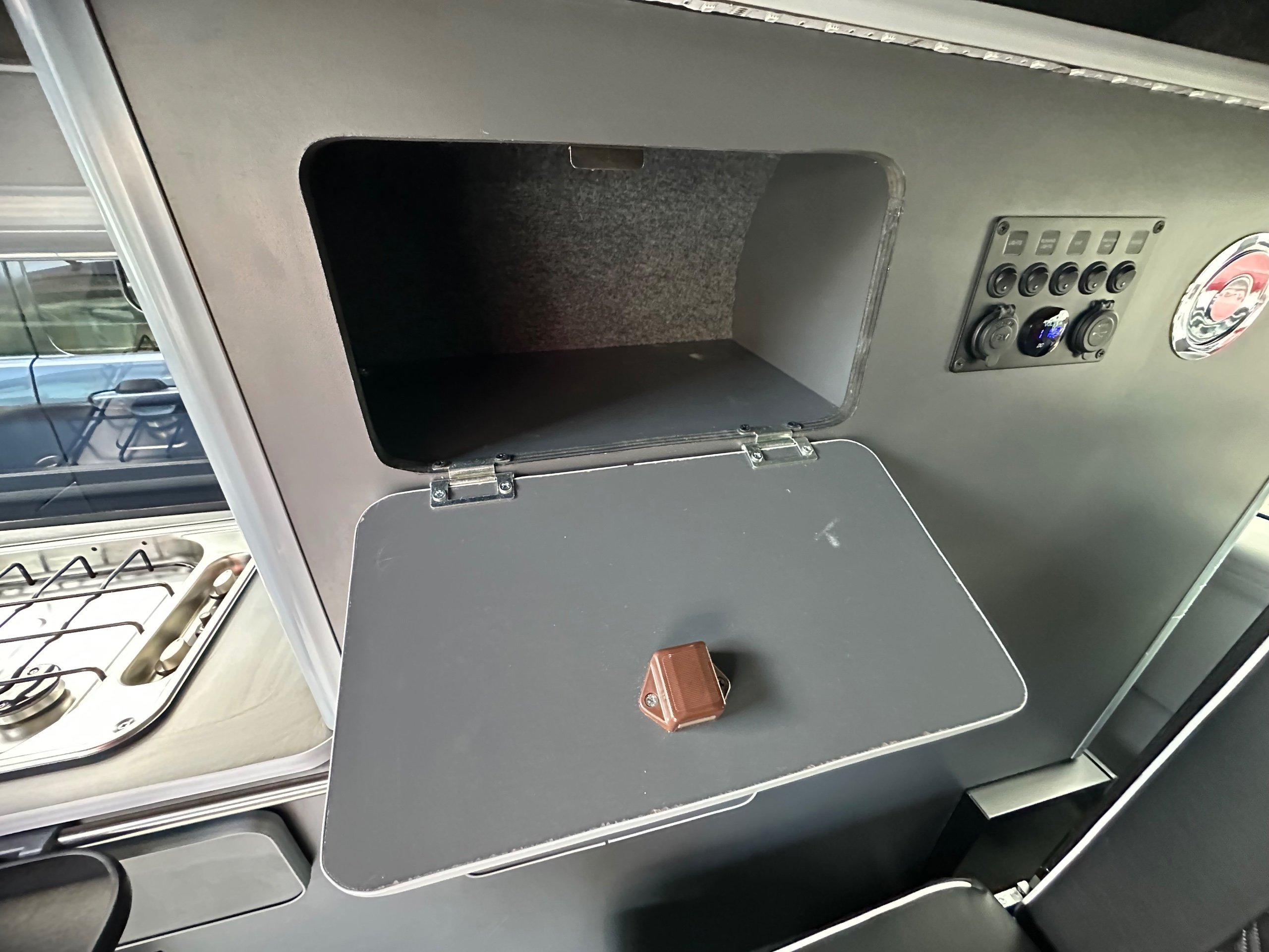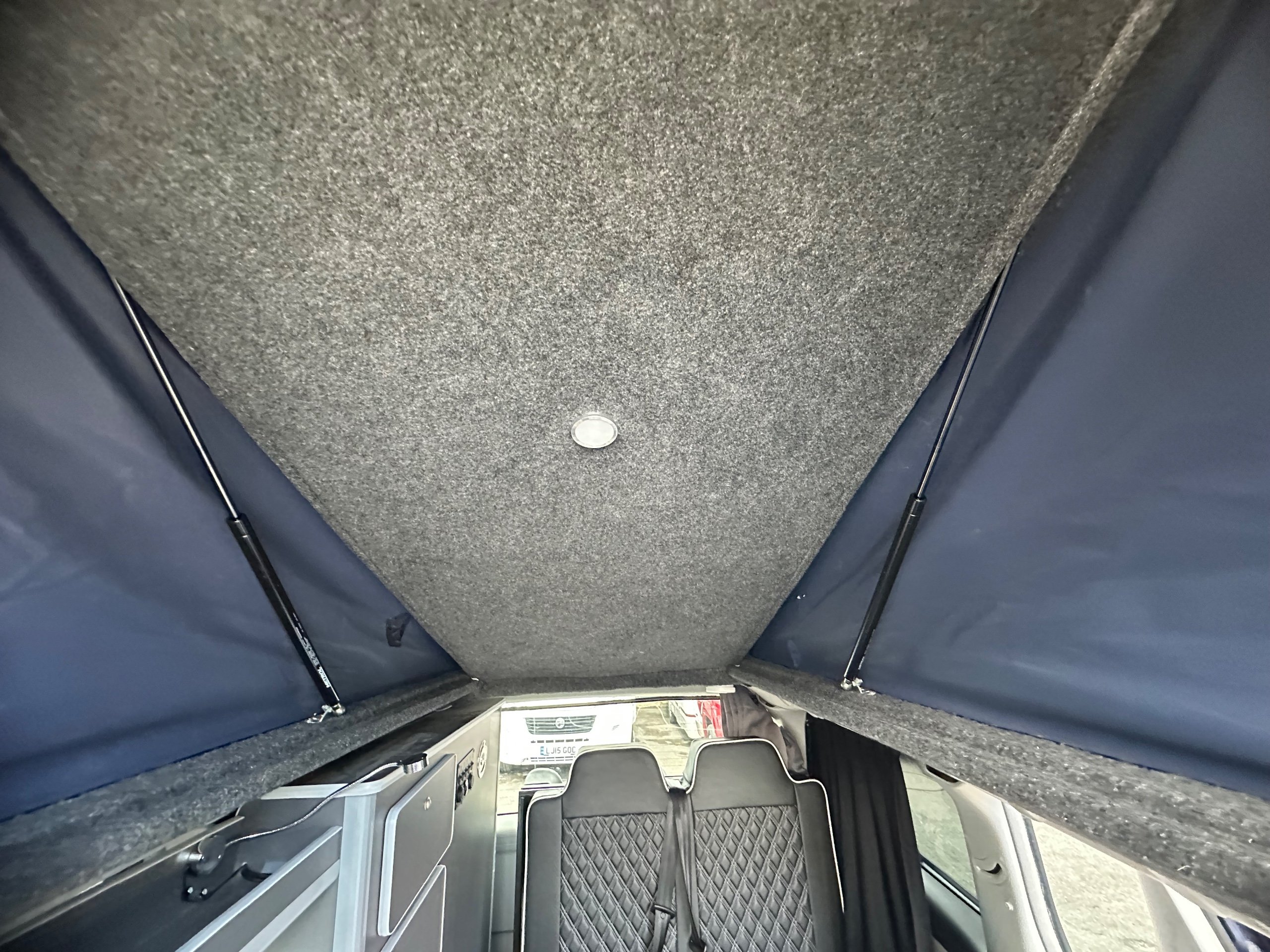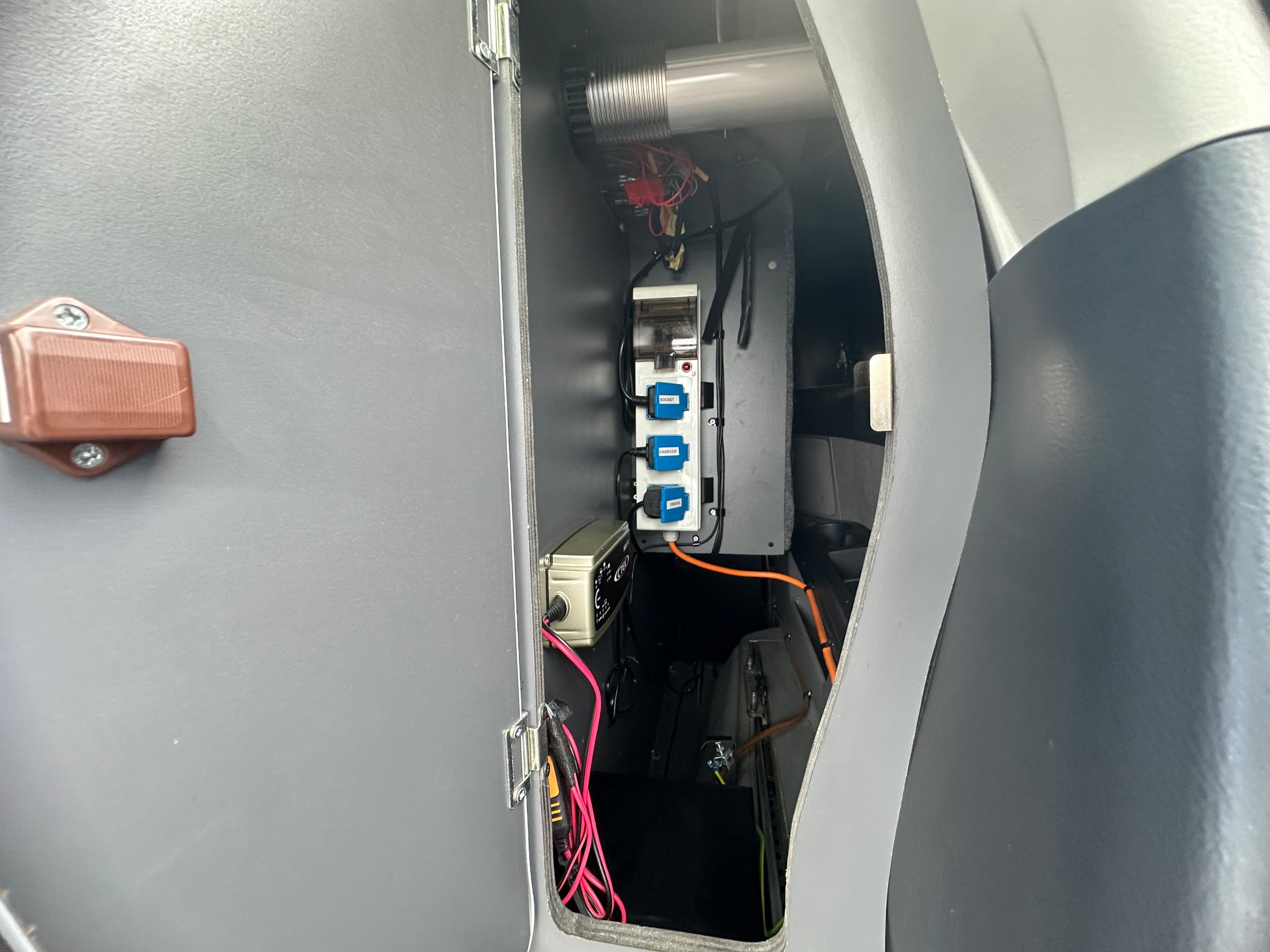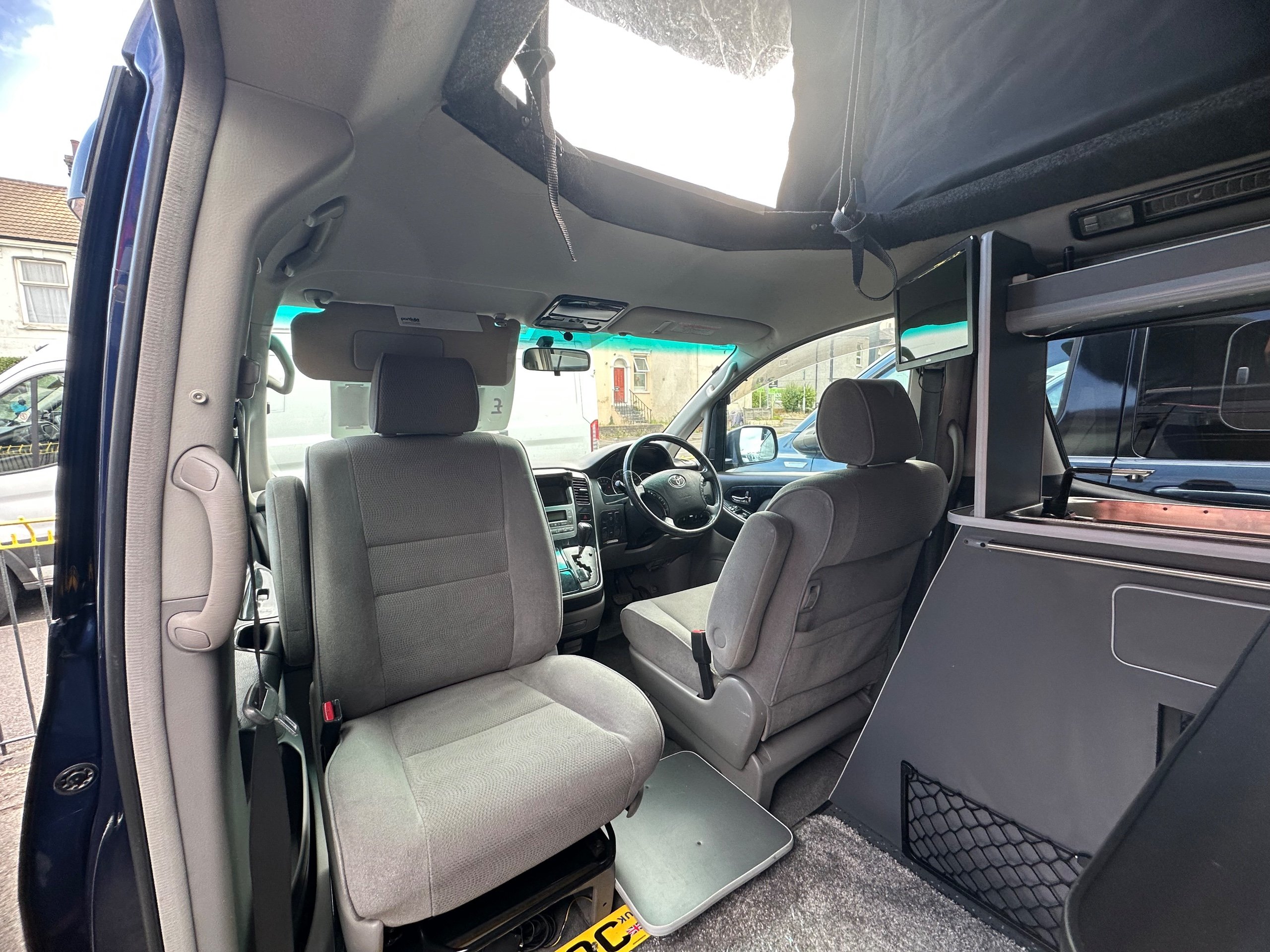 Passenger cab front swivel seat opens the space up too. The rear lounge seat rolls opens up to form a double bed and also houses 2 extra travelling seat belts both are 3 point belts. There are 230v sockets availbale for when you are on hook up.